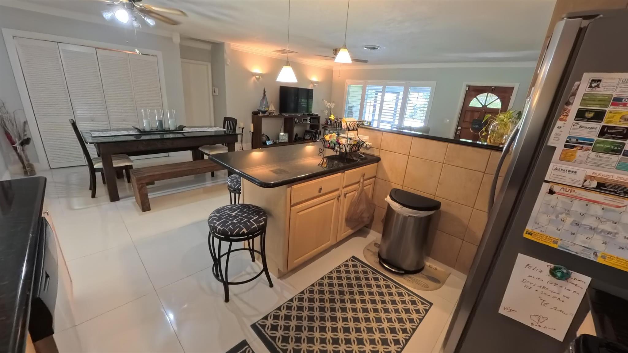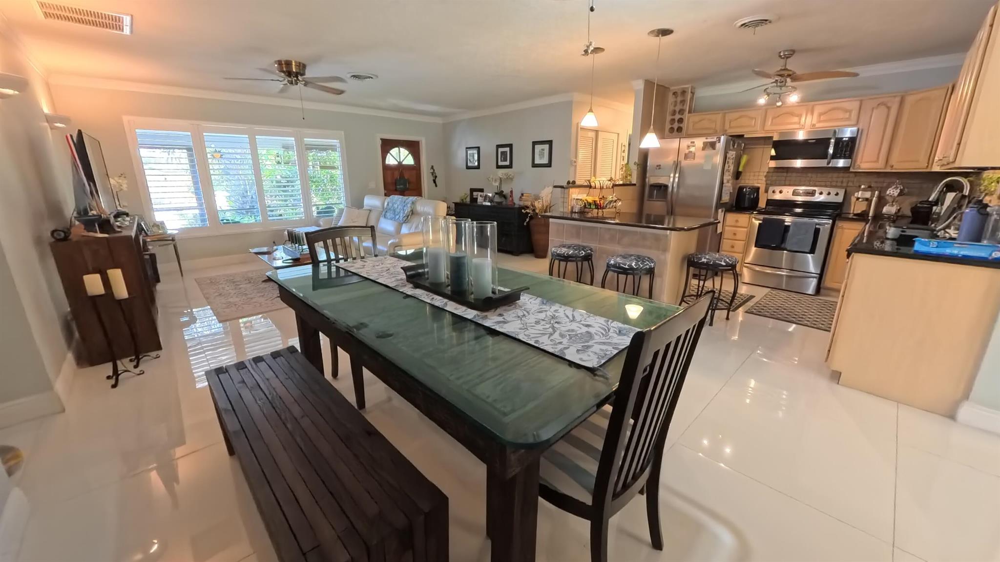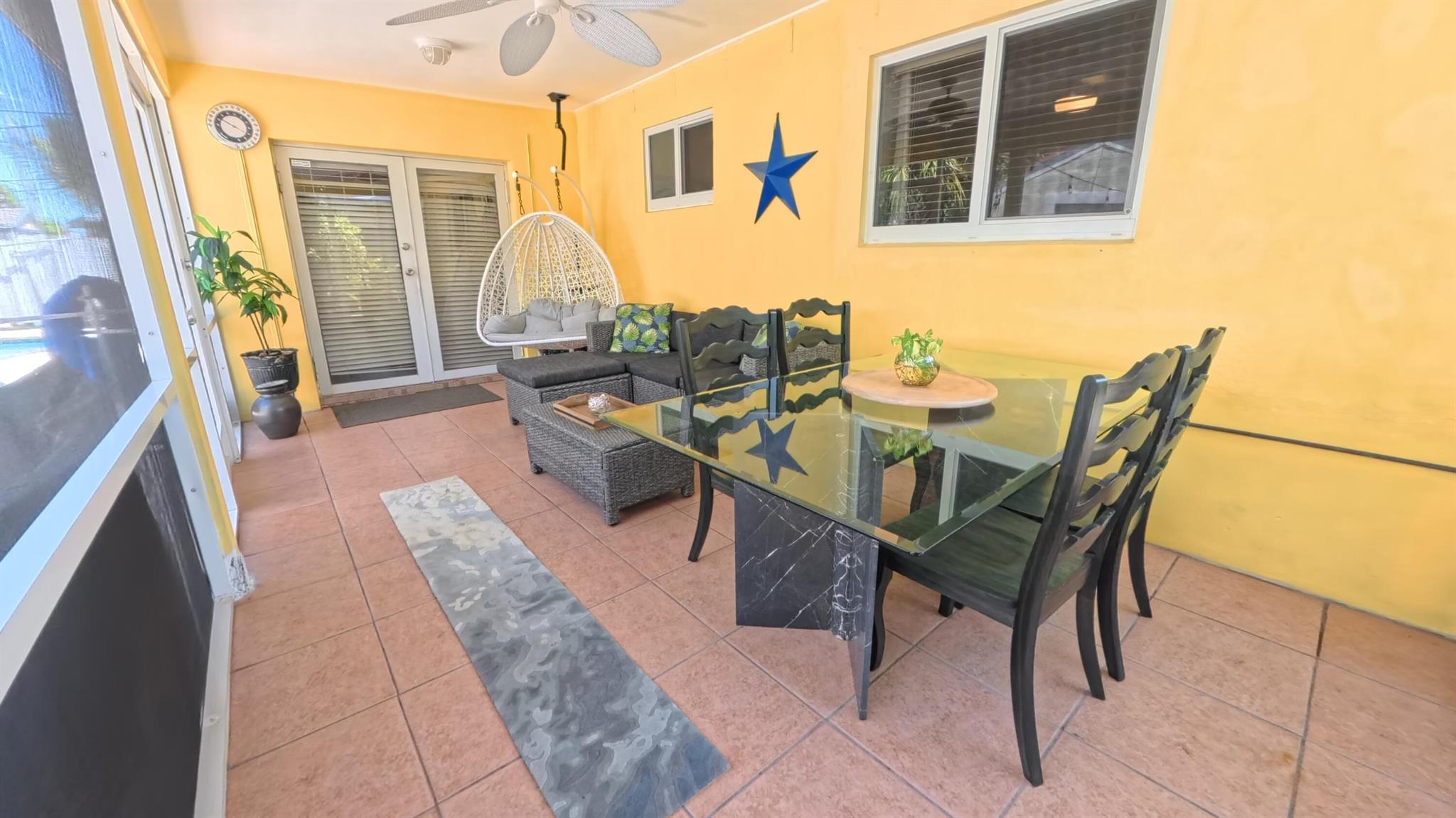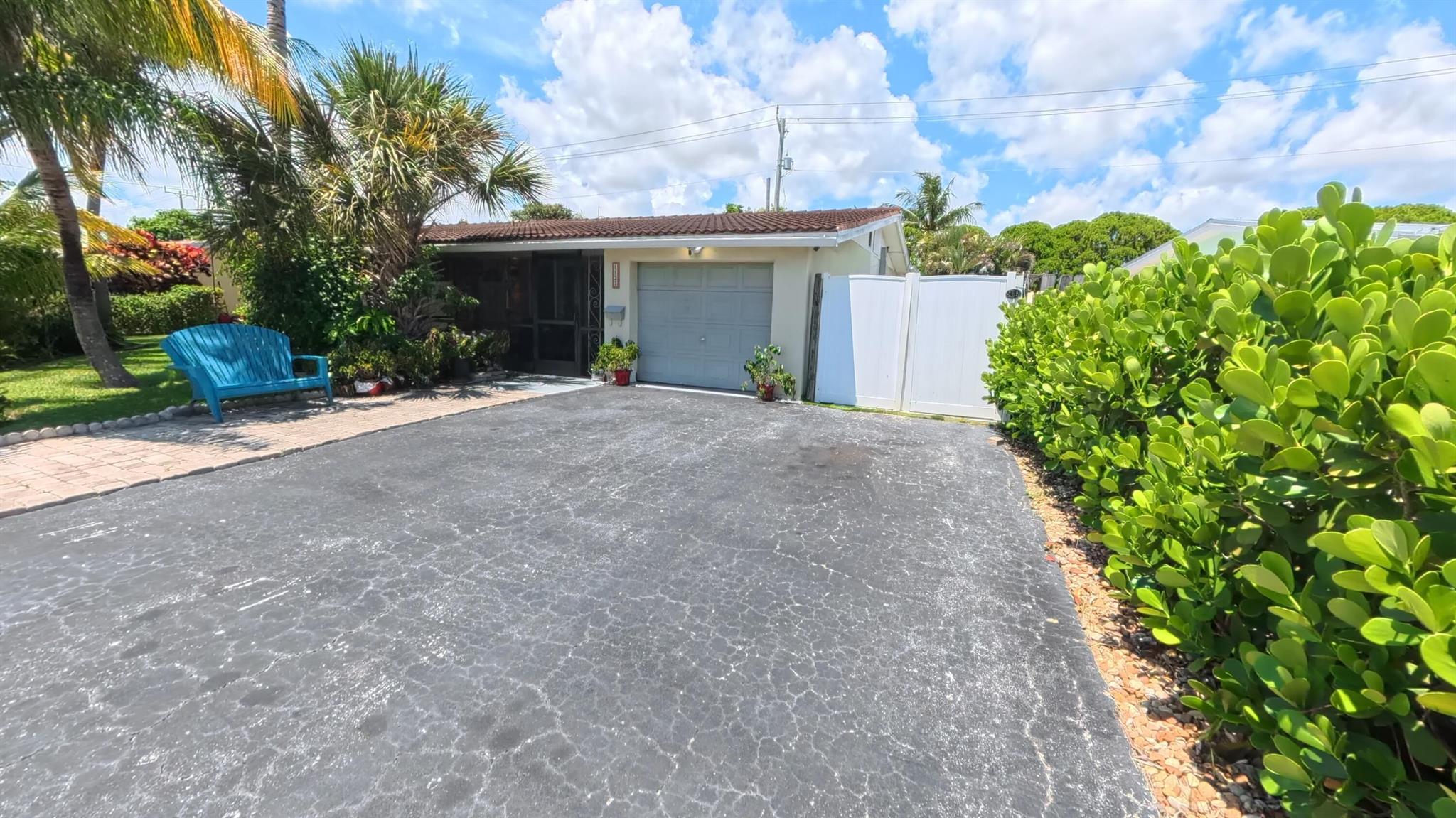 Great Single Family pool home with excellent location under 10 minutes to the beach and no HOA fees or restrictions. Tastefully redone kitchen with Cambria Quartz, SS Appliances & white Shaker cabinets, updated baths, gleaming terrazzo floors and an open flowing layout that makes entertaining a joy! Owner has removed the popcorn ceilings, and added distressed wood accents, plantation shutters and converted the garage to a large bonus room that could be an office. Large family room can be easily converted to a third bedroom but Owner made as their fitness space. New flat roof 2019, new A/C w HALO air purification 2020, tankless water heater 2020; whole house water purification, keyless entry and hurricane rated shed. Come enjoy this great Swimming pool with a tiki bar to bring friends over