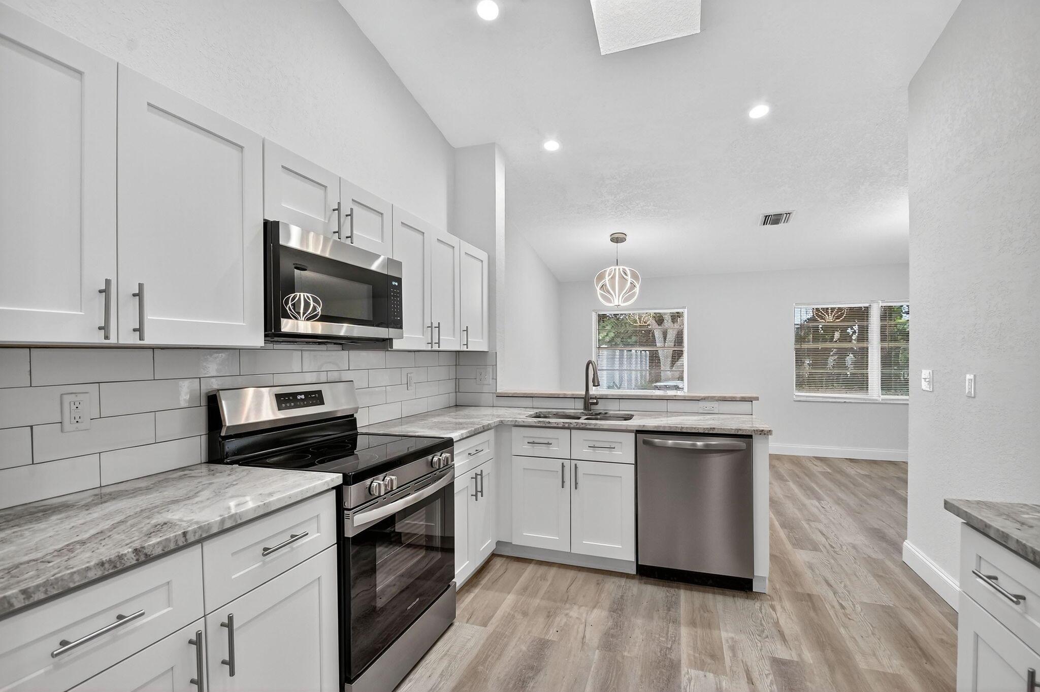 Welcome to the beautiful 55+ gated community of Summer Chase in Lake Worth. This 2 bedroom 2 bath CBS home has been fully updated and is move in ready! The den/office could easily be used as a 3rd bedroom! Updates include a brand new kitchen with solid wood cabinets, granite counter tops and new stainless steel appliances. Both bathrooms have been updated with new tile work, plumbing fixtures and vanities. New flooring has been installed throughout the entire home. This home is conveniently located close to the clubhouse and community pool. Roof and HVAC were both replaced in 2023. All new light fixtures and fans throughout. Home comes with a 1 year Choice Home Warranty!