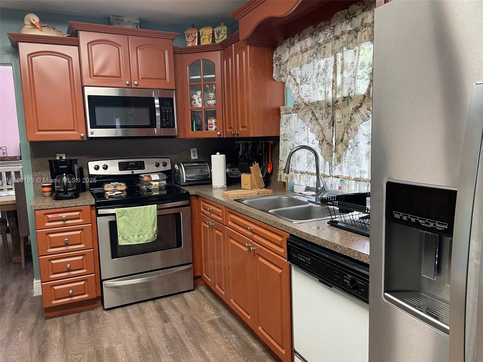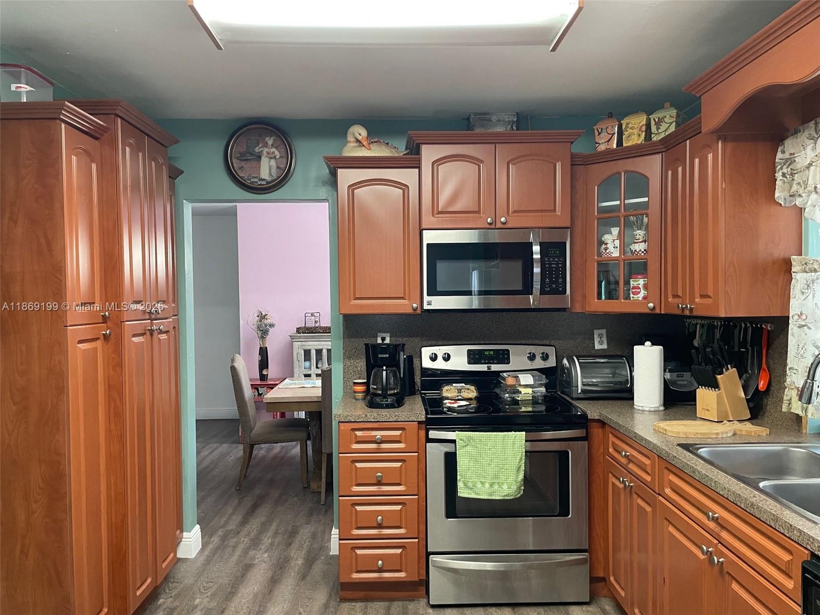 Kendale Lakes 4 bedroom Pool Home. Formal living room. Formal dining room. 2 family rooms. Pool Table is included. Eat in Kitchen with stainless steel appliances opens up to the pool patio area . Family room, dining room & primary bedroom has a view to the pool. Separate 4th bedroom. 3 year old roof. Partial hurricane impact windows & partial accordion shutters. Gas Hot Water Heater. Mature avocado & mango trees. Completely fenced back yard. 4 blocks to Elementary & Park with tennis, racquetball, basketball, playground & jogging trail. Easy to see.