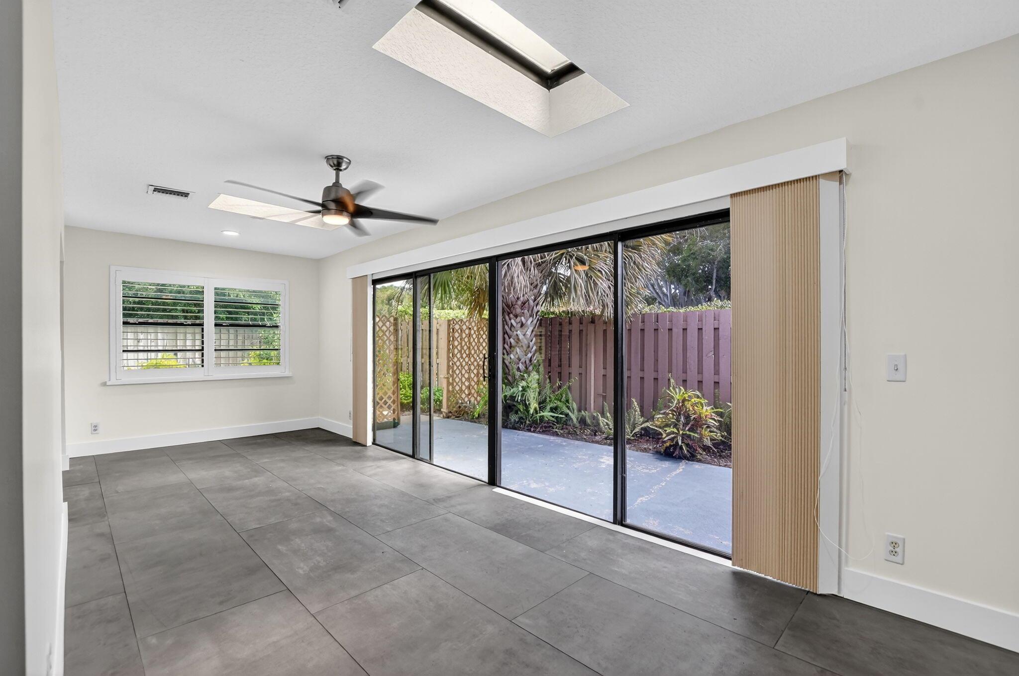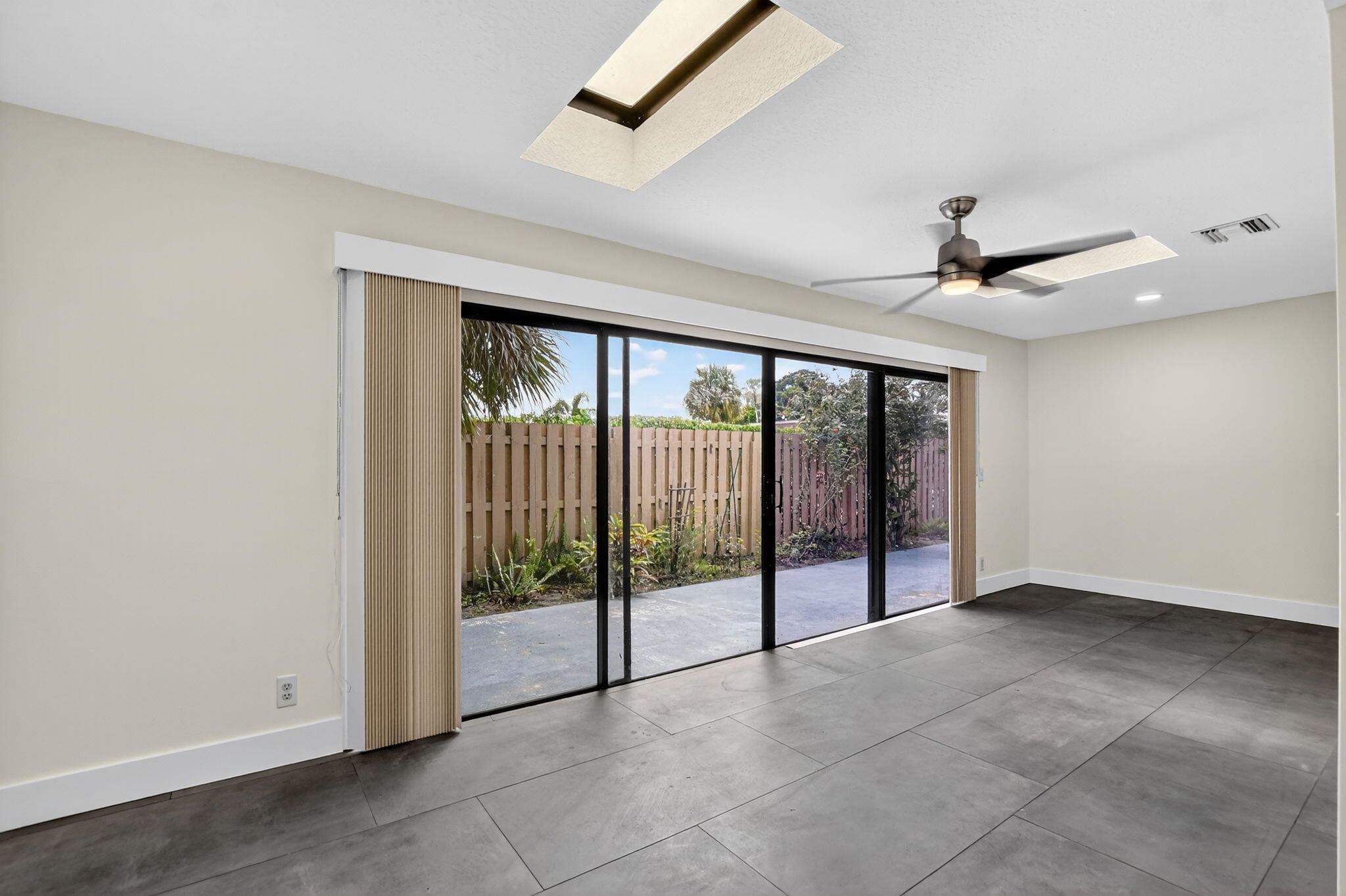 Totally remodeled single-family home in the sought-after gated community of Rainberry Bay! This light-filled residence features brand new large porcelain tile floors throughout, a stunning new kitchen with quartz counters, custom backsplash, and updated bathrooms. Enjoy peace of mind with a roof maintained by the HOA, an A/C replaced in 2021, and plantation shutters on most windows. The home offers a spacious Florida room, a two-car garage, and a large fenced yard--perfect for relaxing or entertaining. Rainberry Bay is pet friendly (2 pets, up to 30 lbs each) and offers a vibrant lifestyle with incredible amenities, all just minutes from Downtown Delray and the beach!