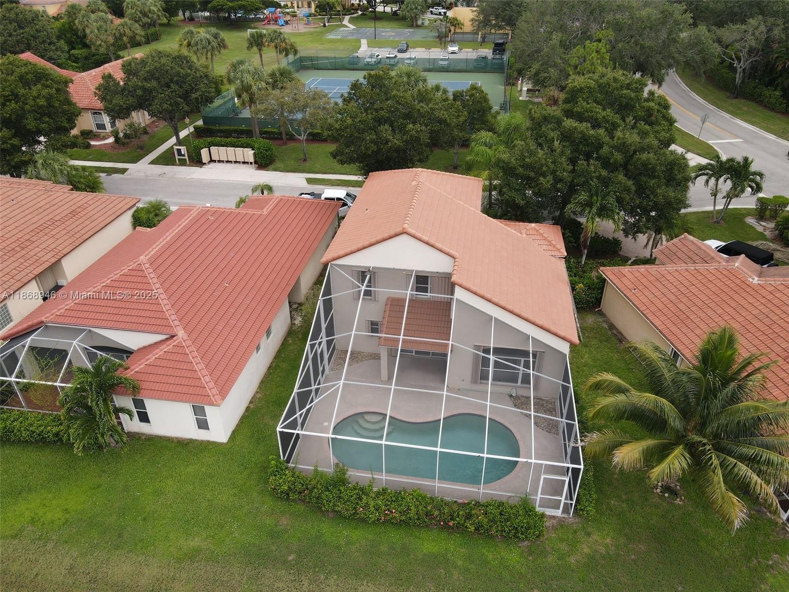Welcome to this beautifully maintained two-story home in the desirable gated community of Woodbine. This home boasts a brand-new roof and a spacious layout with the primary bedroom and bathroom conveniently located on the first floor. Accordion storm shutters add extra protection and peace of mind. Step outside to your own private oasis—complete with a sparkling pool, screened-in patio, and a lush backyard—perfect for entertaining or relaxing. Residents of Woodbine enjoy resort-style amenities including three pools, a clubhouse, fitness center, tennis and racquetball courts, volleyball, soccer field, and more. Whether you’re looking for comfort, convenience, or community, this home truly delivers it all. Schedule your private showing today and make this Woodbine gem yours!