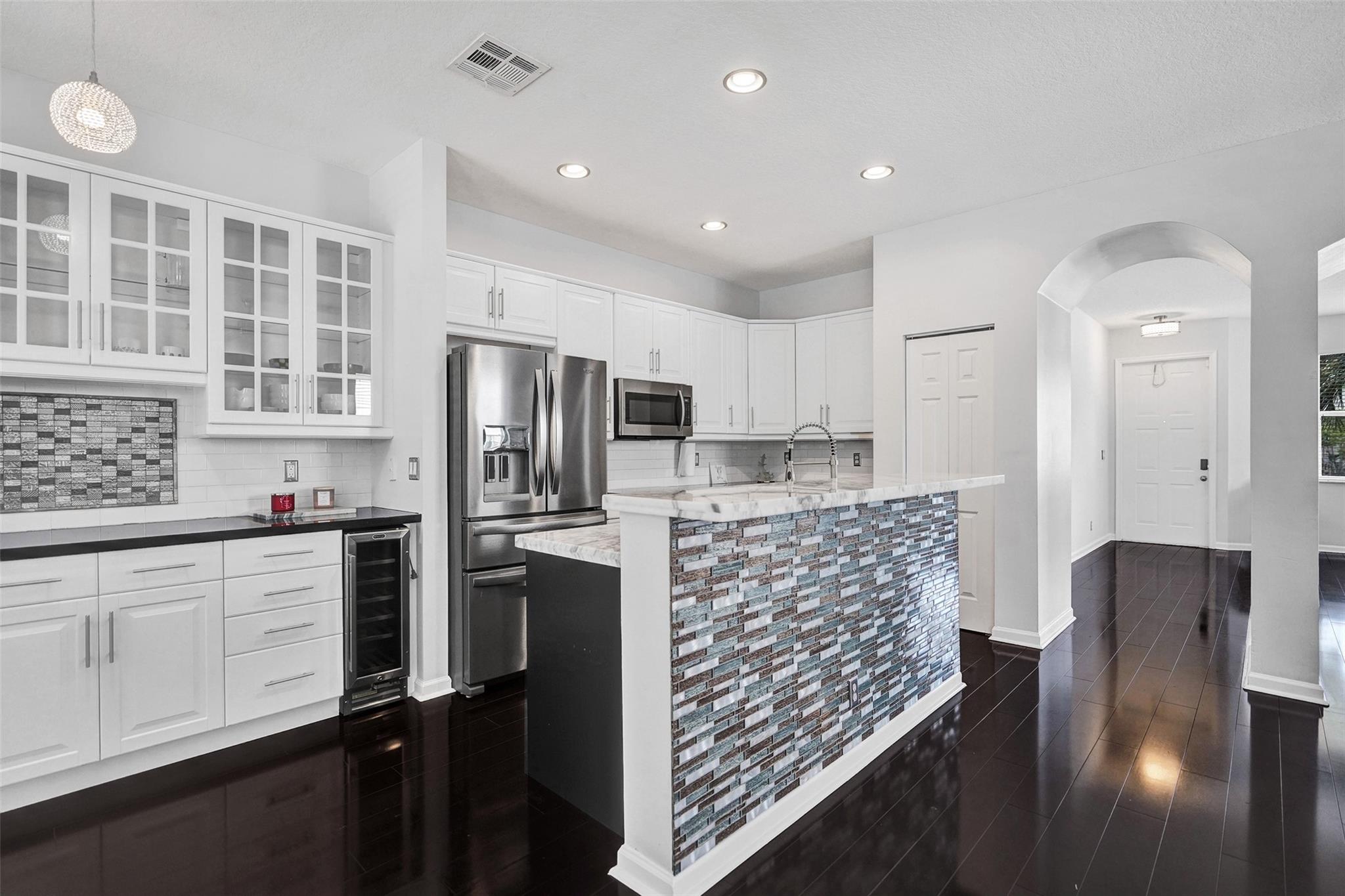 Welcome to this fully updated 4 bedroom 2 bathroom home located in quiet, gated community. Nestled on a serene pond with no rear neighbors. Inside you'll find an open and inviting floor plan with laminate flooring throughout, perfect for easy maintenance and a modern feel. The open, white kitchen is a showstopper, featuring granite countertops, stainless steel appliances and plenty of cabinet space - ideal for both everyday living and entertaining. The primary suite boasts a completely updated en-suite with soaking tub, walk in shower and dual sinks. Inside laundry room. Step outside to an expansive screened patio for enjoying Florida living or entertaining guests. Located in well maintained gated community! Pool and playground. Hurry on this and schedule your private tour today!
