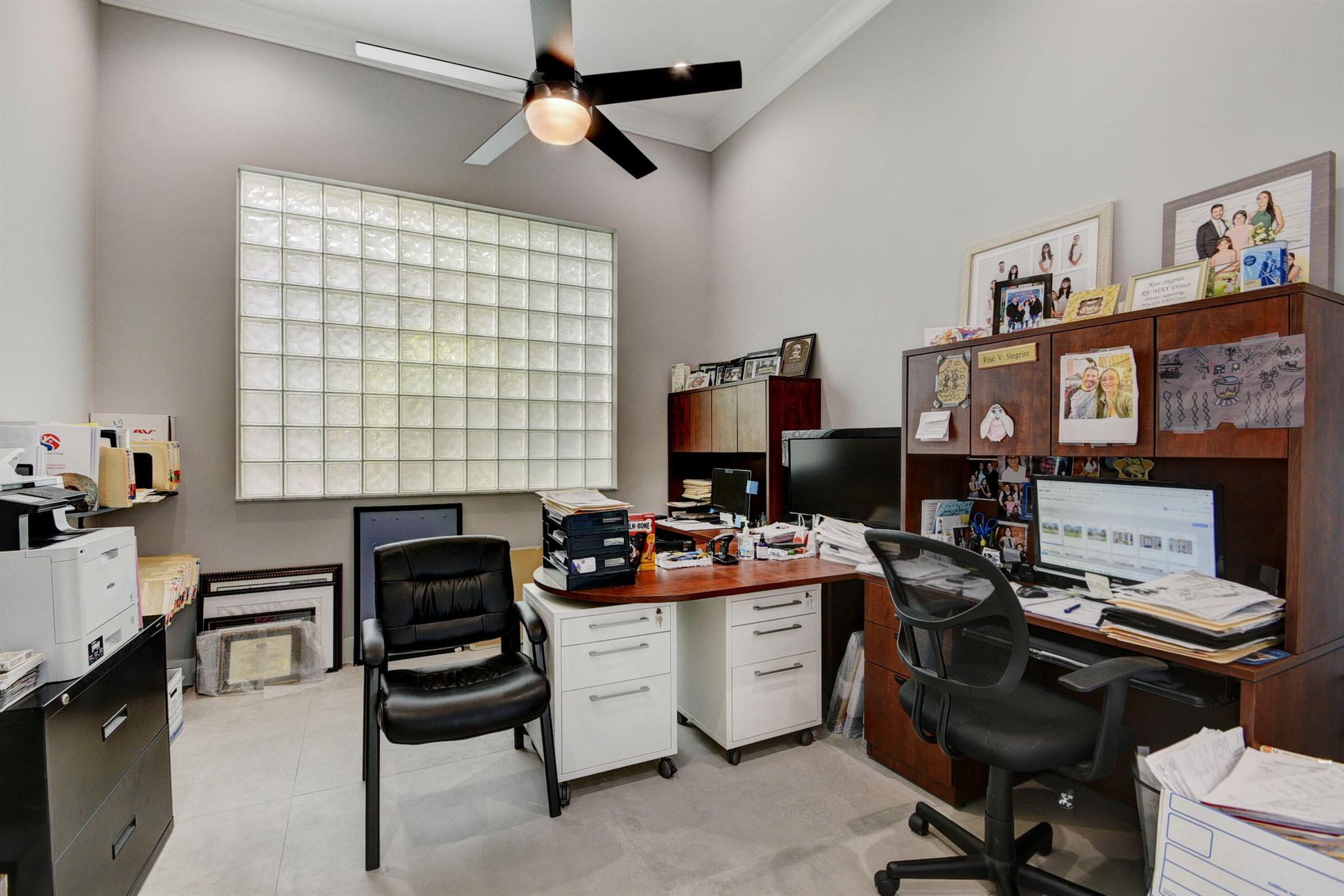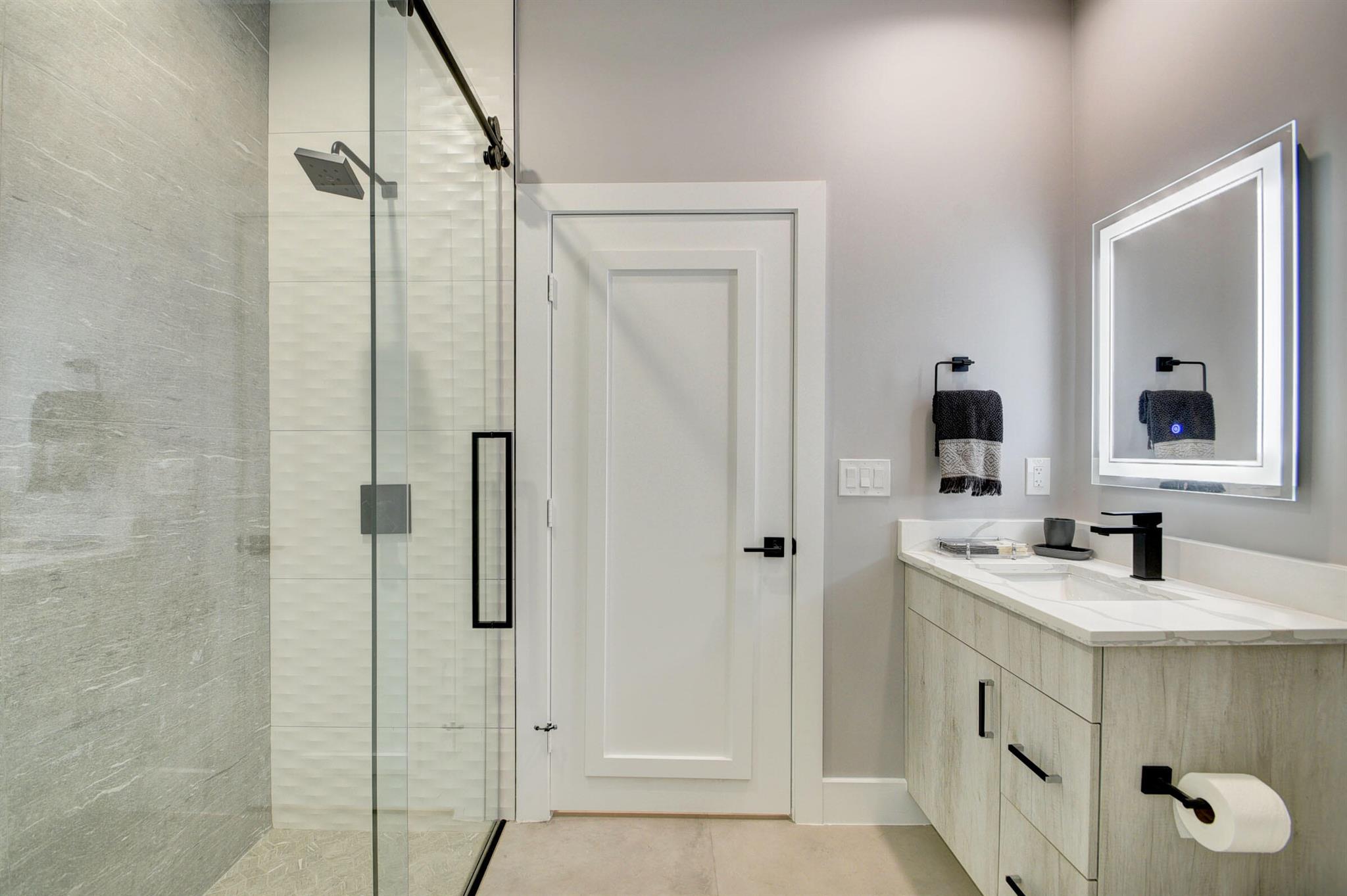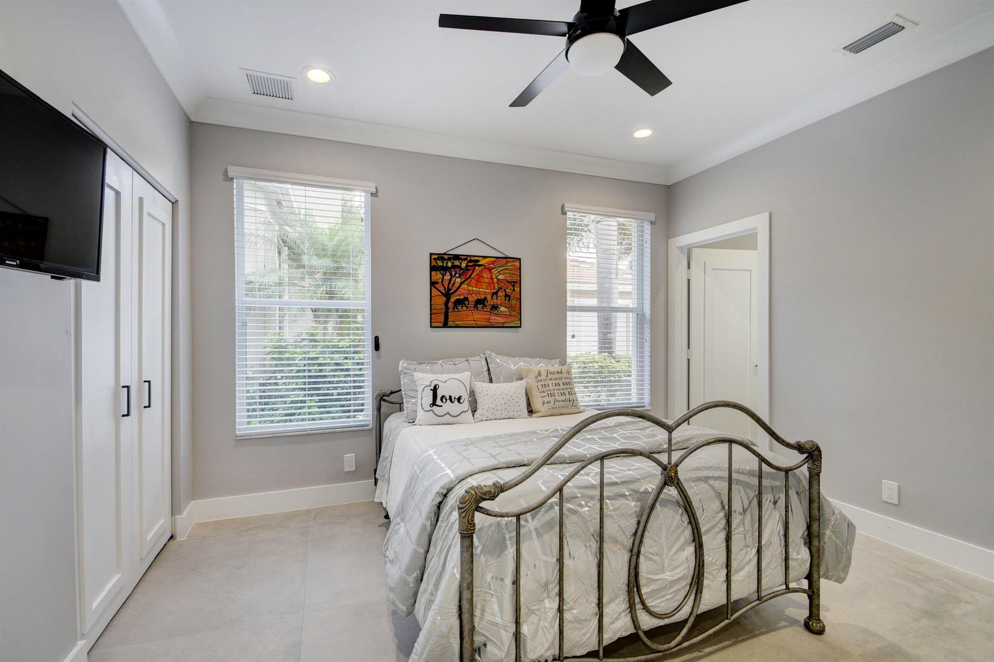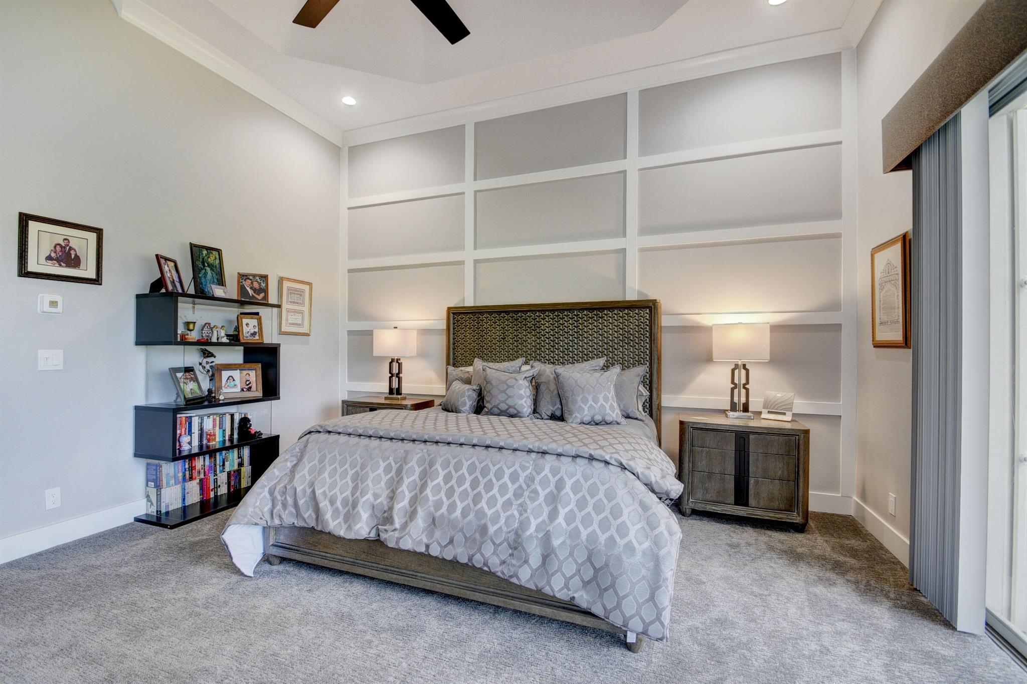 Renovated with every detail in mind, this 4-bedroom, 4-bathroom waterfront home offers a contemporary yet warm design. Oversized 3.25' x 3.25' tile floors, new baseboards, crown moldings, door frames and moldings. Open kitchen, 42-inch cabinetry, quartz countertops, tiled backsplash, raised oven, wine cooler, large island with bar seating Soft-close cabinets and drawers throughout. Flexible floor plan with unique converted DR to office and a media-style living room. The primary suite showcases a custom wood accent wall with fountain & lake views. The bath boasts dual oversized vanities with heated mirrors and an expanded glass-enclosed rain shower with wall and ceiling fixtures. Each guest room has its own updated en-suite bath with raised cabinetry and frameless glass doors.