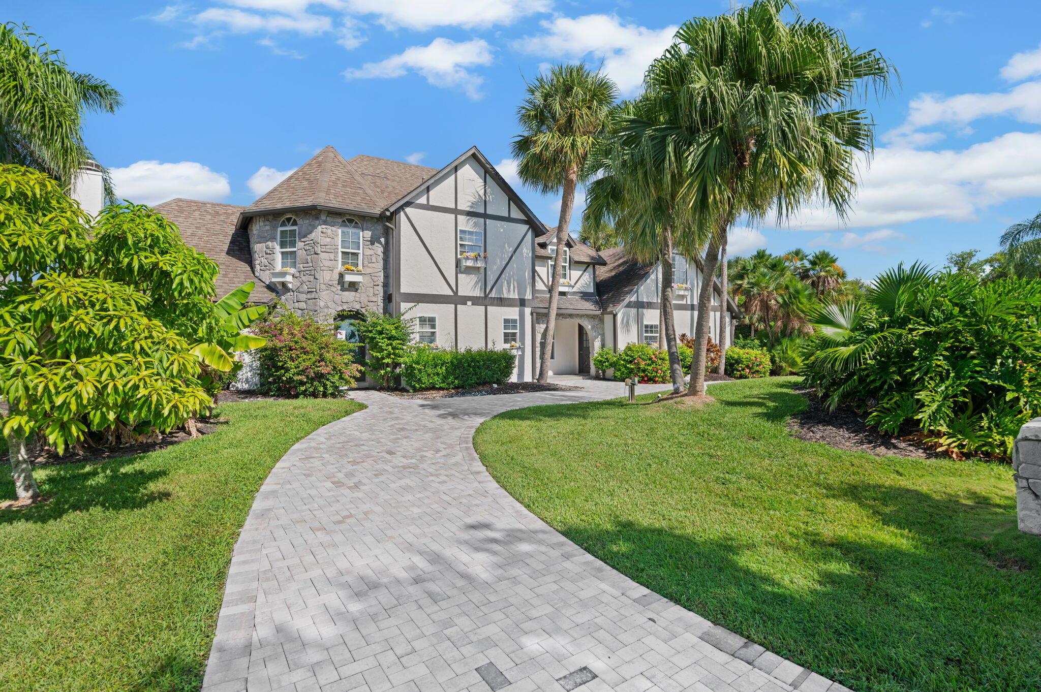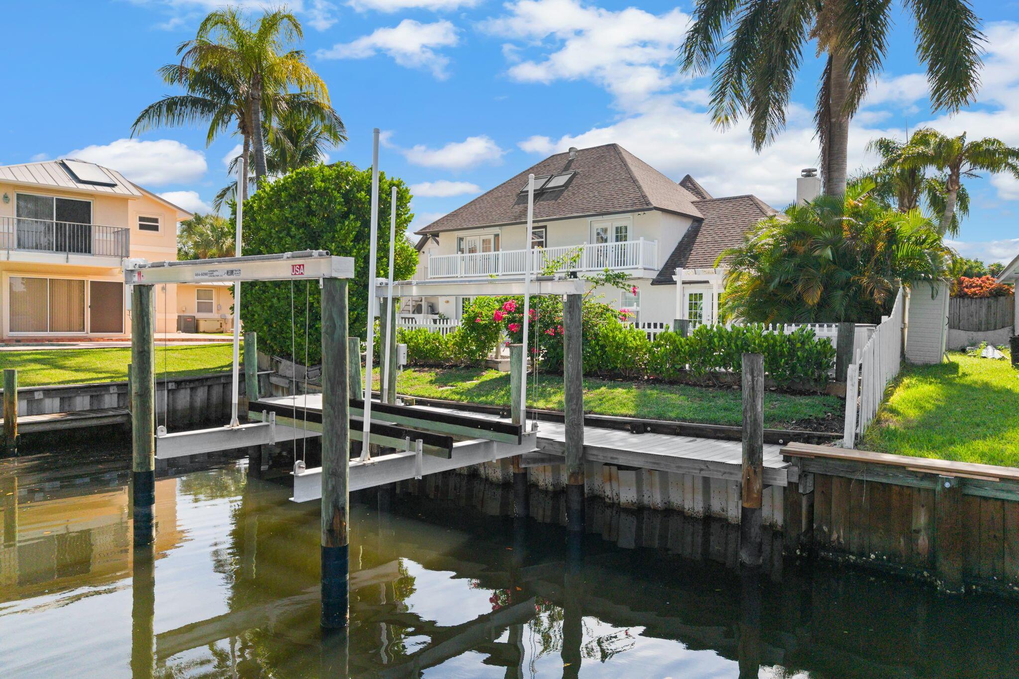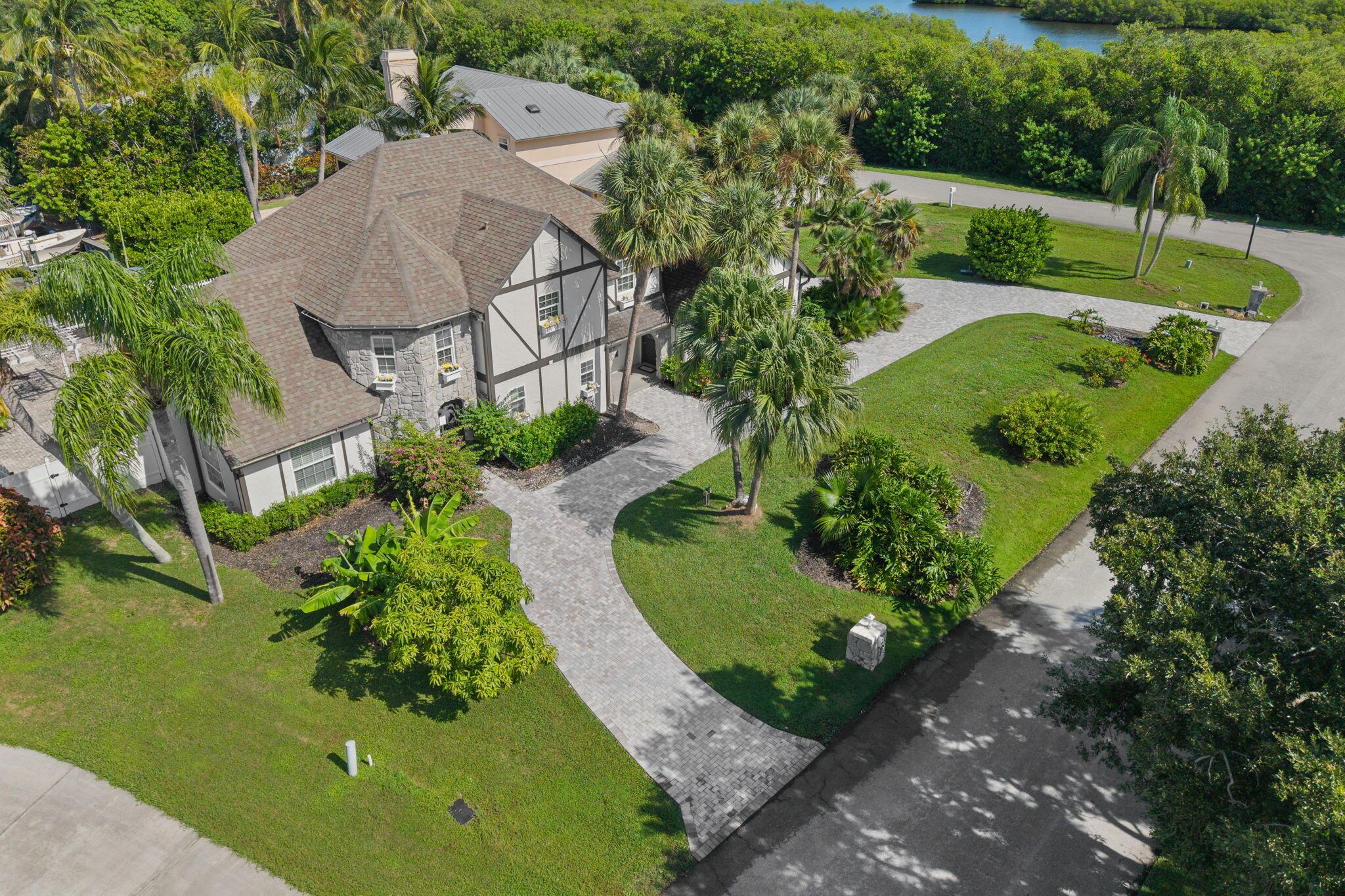 Experience refined coastal living at this Tudor style gem in prestigious Queens Cove. Lovingly designed with old world charm, this waterfront estate features two luxurious master suites, elegant spiral staircases, and a hidden walk in closet for that touch of intrigue. The spacious pool, raised hot tub, and manicured patio create a perfect indoor-outdoor flow ideal for entertaining or enjoying year round sunshine. Boaters and ocean lovers will adore the private dock and boat lift just minutes from open water. Spend mornings kayaking scenic waterways, lounging in your sun filled living areas accented with plantation shutters, or unwinding in the quiet seclusion that only island life can offer. Schedule your showing today. Welcome home.