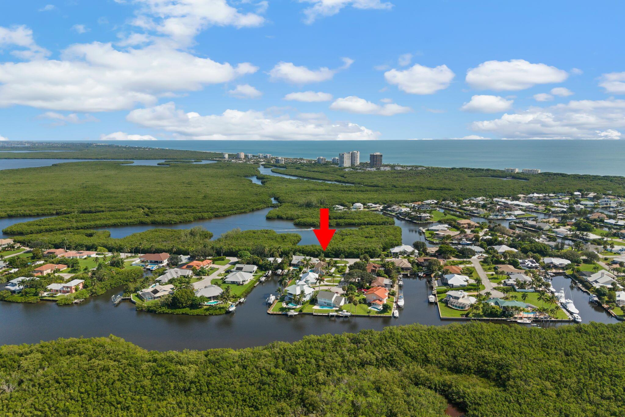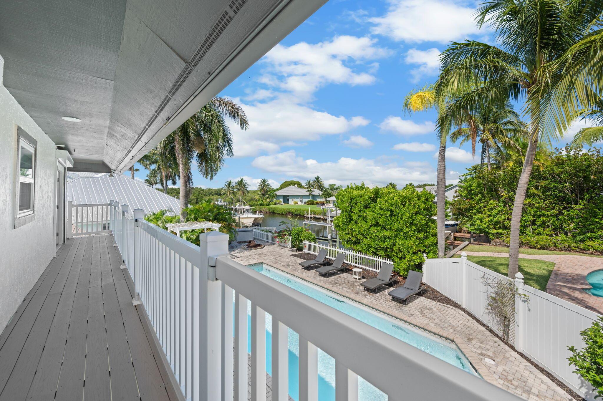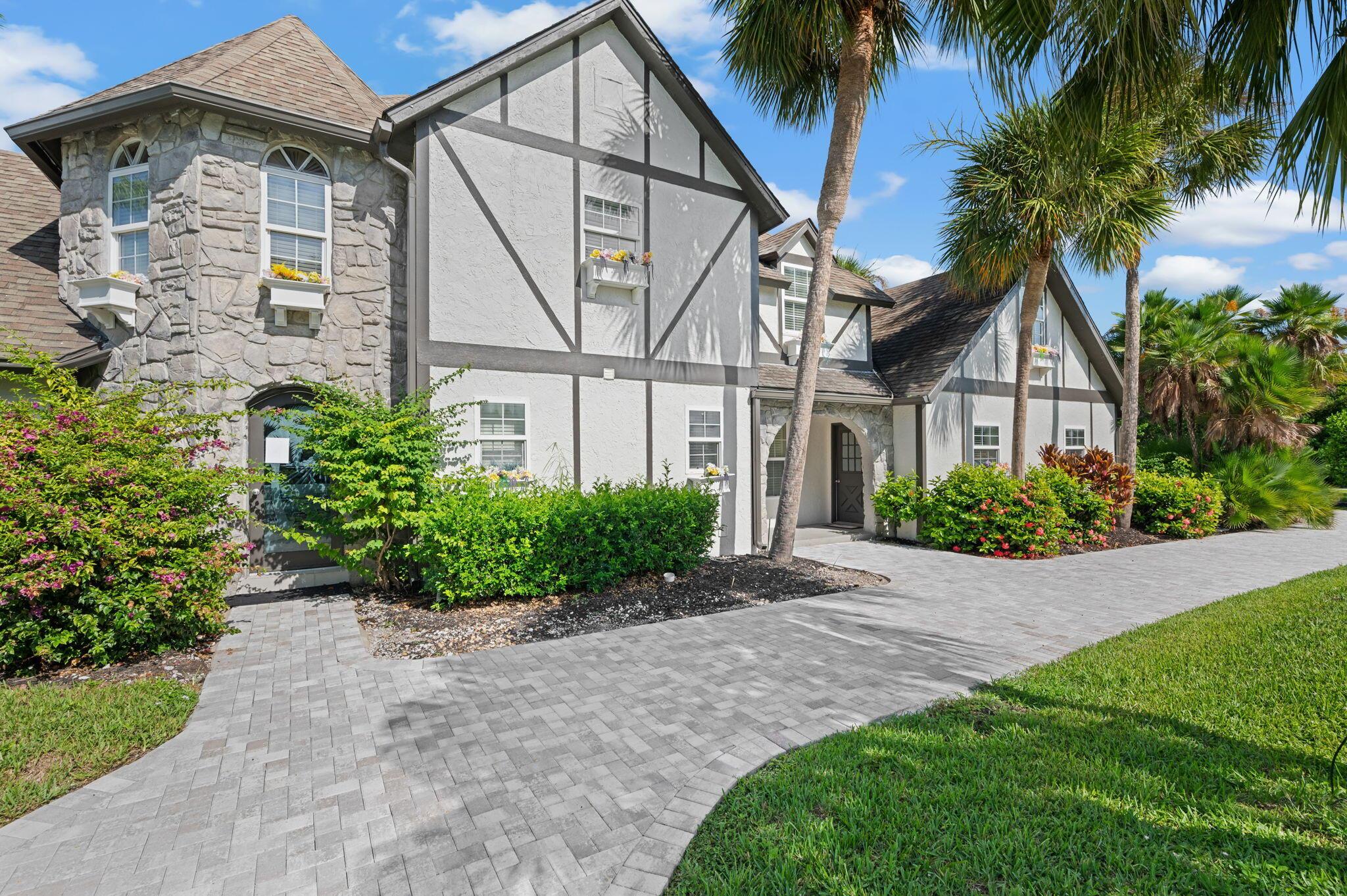 Experience refined coastal living at this Tudor style gem in prestigious Queens Cove. Lovingly designed with old world charm, this waterfront estate features two luxurious master suites, elegant spiral staircases, and a hidden walk in closet for that touch of intrigue. The spacious pool, raised hot tub, and manicured patio create a perfect indoor-outdoor flow ideal for entertaining or enjoying year round sunshine. Boaters and ocean lovers will adore the private dock and boat lift just minutes from open water. Spend mornings kayaking scenic waterways, lounging in your sun filled living areas accented with plantation shutters, or unwinding in the quiet seclusion that only island life can offer. Schedule your showing today. Welcome home.