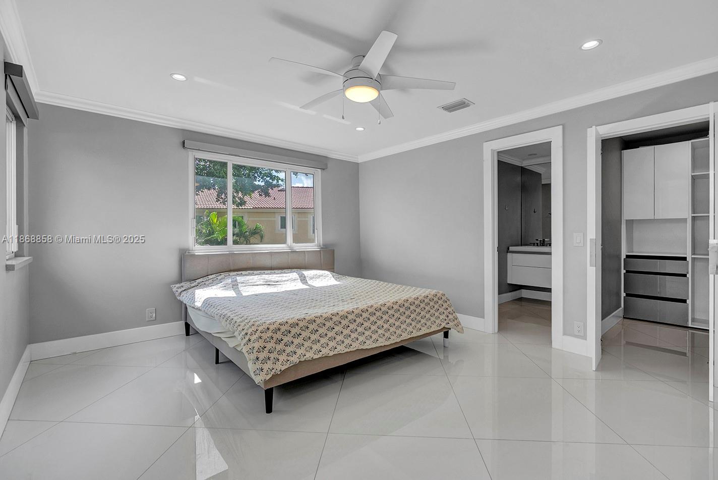 Impeccably maintained 3-bedroom, 2.5-bath home with 1-car garage, corner lot in Deer Creek. Spacious split floor plan, tile floors throughout, large master walk-in closet. Freshly painted interior. Upgrades include Smart Home system, hurricane-impact windows, crown molding, smart refrigerator, Tesla Supercharger in garage, solar panels (2021), new plumbing and pavements around the home, updated electrical, newer garage motor, A/C (2021), water heater (2020), roof (2016). Quiet corner lot, backyard with banana tree and quiet outdoor space. Pet friendly (2 pets up to 80 lbs, breed restrictions). Close to supermarkets, shops, highways, and less than 5 miles to the beach. Sold unfurnished, furnished photos for reference only.