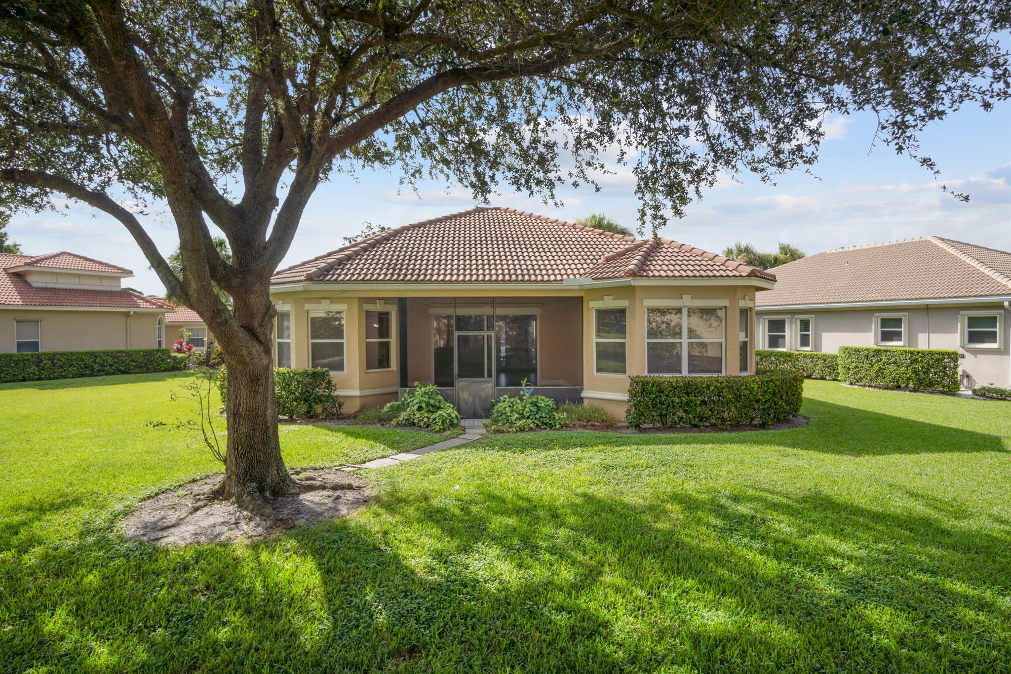 NEW FLOORING, no carpet! NEW PAINT THROUGHOUT! This 2-bedroom home with a versatile bonus room, perfectly situated in the highly sought-after gated community of PGA. Step inside to find an inviting open layout filled with natural light. The spacious living and dining areas flow seamlessly, creating the ideal space for both everyday living and entertaining. The kitchen provides plenty of cabinetry and counter space, ready for your culinary touches. The primary suite is generously sized with ample closet space. The flexible bonus room perfect for an office, den, or guest space. Outside, enjoy a private patio where you can relax and take in the Florida lifestyle. The community includes 24-hour security and access to world-class amenities, including golf and dining. Updated photos coming soon.