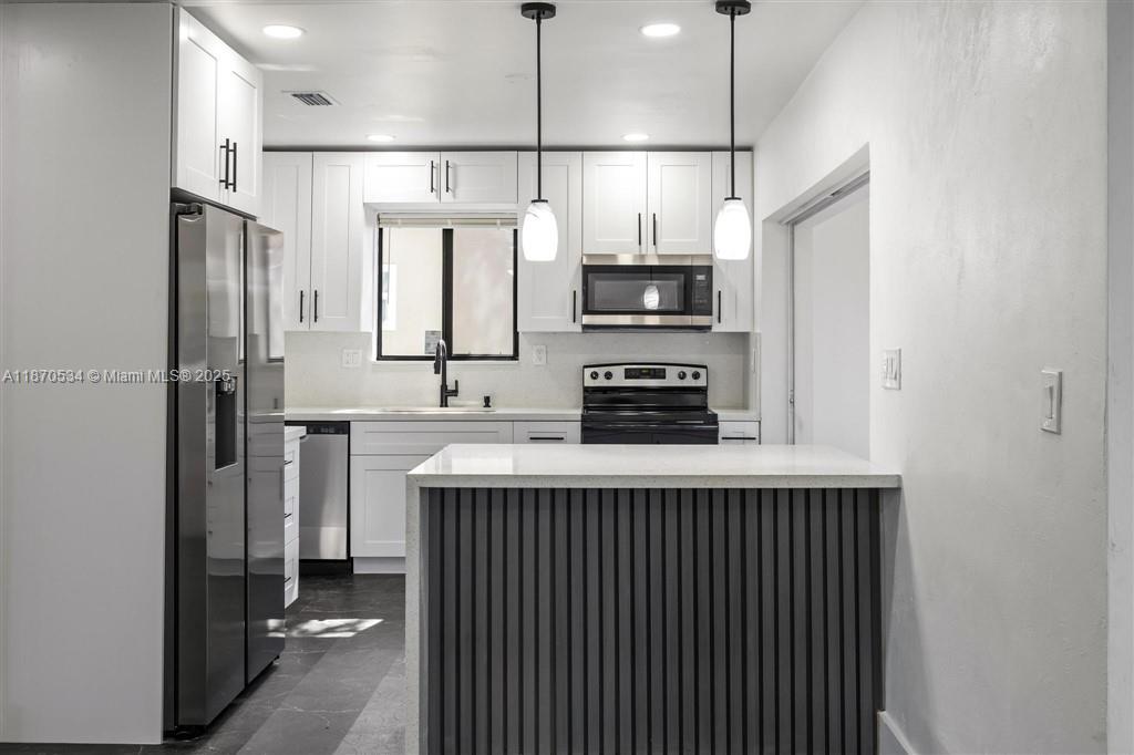 FULLY UPDATED 3 BEDROOM 2 BATH SINGLE FAMILY HOME WITH GARAGE - MOVE-IN READY! This stunning home is fully remodeled featuring 3 spacious bedrooms. Upgrades include brand-new flooring, fresh interior & exterior paint, a beautifully updated kitchen complete with quartz countertops, new stainless steel appliances, and stylishly renovated bathrooms. Featuring hurricane impact windows and doors all the way around the property. Also a single car Garage, new washer & dryer. Central air and heat throughout. Enjoy new lighting throughout, creating a bright, inviting atmosphere & open-concept layout. Nearby shopping plaza includes Publix for groceries and other local retail shops and restaurants. This home is perfect for the first time home owner, investor, landlord, airbnb, etc.