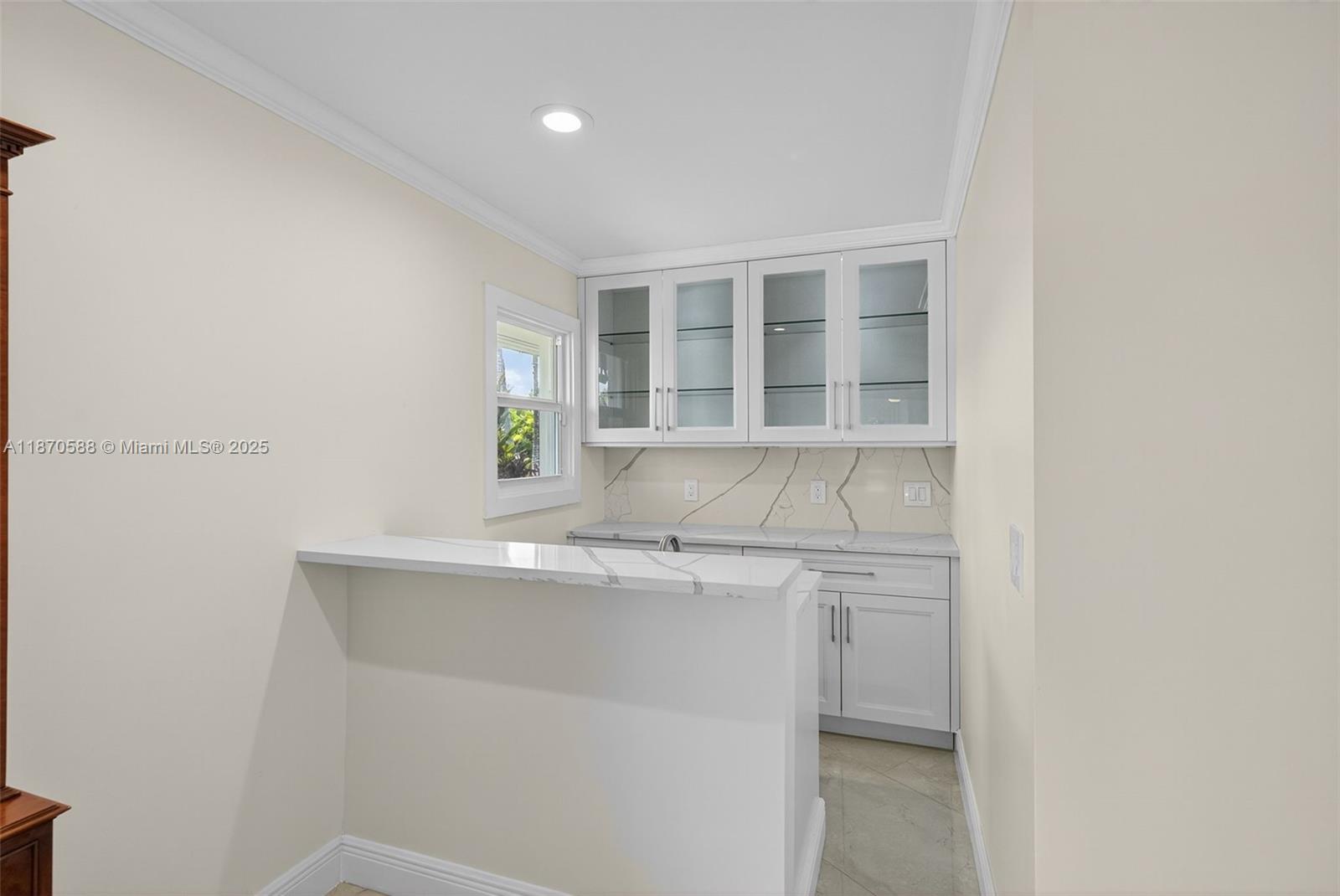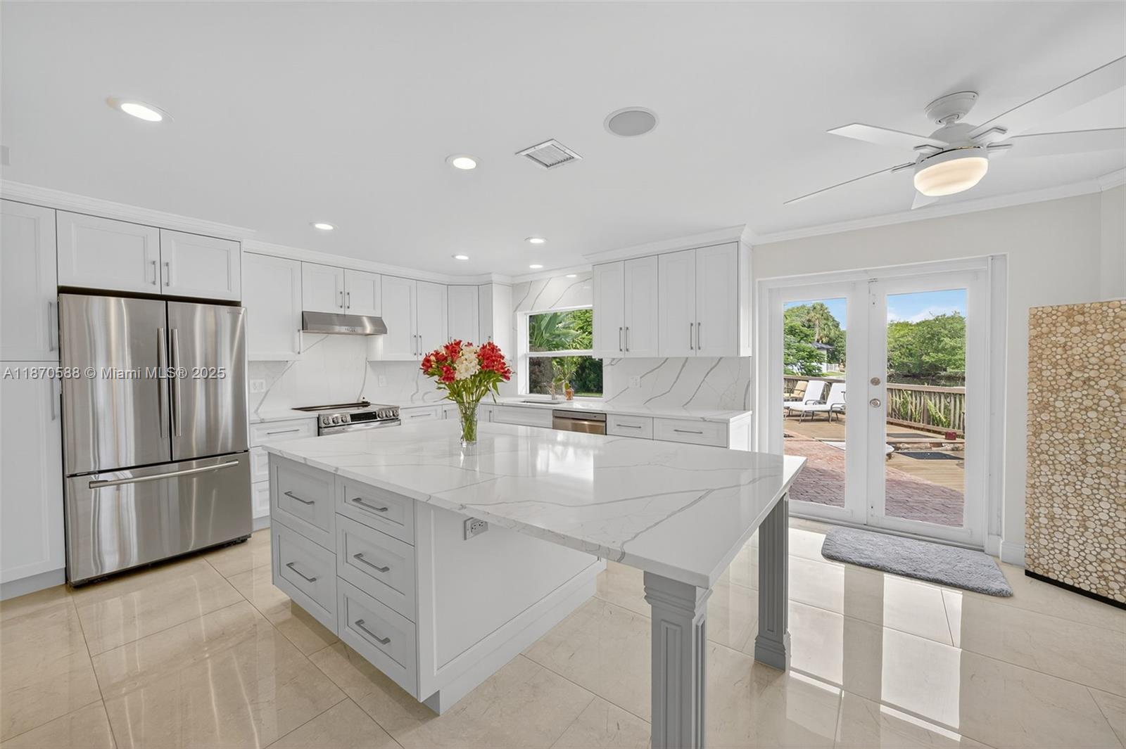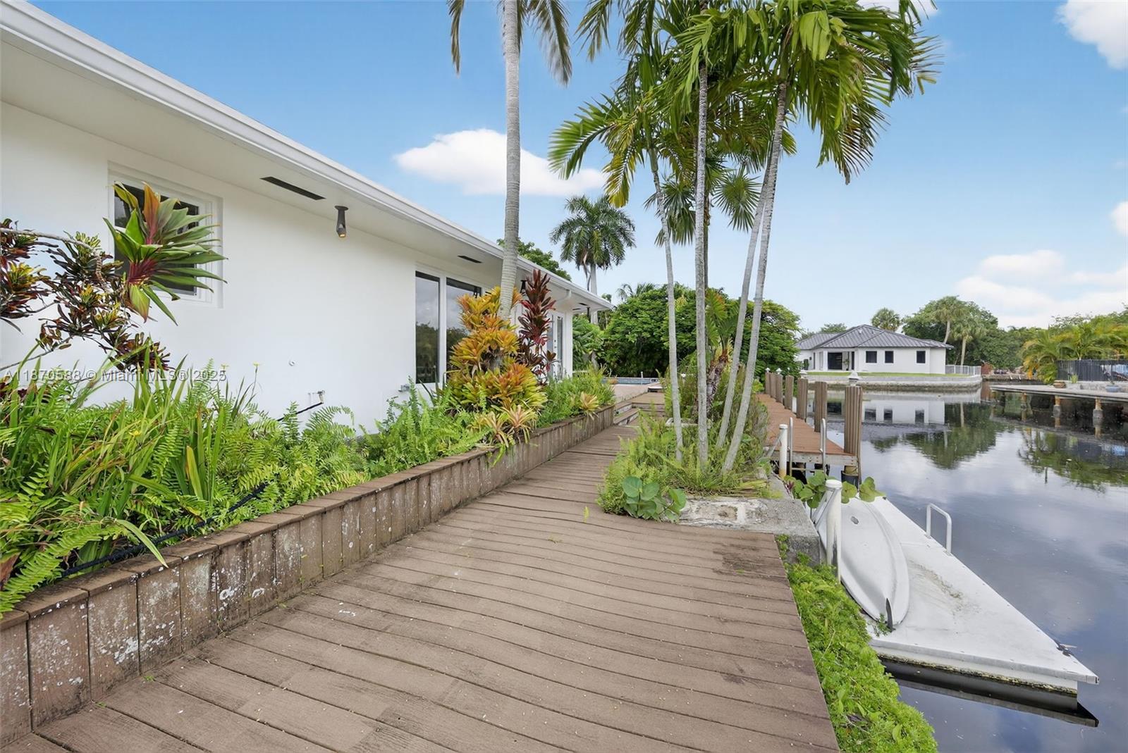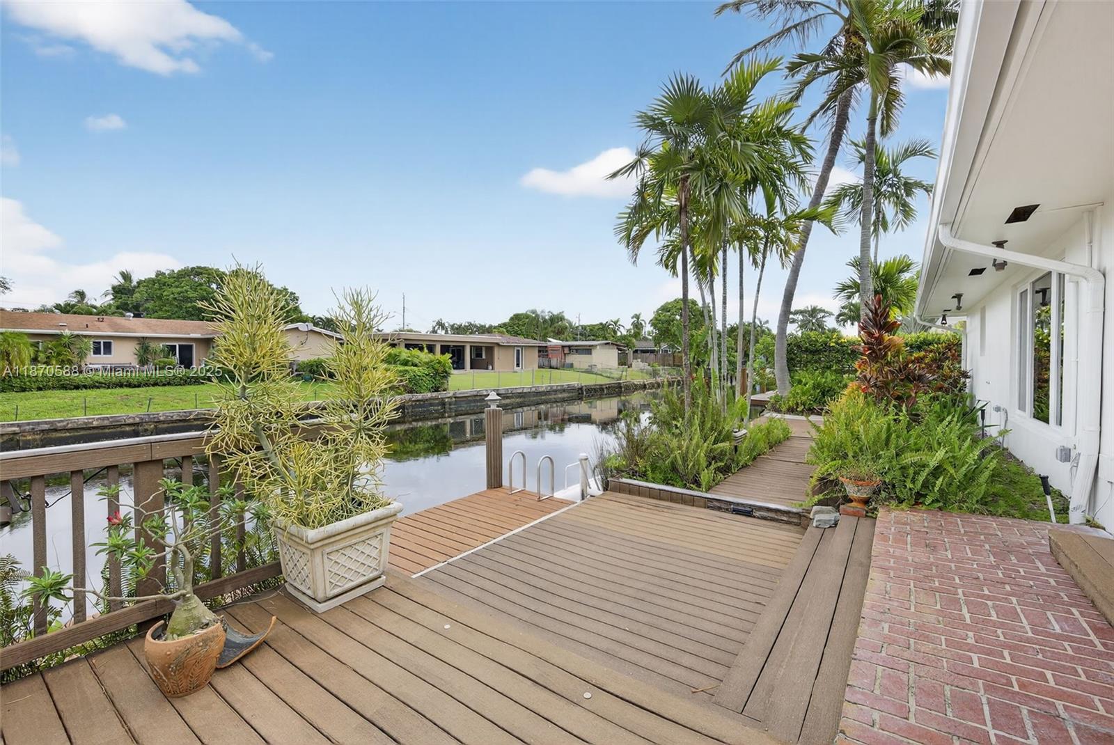 Completely renovated 3-bedroom, 2-bathroom waterfront home on a quiet cul-de-sac with a spacious corner lot. Enjoy 140 feet of water frontage with a 60-foot dock—100 feet on one side and 40 feet on the other—perfect for water enthusiasts. This move-in ready home features a brand-new kitchen with modern appliances, updated bathrooms, new flooring, and a new roof. All impact windows and doors provide peace of mind. The open layout offers water views from the kitchen, family room, and primary suite. Step outside to a large yard with pool, deck, and expansive seating areas designed for entertaining or relaxing by the water. On a 10,000 Sqft lot filled with lush landscaping which completes this rare waterfront gem. Location is near Federal Highway with access to exquisite shopping and dining.