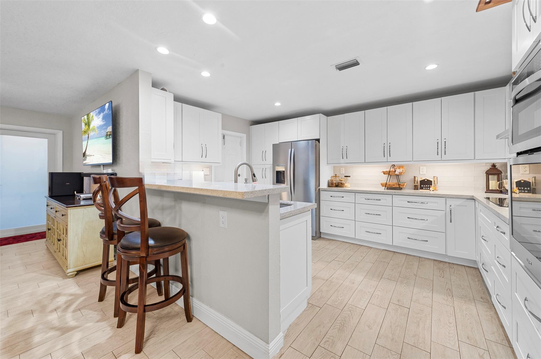The best 3/3 in Riverland Village with a 2 car garage, great pool to cool off on hot days and large master suite with access to the screened in porch and back yard. Great layout with an open concept new in 2018 kitchen with bar seating, split bedroom floorplan and 2 bedrooms having ensuite bathrooms. The large master suite addition completed in 2008 has an extra den / office for storage or future closet use. 2 other bathrooms remodeled in 2019. Impact windows and doors surround the whole property making affordable property insurance. The extra large lot also has wide access to the backyard for boats, trailers, RV or more storage. All closets are built out and finished.