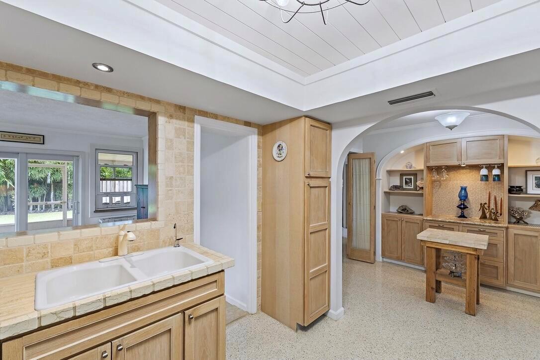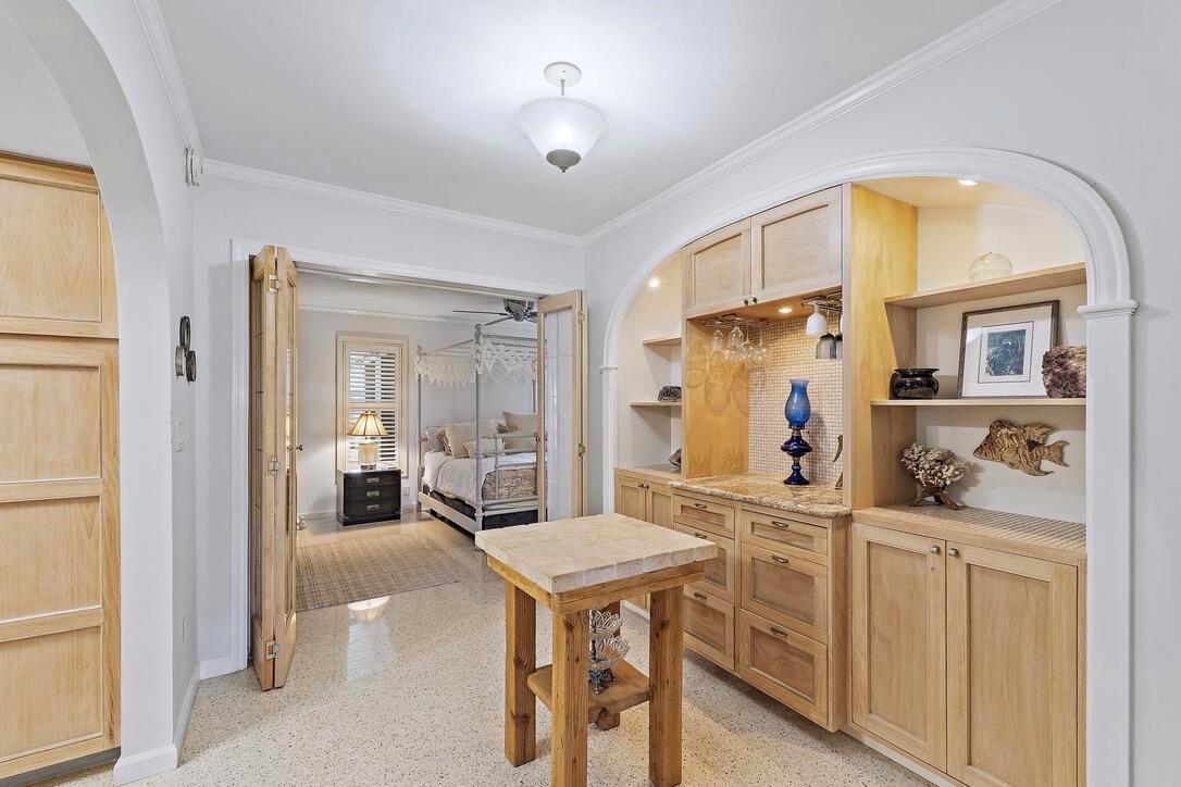 Charmingly updated 3/2, 1,511sf, CBS, home on 1/4-acre in desirable ROCKY POINT. Beautifully restored terrazzo floors in living, kitchen, and bedrooms. Walls and ceilings skim-coated with crown molding, all PGT windows, and plantation shutters. The kitchen is has custom cabinetry and counters, with KitchenAid appliances. A whole-house water softener and reverse osmosis filtration system included. The master bath includes barn door entry, custom vanity, walk in dual head shower, plus interior full size LG washer and dryer. Freshly painted exterior with a paver walkway, porch, and driveway. The 12x27 screened paver patio overlooks a lushly landscaped, fully fenced yard, with 2 pergolas and ample room for guest house and pool. Metal roof, new WH, updated panel w/generator hook up.