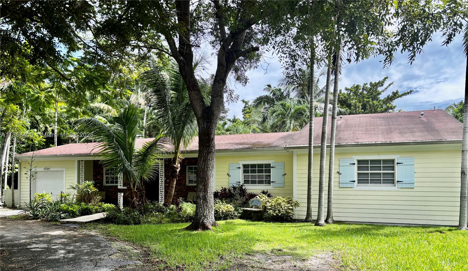 Centrally located in the City of South Miami, walking distance to the University of Miami and the up-and-coming South Miami's downtown and entertainment district. This home sits on nearly half an acre of lush tropical landscape with many mature fruit trees, palms, and native species making for a very private and secluded property. Offers a great layout with 4 bedrooms, 3 full bathrooms (not reflected on public records and being corrected), one of the bedroom rooms currently used as a home office which can easily be converted back to a 4th bedroom. Structure is 100% concrete slab and CBS block with Hardieplank fiber cement siding.