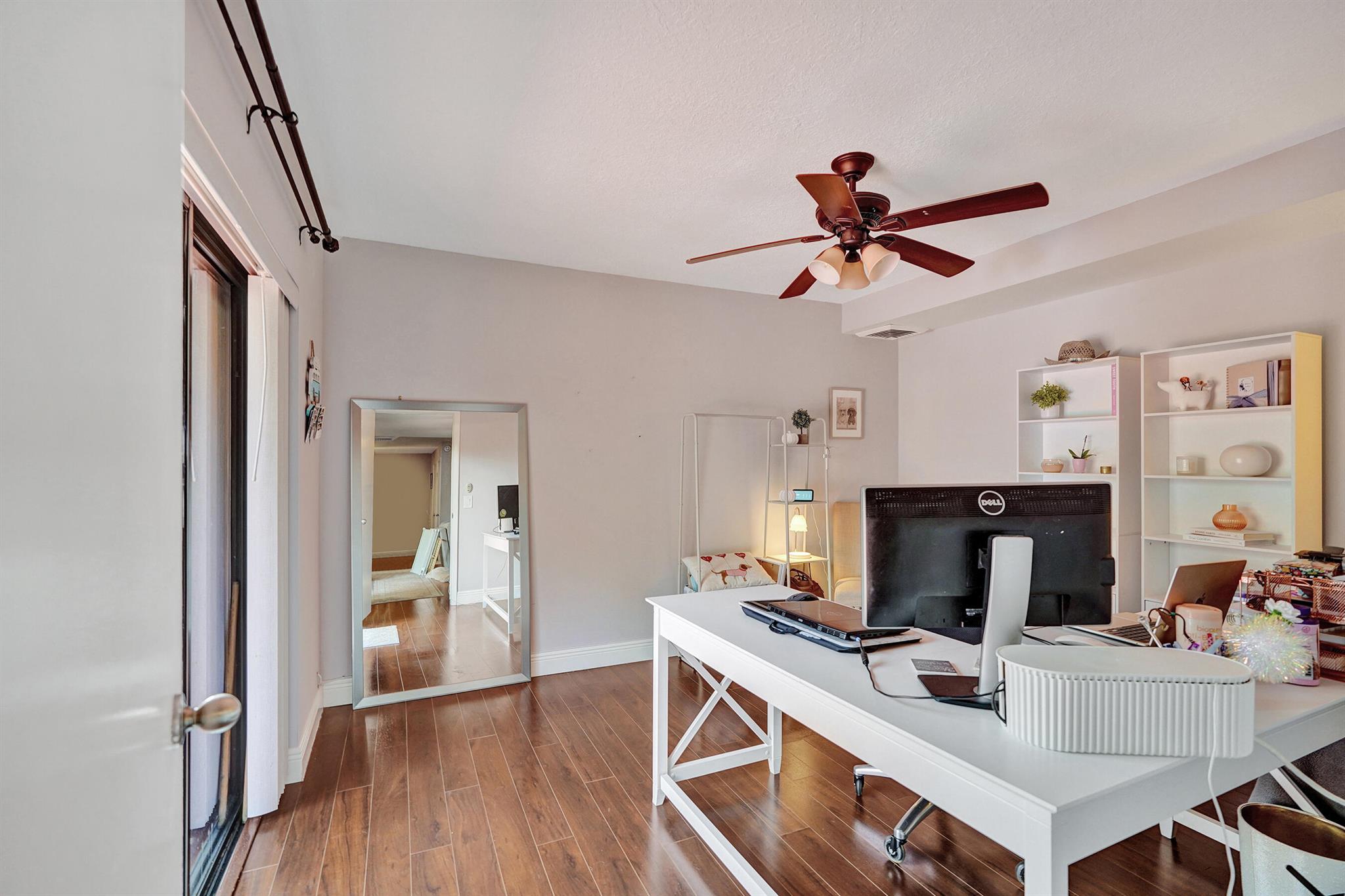 Welcome to Glenwood. A sought after-community within PGA National Golf Course. This spacious 3/2.5 Townhome immediately showcases quality workmanship as you enter, with beautiful wood floors, no carpet, and bathrooms with upgraded tile. Sleek, freshly painted walls and ceilings free of popcorn texture, for a modern and clean feeling. There is a new dishwasher, garbage disposal, and single basin kitchen sink with a new faucet. The kitchen also features wood cabinets with granite countertops and a breakfast bar. Upstairs, the master bath has been fully updated to feel like a spa retreat. All three bathrooms have been upgraded with modern cabinetry, The walk-in-closet in the primary suite is spacious, featuring built-in shelves. The downstairs office can be used as a third bedroom.