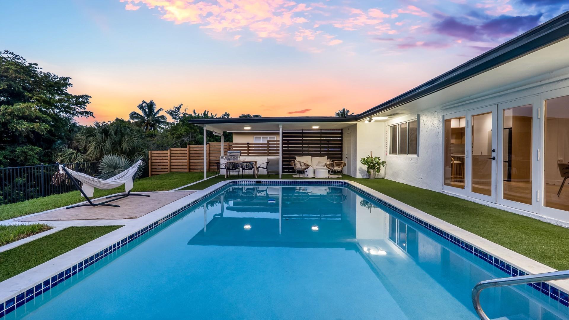 Stunning 3BD/3BA pool home loaded with upgrades. Enjoy wood floors; a sleek new kitchen with waterfall island; refreshed baths; updated plumbing; new roof; washer/dryer; custom primary closet; built-in living room console; fiber-optic internet; and new landscaping with irrigation. The open layout flows to a backyard paradise with canal views, pool, outdoor shower, cabana bath, and a full summer kitchen—perfect for effortless indoor-outdoor living. On a quiet, tree-lined street in one of Coral Springs’ most desirable neighborhoods. Minutes to dining, shopping, golf, and about 25 minutes to the beach. Turnkey and move-in ready—ideal for entertaining or a serene evening under the stars. Disclosure: Buyer must assume the existing solar-panel lease.