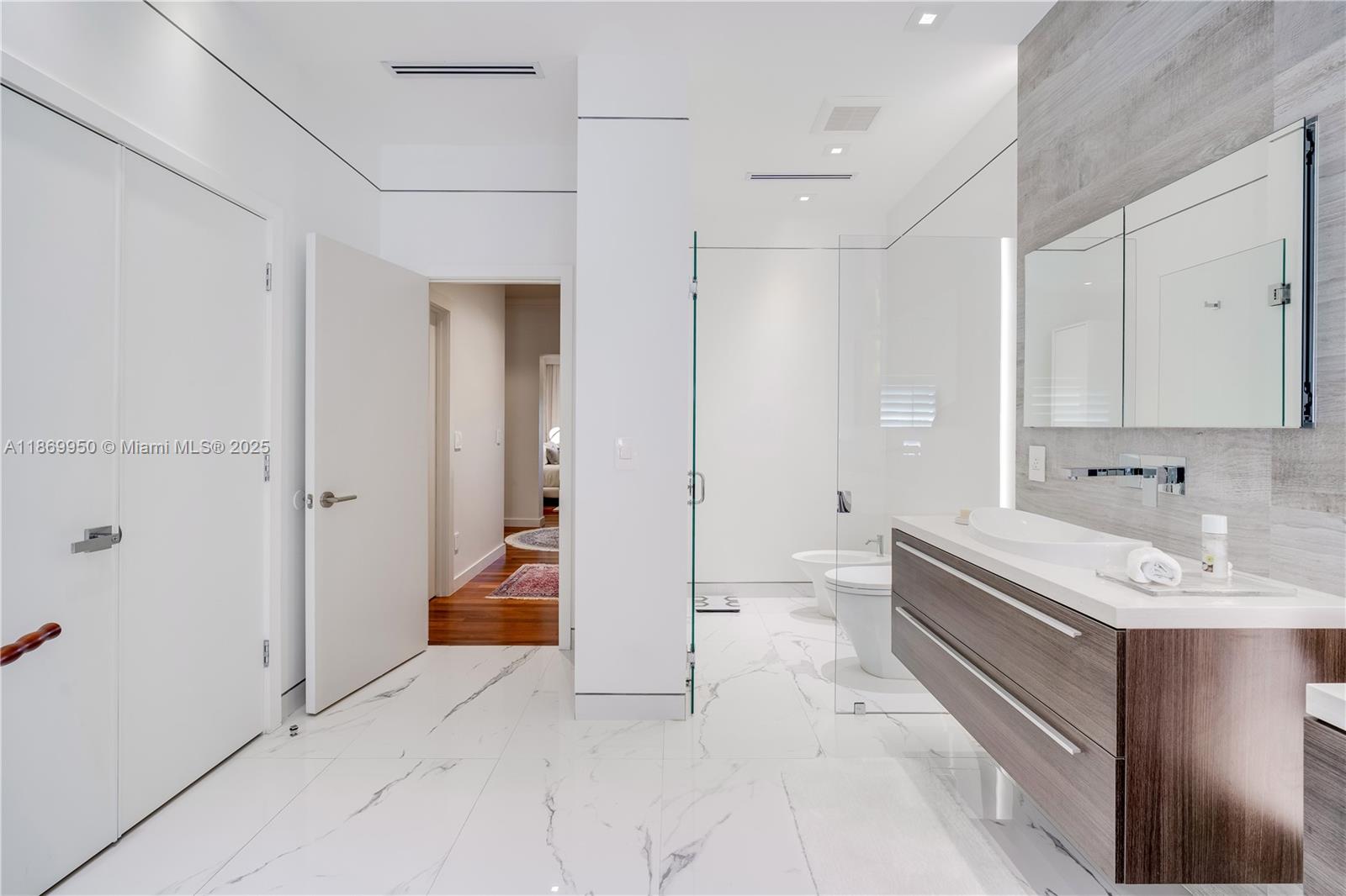 Welcome to Presidential Estates, North Miami’s most prestigious gated community. This renovated Garland Model blends luxury, security and lifestyle with 7 beds, 5.5 baths and 4,100+ sq ft of living space. Enjoy open golf and lake views from sunrise breakfasts on the terrace to poolside afternoons and starlit dinners. Features include vaulted ceilings, marble and wood floors, gourmet kitchen with island, walk-in closets and spa-style primary suite. The 9,219 sq ft lot offers balconies, lush patio, pool and BBQ. Two-car garage, 24/7 security and meticulous landscaping highlight the value of this exclusive enclave. HOA covers full maintenance and premium amenities. Minutes from Aventura Mall, beaches and Miami nightlife, this rare property combines design, location and lifestyle.