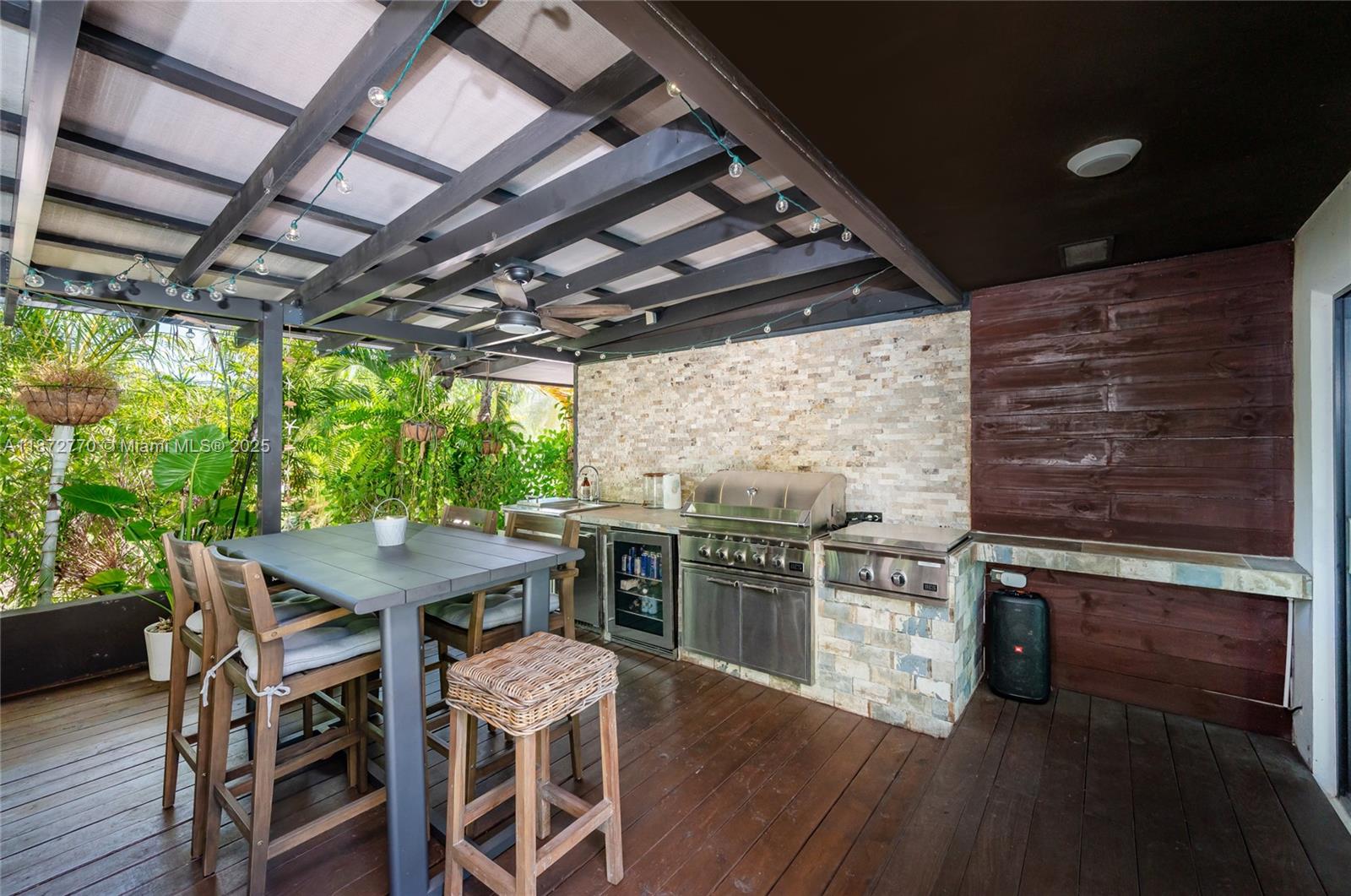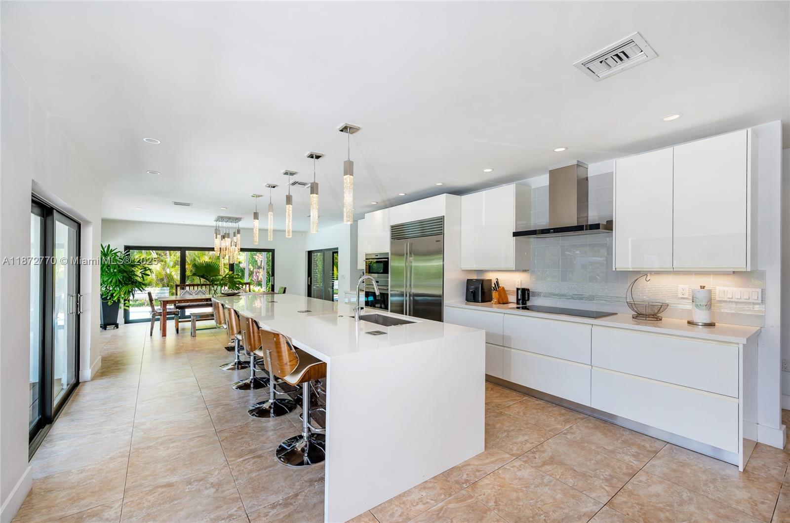 Renovated in 2018, this modern residence in guard-gated Gables by the Sea offers canal access with private dock and 10,000 lb. boat lift for vessels up to 30 ft. Just 5 minutes to the bay, ideal for boating. Home features 4 bedrooms, 3.5 baths, and an open 3,376 sq. ft. floor plan with natural light. Kitchen includes quartz countertops and SubZero/Wolf appliances. Additional finishes: porcelain tile floors, impact windows/doors, LED lighting, Ipe decks. Outdoor areas include pool, pergola with full kitchen, and watersports launch. The remodeled 2-car garage doubles as playroom or lounge. Located near top private schools including Gulliver, offering waterfront lifestyle with family convenience. Note: All measurements approximate; buyer to verify. Subject to survey.