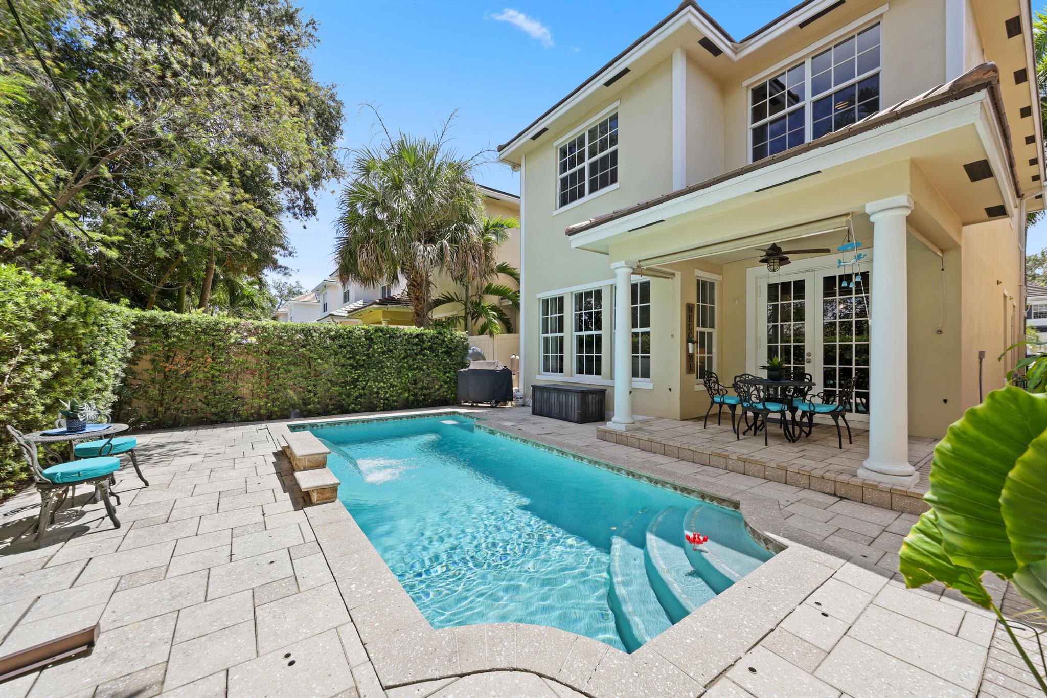 Discover this gorgeous home featuring a private pool and 2-car garage. The home is beautifully maintained with complete impact windows, a new A/C, and a new water heater. The spacious first floor is bright and airy with a perfect layout for entertaining. The oversized primary bedroom offers ultimate relaxation with a private balcony, large walk-in closet, and spa like bathroom.
