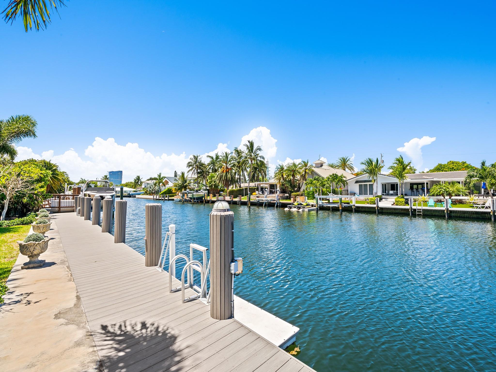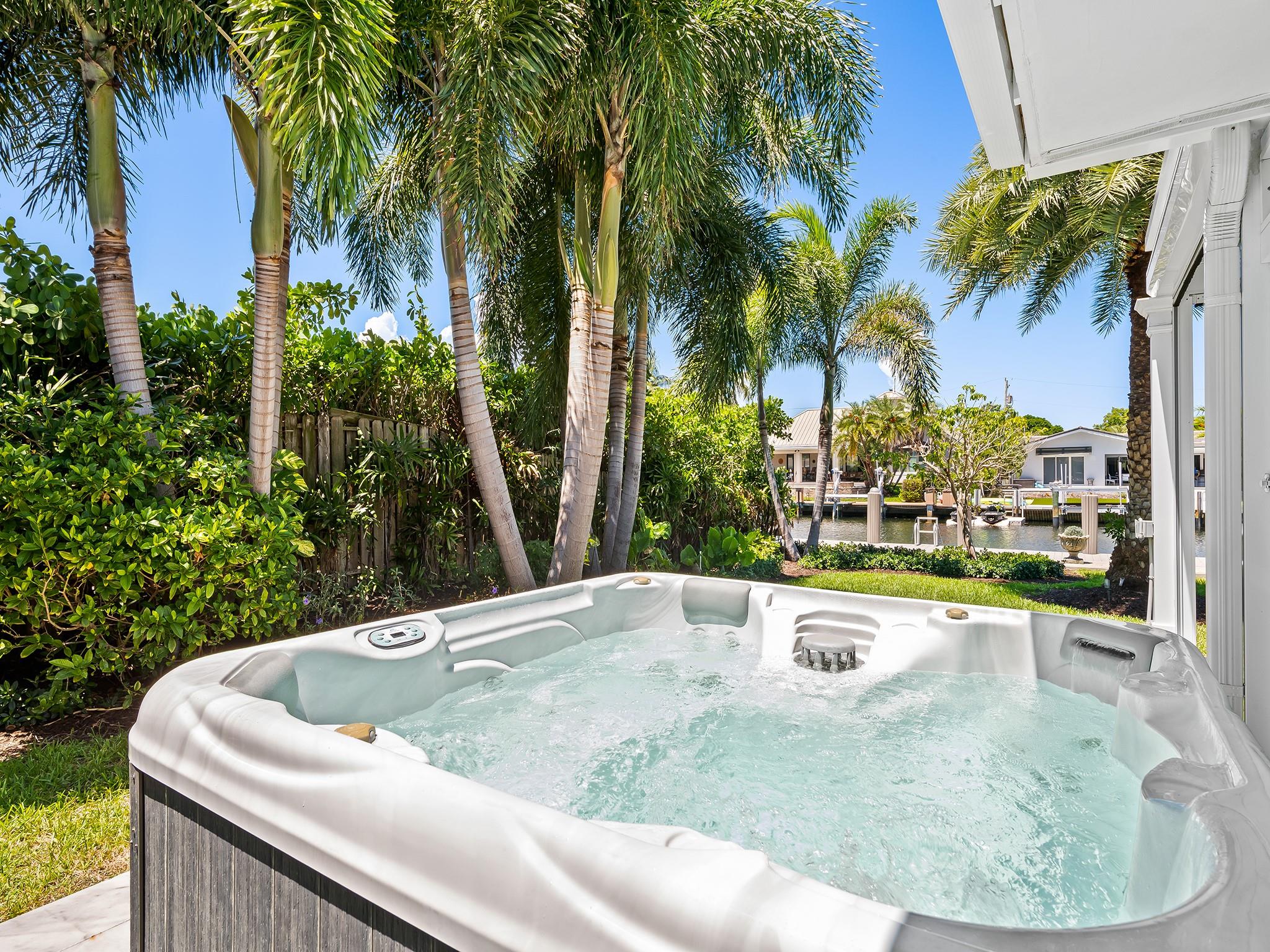 Picture living in Harbor Inlet, steps to a pristine beach, in this beautifully updated, tastefully elegant, 3/2 waterfront home. Step into the sun filled, open living area, where the ambiance evokes the calm of a private spa retreat, looking out to reveal a beautifully landscaped backyard oasis, featuring a new dock, soothing jacuzzi, and a sophisticated covered porch with retractable screens. Every detail throughout the home reflects thoughtful craftsmanship & refined taste. Curb appeal is simply unmatched, with a newly installed grand circular driveway offering ample parking for guests, two-car garage, setting the home back from the street behind an elegant gate, ensuring privacy and a stately presence. Enjoy direct ocean access with 80 feet of waterfront and only one fixed bridge.