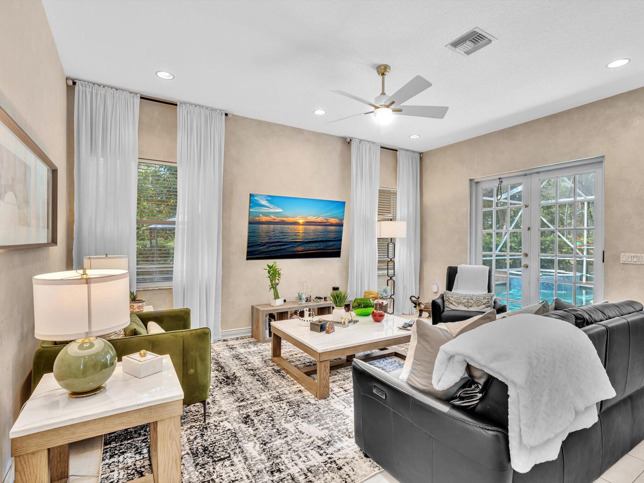 Gorgeous single story home nestled in the heart of the Smith Farm community that boasts amenities galore! Huge, beautiful screened in pool and backyard area gives you the feel you're permanently on vacation! 4 bedrooms, 3 bathrooms, high ceilings, stylish decor, new pool decking, combined large kitchen and family room make this anyone's idea of luxury living. Smith Farm Community has so much to offer! Community center, fitness center, tennis, picnic areas, walking paths, pet friendly, convenient location, reasonable HOA, and welcoming to all ages! This home is priced to sell and won't last long so make your appointment today!