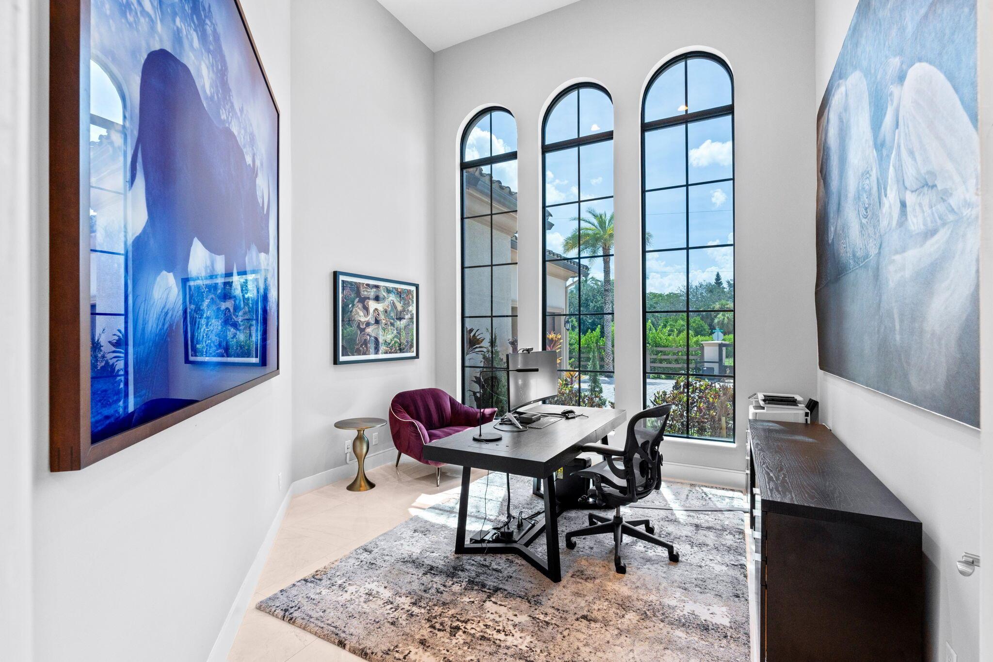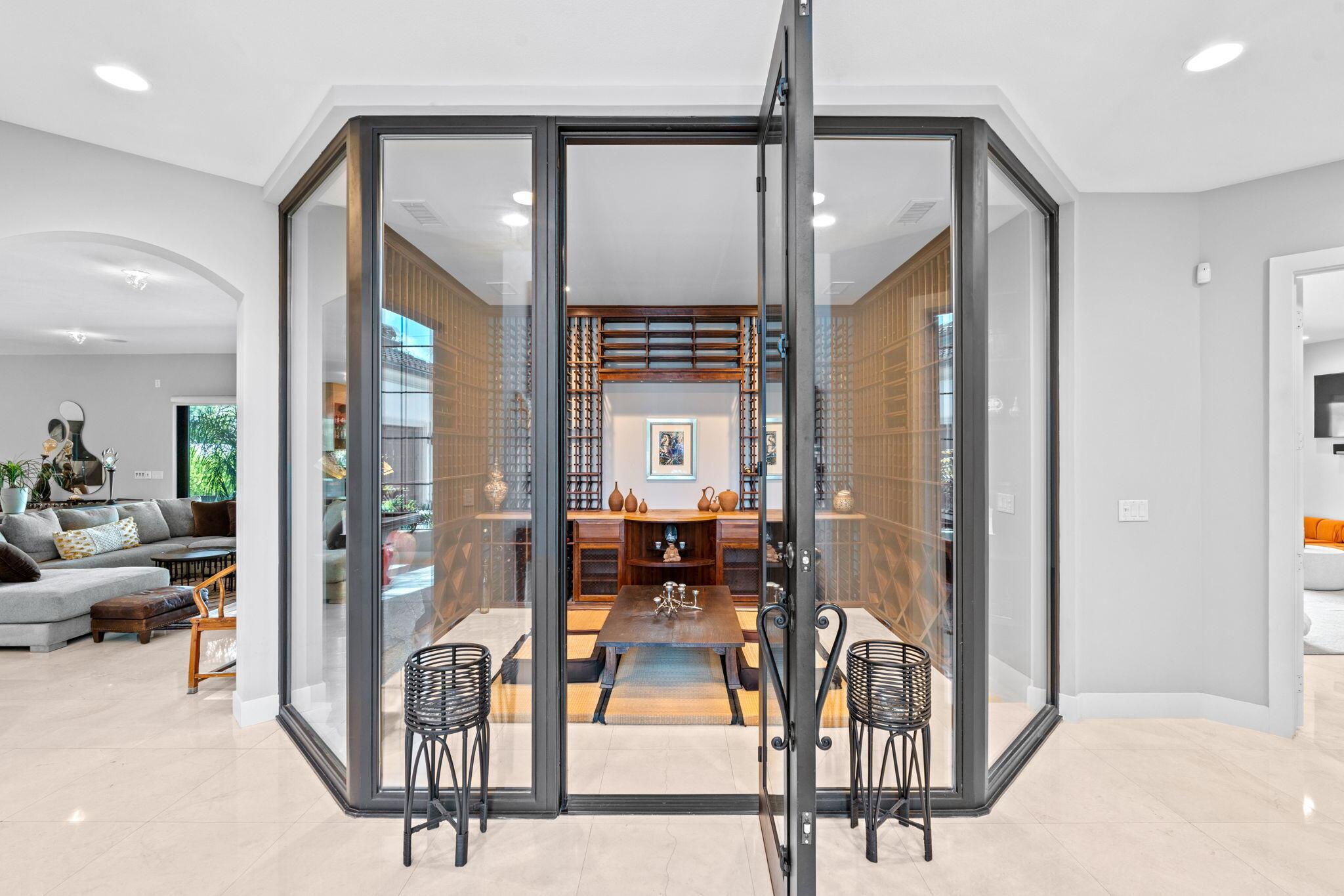 An equestrian dream opportunity: two adjoining properties totaling 3.75 acres with world-class equestrian facilities, including a fully equipped 7-stall barn with tack, feed, laundry, and full bath; a 5-stall barn with tack and feed rooms; multiple wash stalls; two sand arenas; a hot walker; and five paddocks. Three gated driveways and mature landscaping provide privacy and ease of access, just minutes from the Wellington International, Global Dressage venues, and Wellington's dining and shopping--perfectly timed for show season.The main residence is a modern entertainer's dream with bright, wide-open spaces, soaring ceilings, and nearly floor-to-ceiling windows. The entry leads into a striking, one-of-a-kind wine room. Italian marble and wood flooring flow throughout,