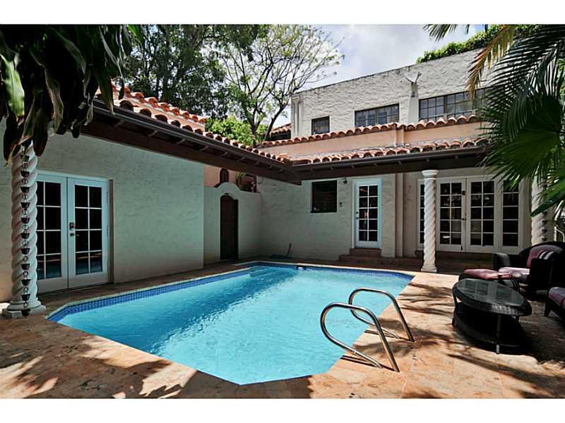This Master Brokers Listing is a classic two story 1925 Old Spanish. The main house, beautifully renovated just a few years ago, features three bedrooms, living room, dining room, a small office, family room, eat-in kitchen, high ceilings, fireplace and lovely wide staircase. In addition the garage was recently converted into a charming guest house with another bedroom and bath overlooking the pool. Like a luxury townhouse, with very little yard to maintain, in walking distance to downtown Coral Gables.