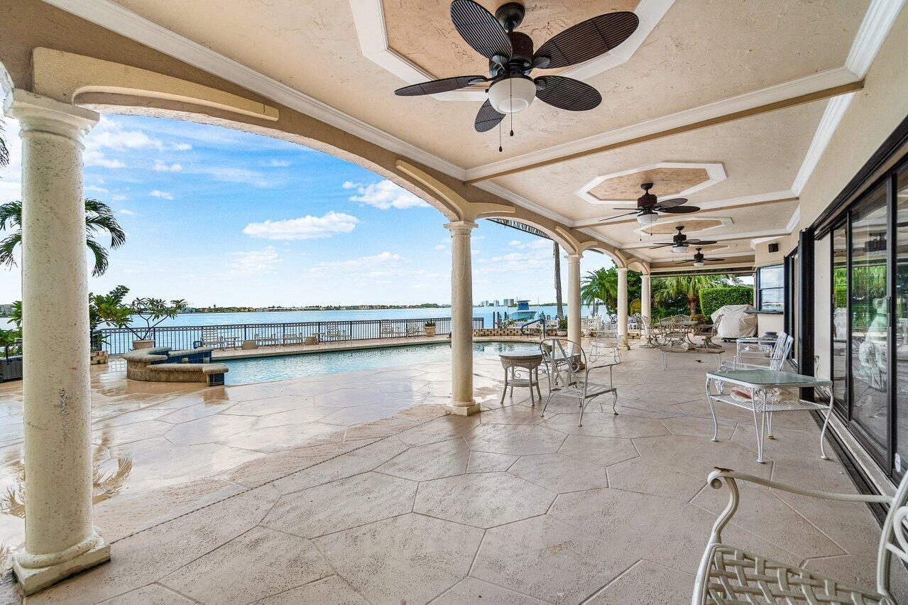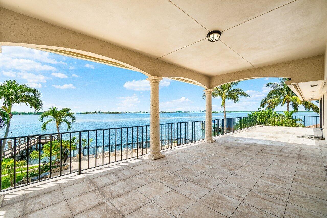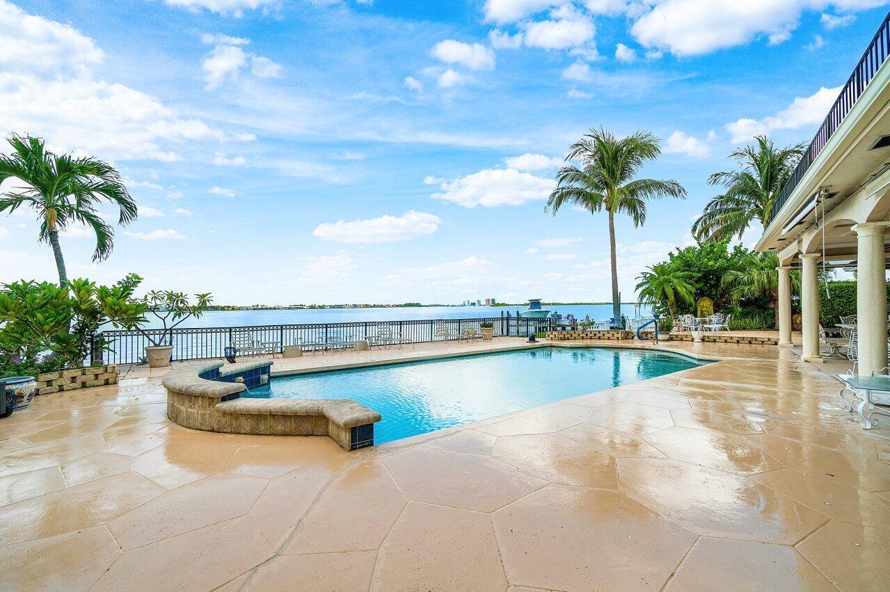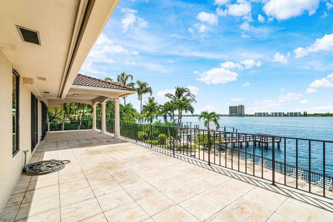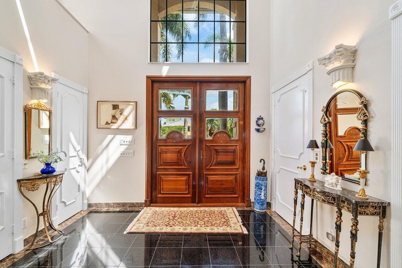 Discover a one-of-a-kind opportunity on Singer Island's most exclusive stretch of single family homes. Positioned on a private cul-de-sac street, 1010 Pine Point Road offers 144 feet of unobstructed Intracoastal frontage with a private dock, 14,000 lb lift, and deep water access just minutes from the inlet, making it a true boater's dream. This Mediterranean Revival residence spans more than 4,000 square feet under air and over 6,000 total, designed for both grand entertaining and quiet waterfront living. A dramatic double-height foyer with a custom cupola floods the home with natural light, leading to expansive living and dining areas finished in marble and natural stone. With four bedrooms, private elevator and a sprawling owner's suite, this home provides scale and gracious livability.