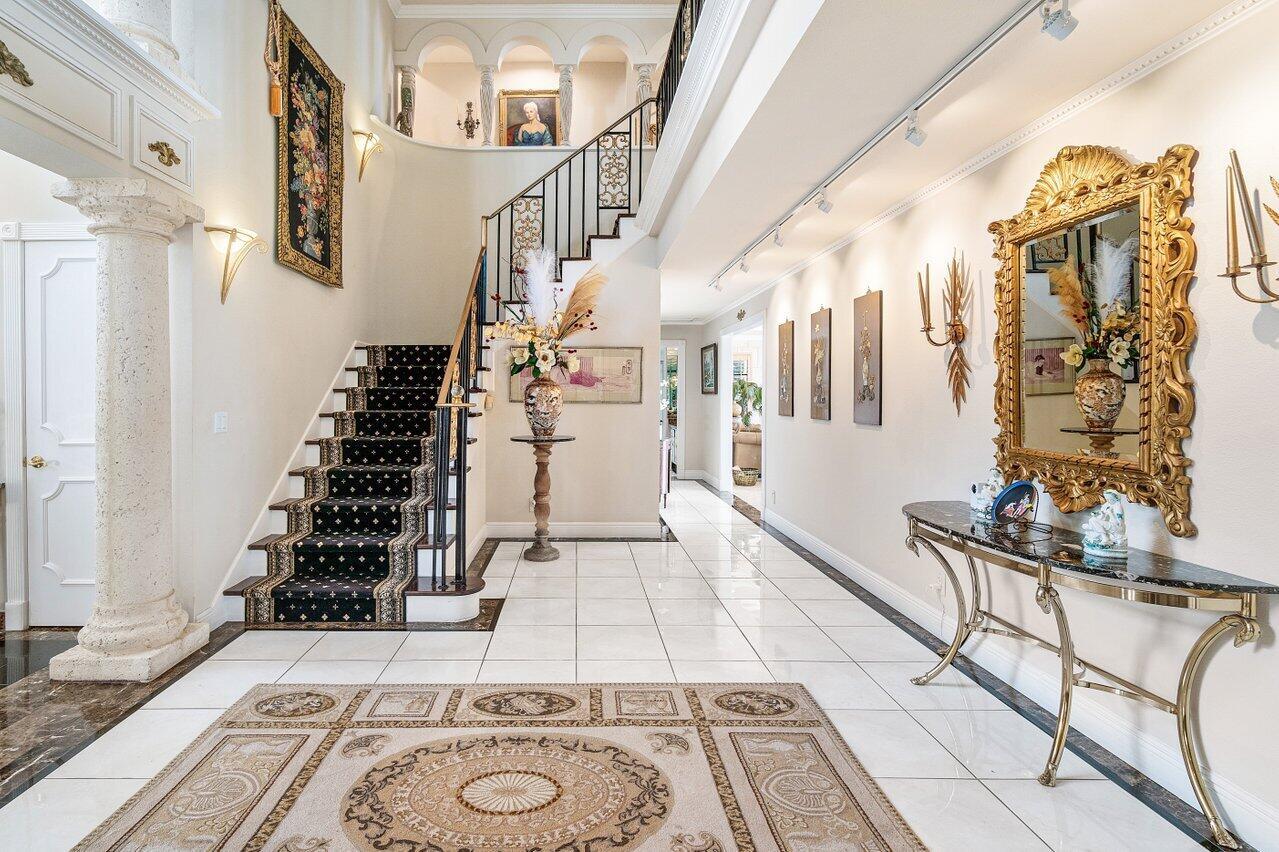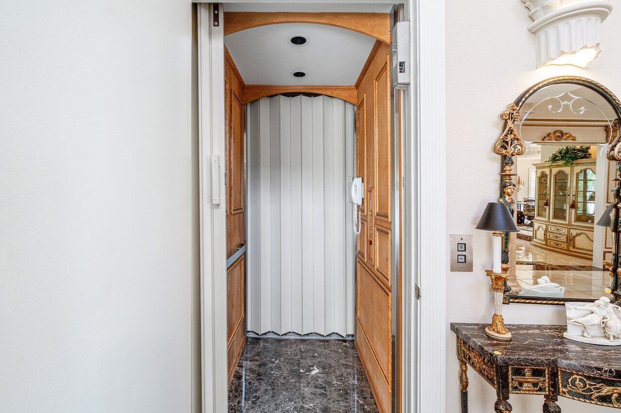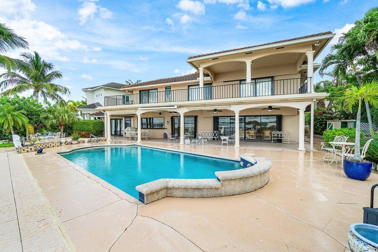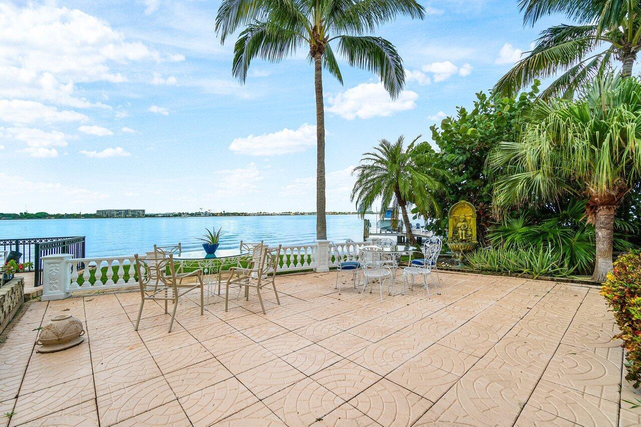 Discover a one-of-a-kind opportunity on Singer Island's most exclusive stretch of single family homes. Positioned on a private cul-de-sac street, 1010 Pine Point Road offers 144 feet of unobstructed Intracoastal frontage with a private dock, 14,000 lb lift, and deep water access just minutes from the inlet, making it a true boater's dream. This Mediterranean Revival residence spans more than 4,000 square feet under air and over 6,000 total, designed for both grand entertaining and quiet waterfront living. A dramatic double-height foyer with a custom cupola floods the home with natural light, leading to expansive living and dining areas finished in marble and natural stone. With four bedrooms, private elevator and a sprawling owner's suite, this home provides scale and gracious livability.