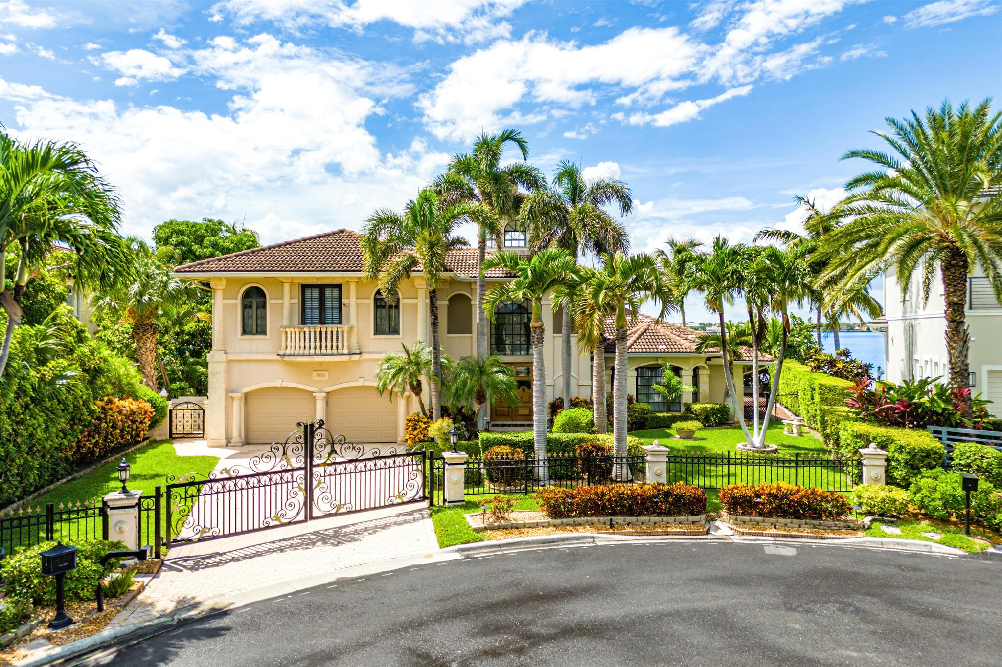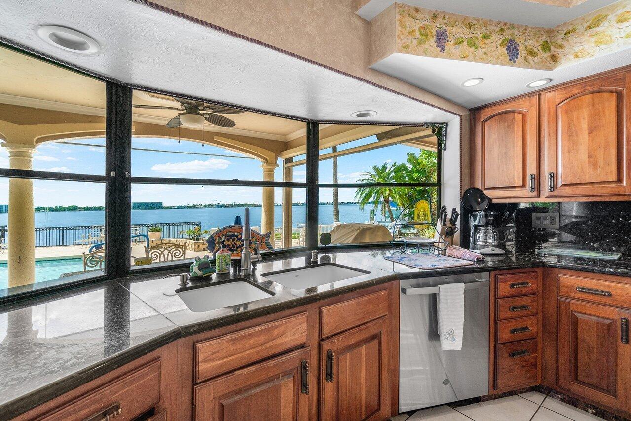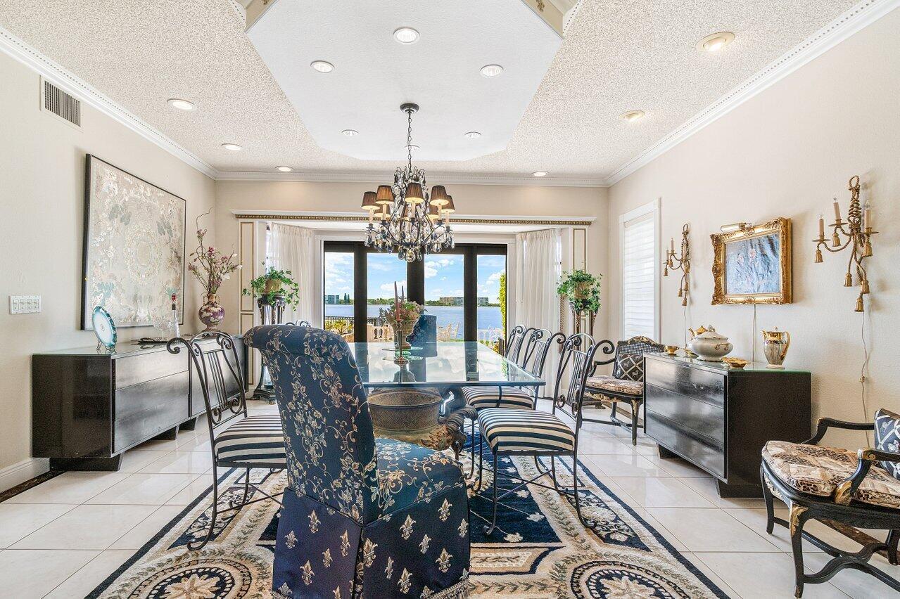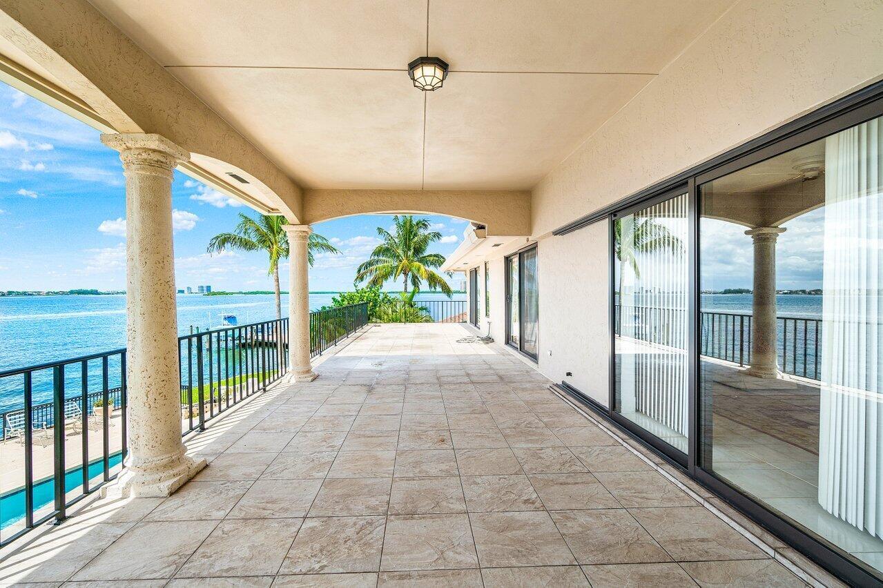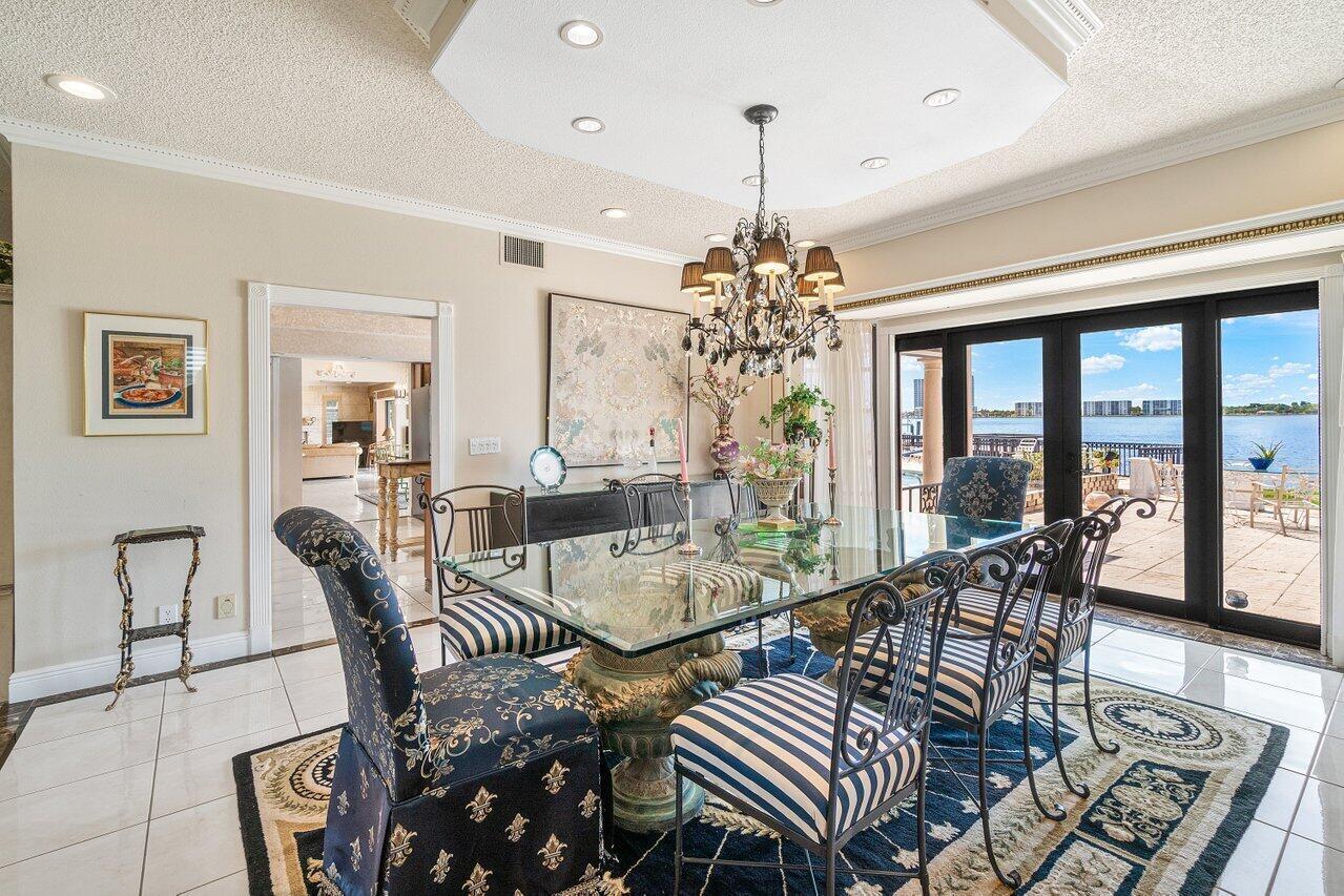 Discover a one-of-a-kind opportunity on Singer Island's most exclusive stretch of single family homes. Positioned on a private cul-de-sac street, 1010 Pine Point Road offers 144 feet of unobstructed Intracoastal frontage with a private dock, 14,000 lb lift, and deep water access just minutes from the inlet, making it a true boater's dream. This Mediterranean Revival residence spans more than 4,000 square feet under air and over 6,000 total, designed for both grand entertaining and quiet waterfront living. A dramatic double-height foyer with a custom cupola floods the home with natural light, leading to expansive living and dining areas finished in marble and natural stone. With four bedrooms, private elevator and a sprawling owner's suite, this home provides scale and gracious livability.