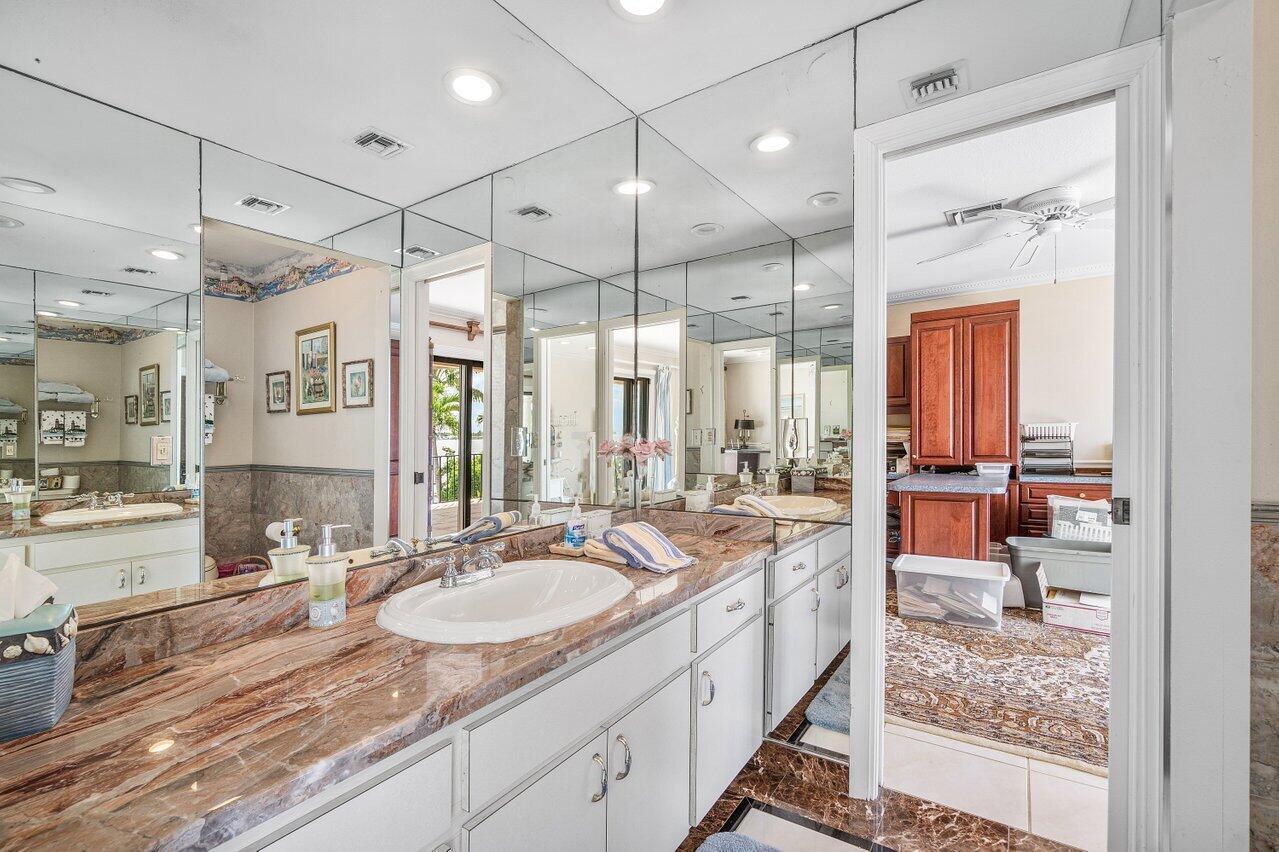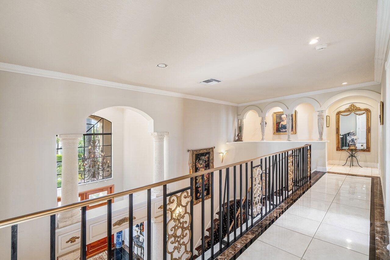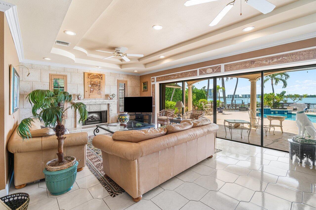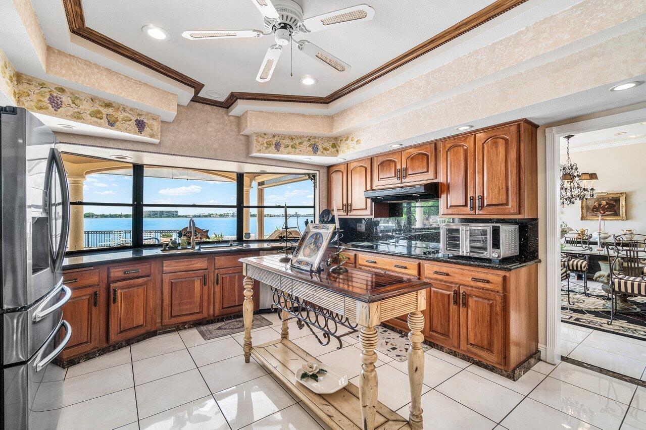 Discover a one-of-a-kind opportunity on Singer Island's most exclusive stretch of single family homes. Positioned on a private cul-de-sac street, 1010 Pine Point Road offers 144 feet of unobstructed Intracoastal frontage with a private dock, 14,000 lb lift, and deep water access just minutes from the inlet, making it a true boater's dream. This Mediterranean Revival residence spans more than 4,000 square feet under air and over 6,000 total, designed for both grand entertaining and quiet waterfront living. A dramatic double-height foyer with a custom cupola floods the home with natural light, leading to expansive living and dining areas finished in marble and natural stone. With four bedrooms, private elevator and a sprawling owner's suite, this home provides scale and gracious livability.