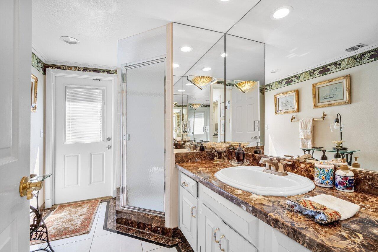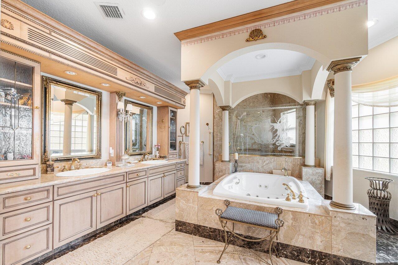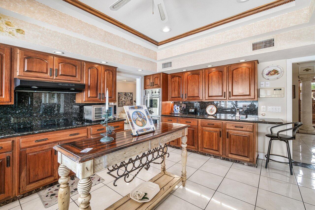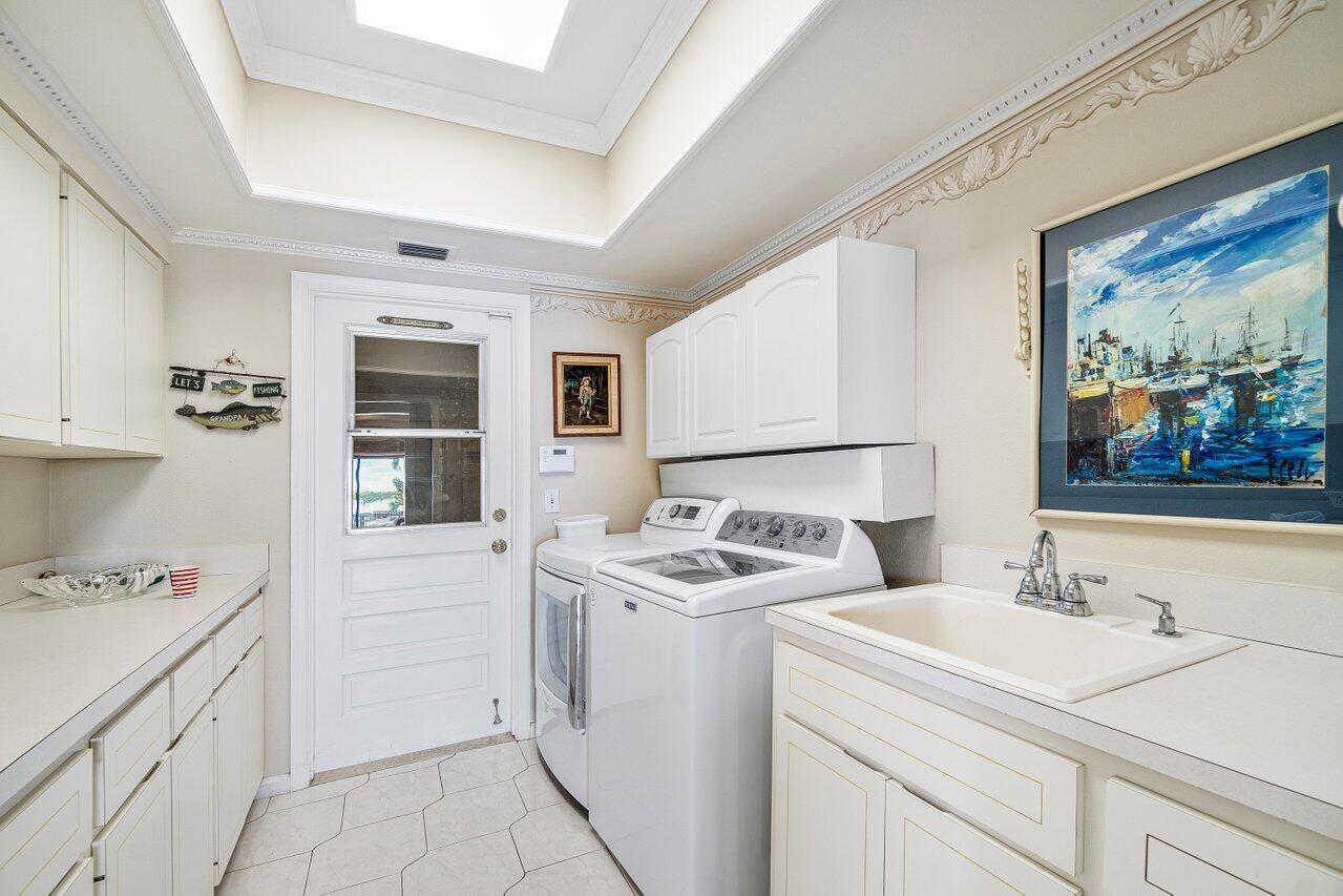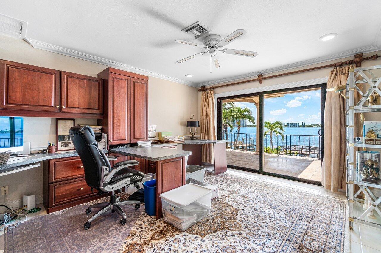 Discover a one-of-a-kind opportunity on Singer Island's most exclusive stretch of single family homes. Positioned on a private cul-de-sac street, 1010 Pine Point Road offers 144 feet of unobstructed Intracoastal frontage with a private dock, 14,000 lb lift, and deep water access just minutes from the inlet, making it a true boater's dream. This Mediterranean Revival residence spans more than 4,000 square feet under air and over 6,000 total, designed for both grand entertaining and quiet waterfront living. A dramatic double-height foyer with a custom cupola floods the home with natural light, leading to expansive living and dining areas finished in marble and natural stone. With four bedrooms, private elevator and a sprawling owner's suite, this home provides scale and gracious livability.