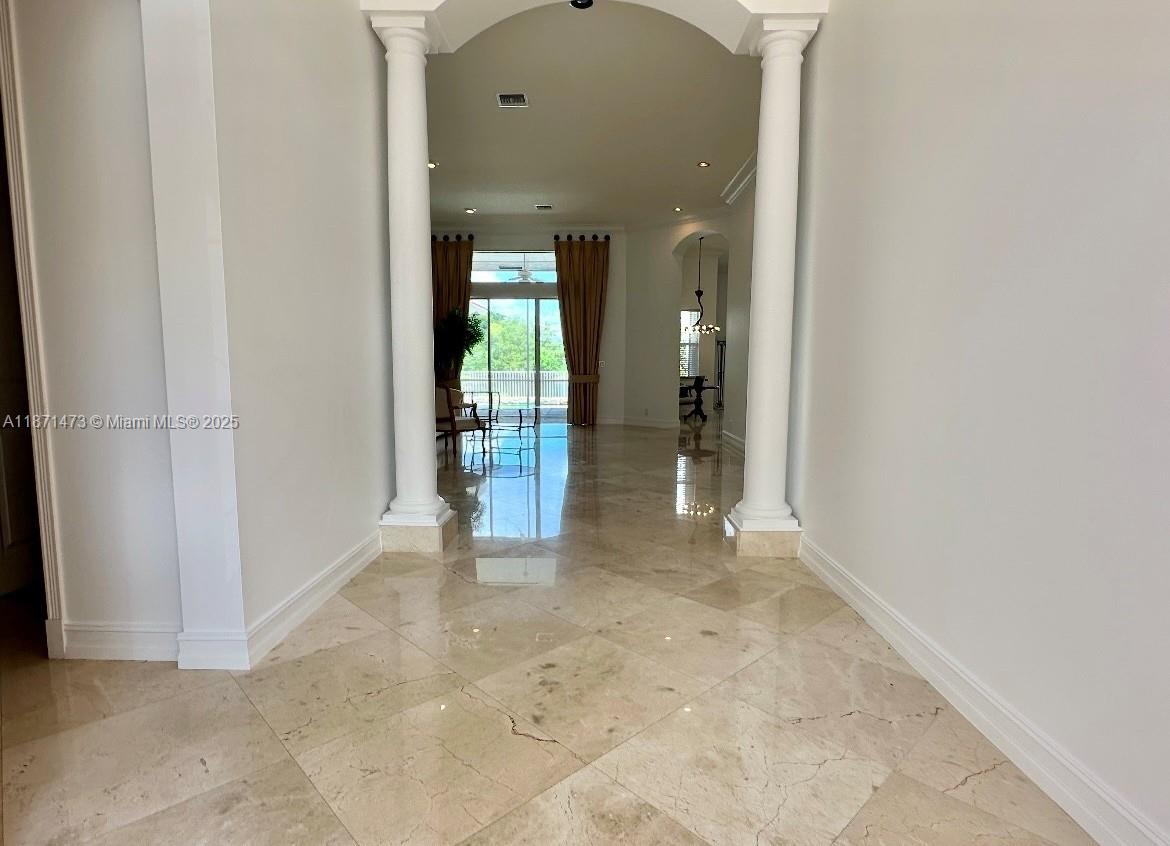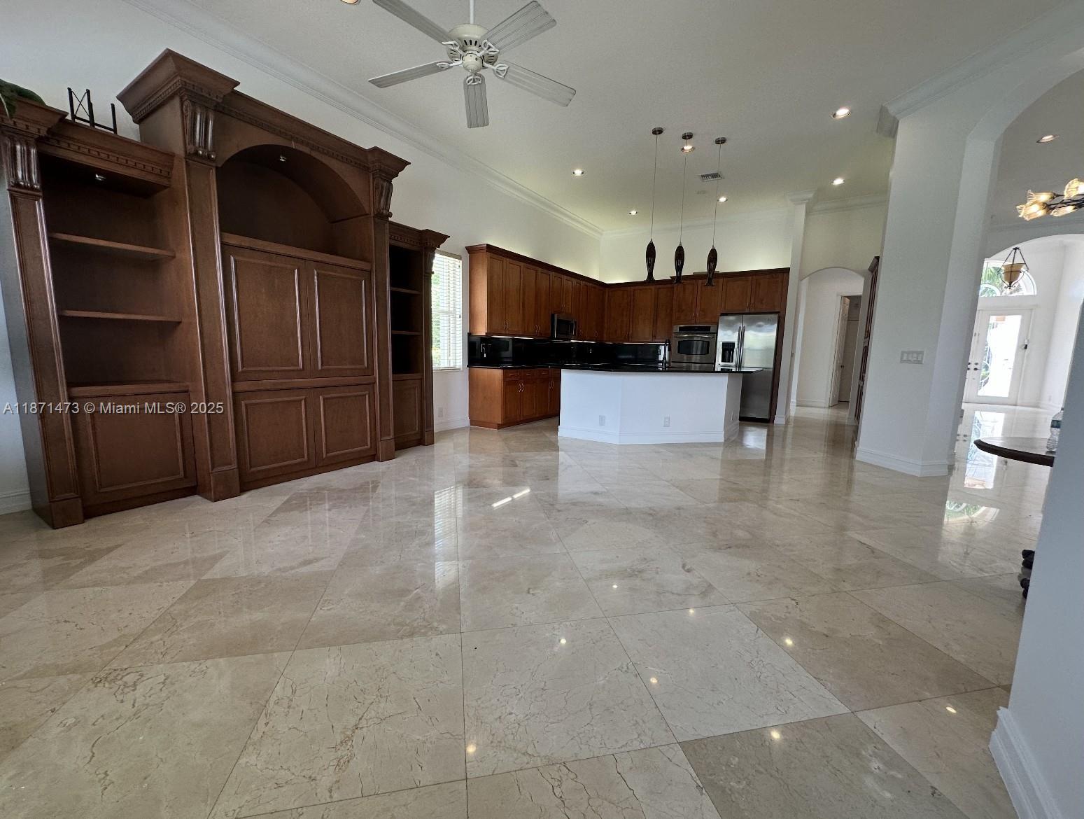 NEW LISTING with serene Lake View from relaxing pool & garden. This home is filled with so many enjoyable amenities like High Ceilings w/crown moldings, numerous windows, newly painted interior, large eat-in kitchen w/granite counters, wood cabinets & SS appliances. Fun casual snack bar & eat-in breakfast area flowing into large Family room w/TV Wall unit. Separate chic Living & Dining room. Huge Primary suite w/luxurious primary bath w/dual sinks, spa-tub & shower. 3 additional bedrooms-no carpeting! Beautiful marble flooring, plus sophisticated rich wood flooring in bedrooms. Window treatments & hurricane shutters. Come enjoy this active lifestyle at Villaggio, including Clubhouses, Cafe, shows, pools w/social & exercise programs. Tennis, Pickle Ball, Bocce, Racquet Ball & more!