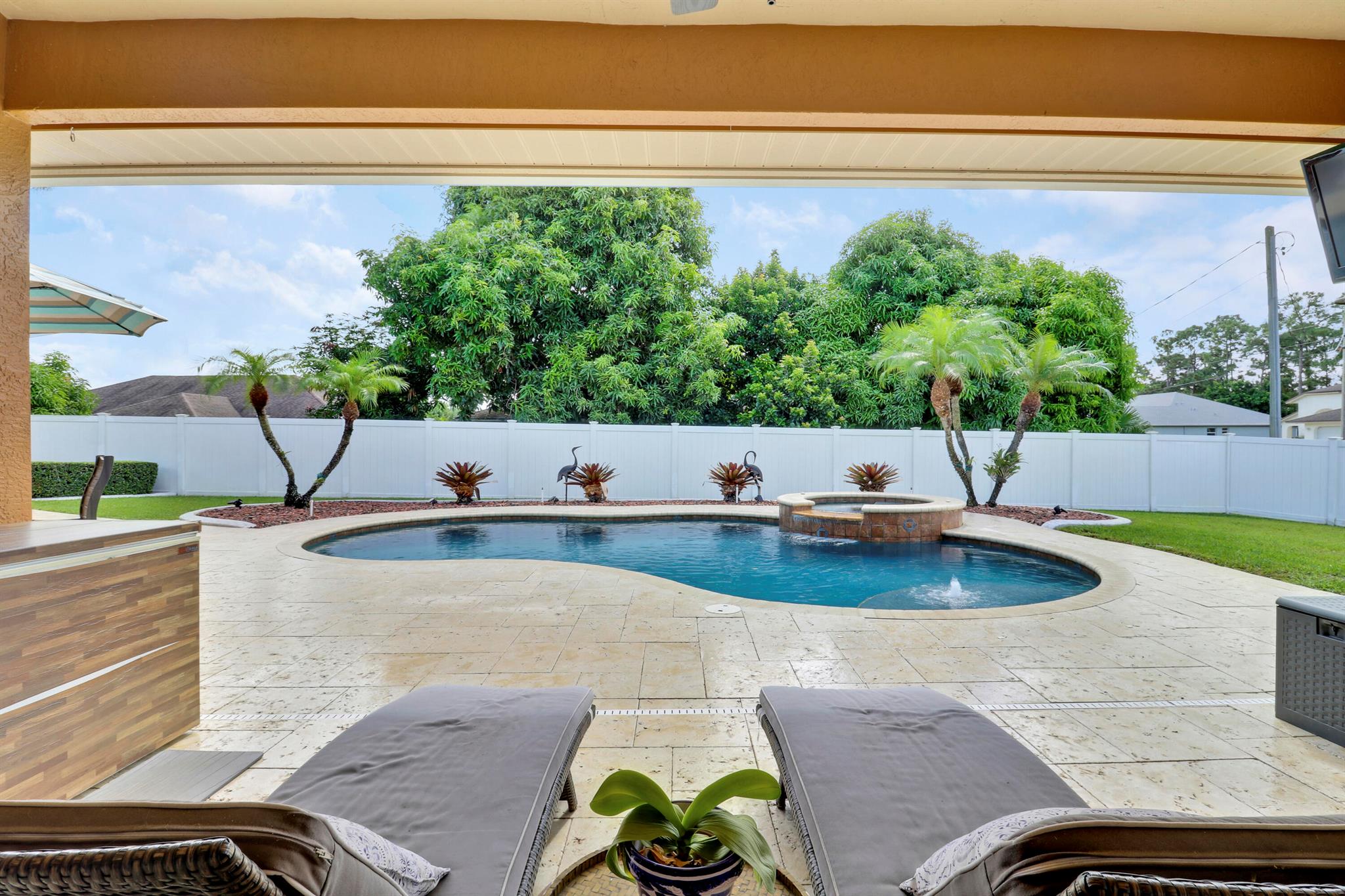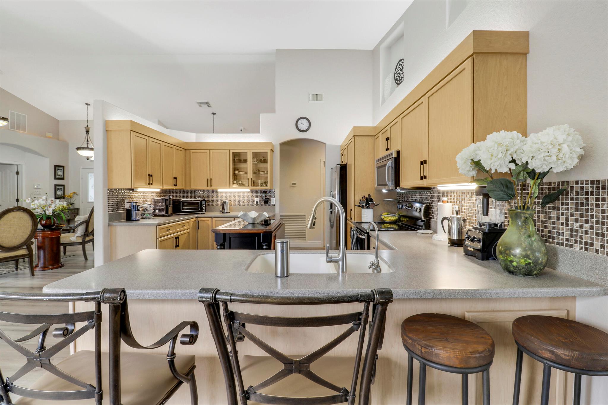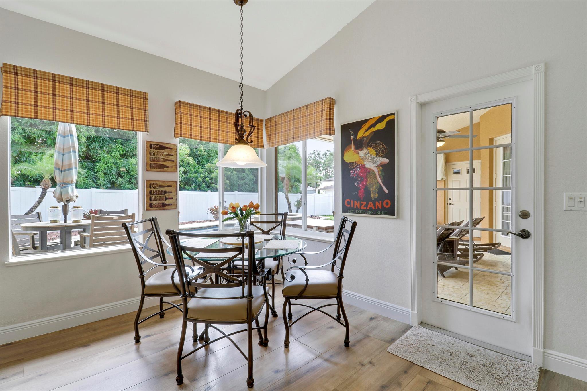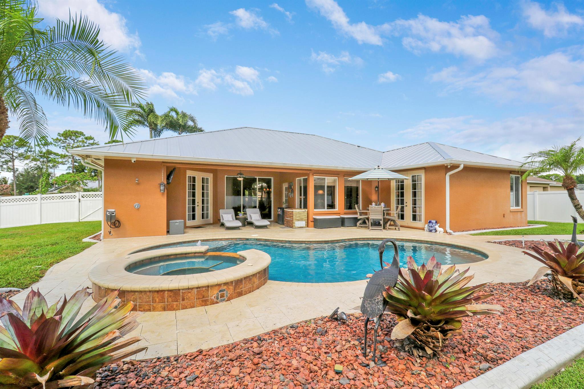 A beautiful home at a great value! Original owner. Split bedrooms, formal dining and an eat in kitchen. Perfect mix of open concept, but not ''too open'' Great sightlines from the kitchen to the family room and the pool with enough room to have a quiet place.Spotless and very well maintained, truly turnkey.Vinyl fence for privacy and keeps the kids and pets in your sight and safe.Newer metal roof, new wood-look tile flooring except 3rd bedroom, plenty of tile in the garage to do it, or keep the new high traffic carpet. Primary has dual sinks and vanities, whole house water filtration, full storm protection, generator hook up, New Smart heat pump WH, built in storage in garage, epoxy flooring in garage and driveway! East of 95 tween Becker and Gatlin. NO HOA. What's not to love?