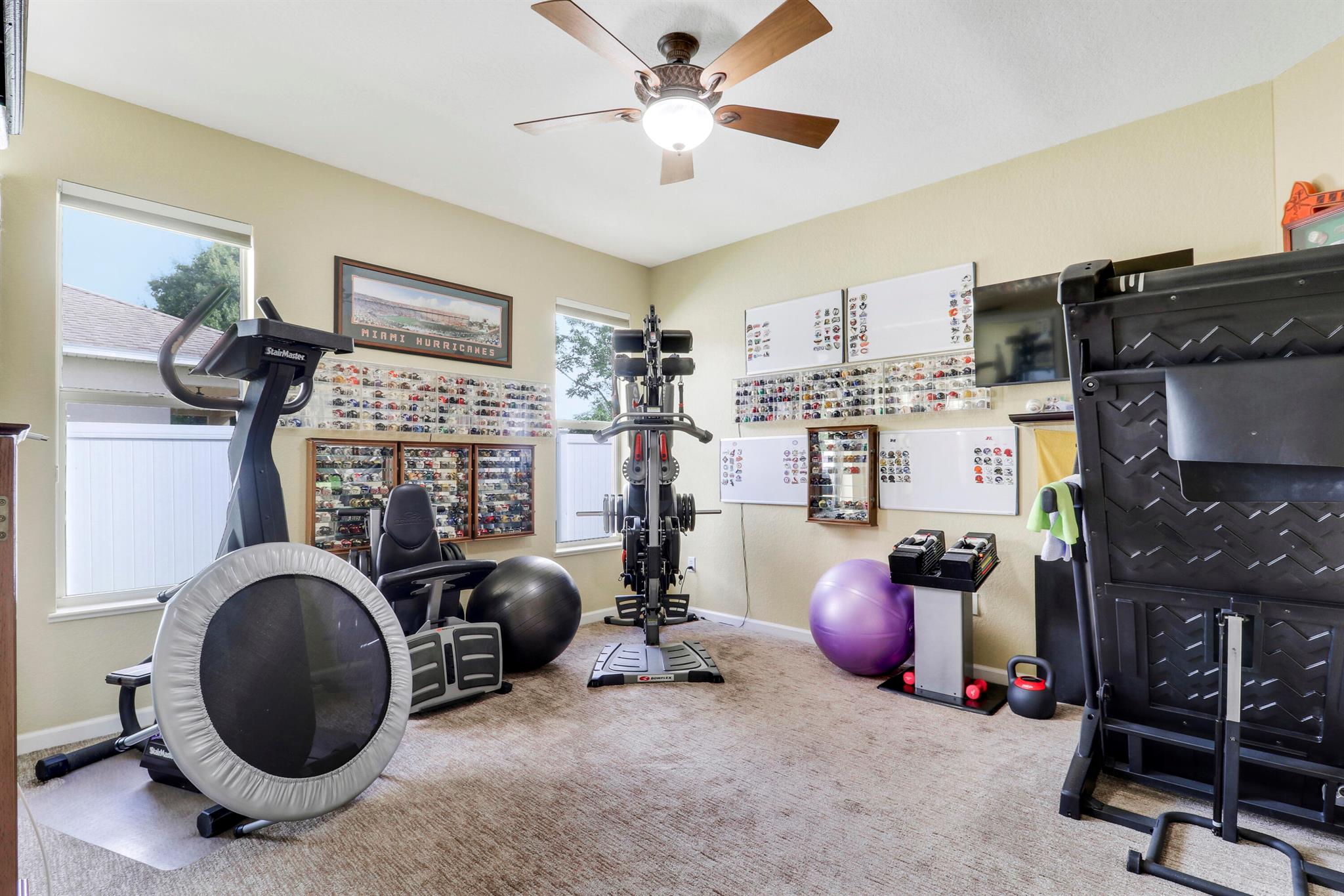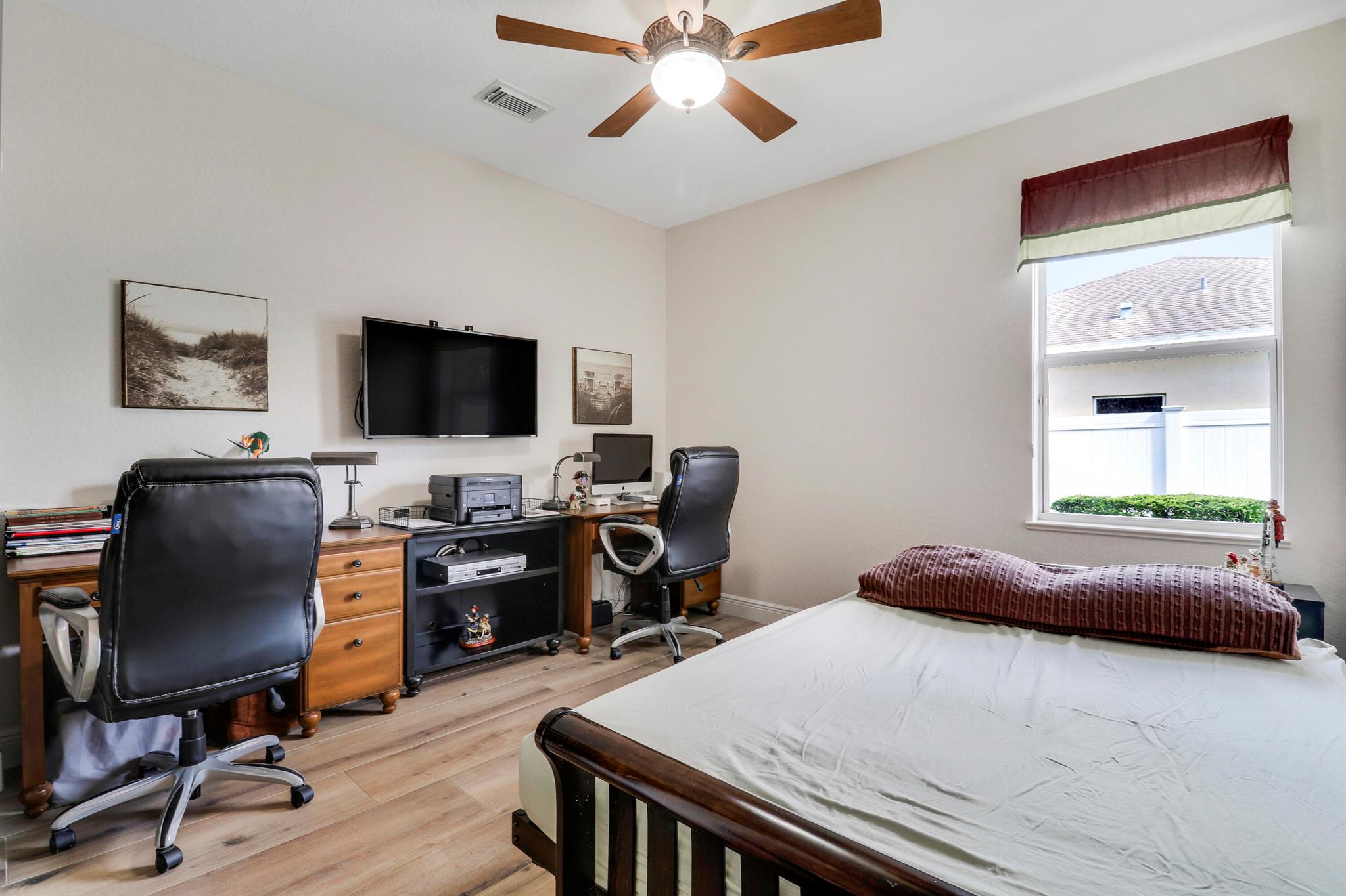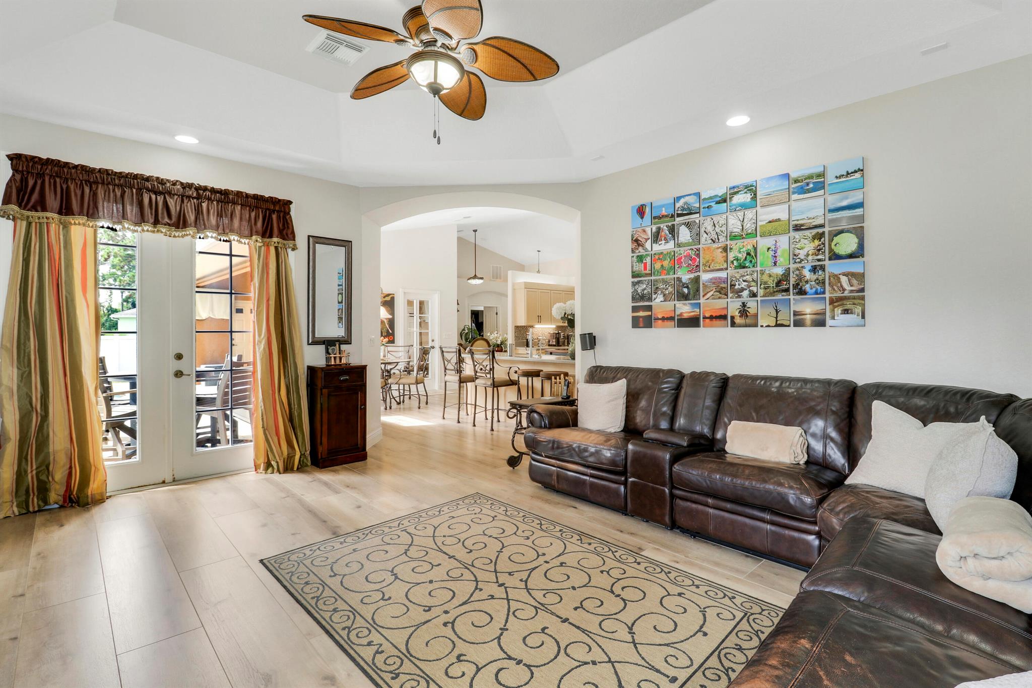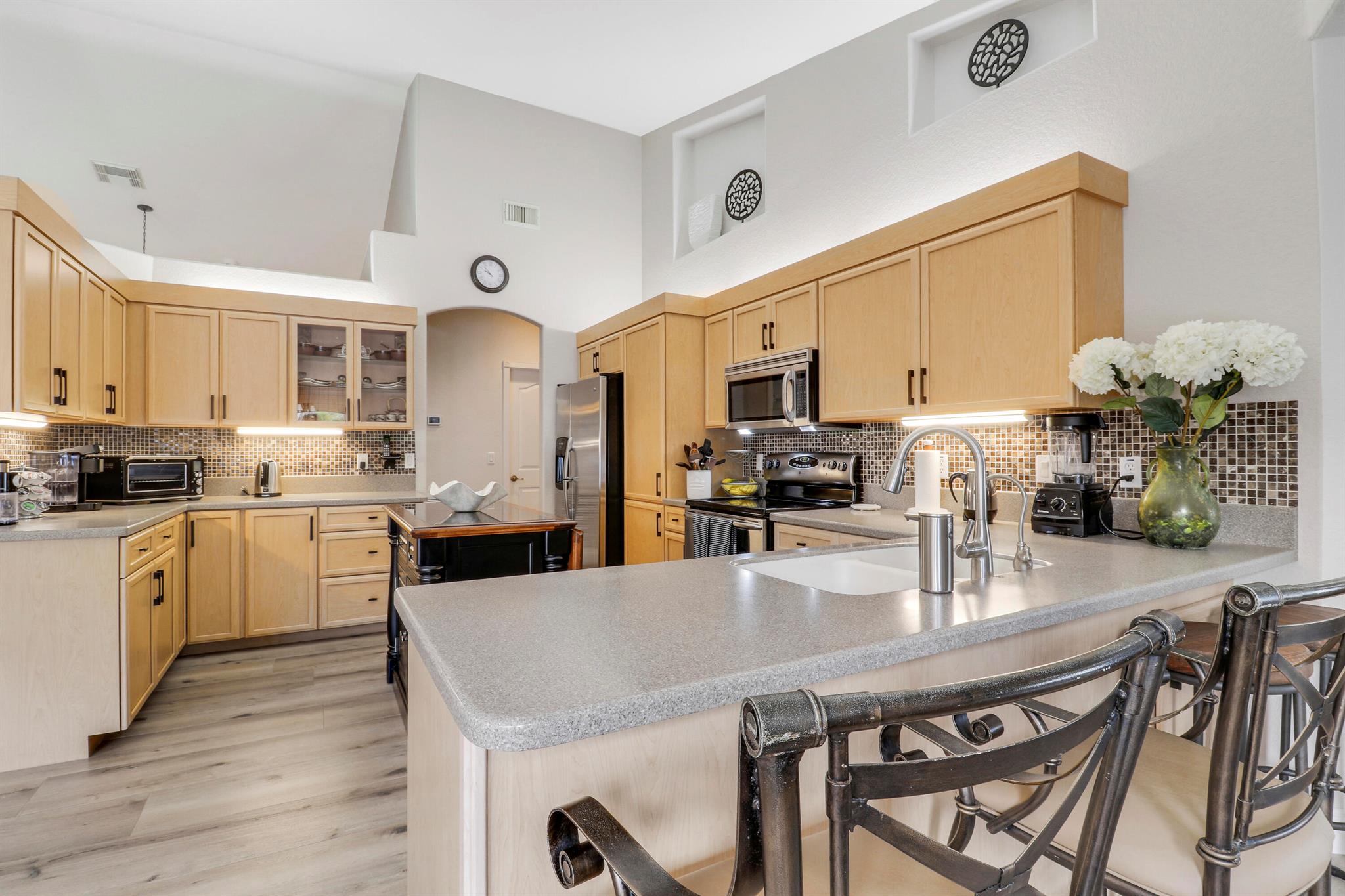 A beautiful home at a great value! Original owner. Split bedrooms, formal dining and an eat in kitchen. Perfect mix of open concept, but not ''too open'' Great sightlines from the kitchen to the family room and the pool with enough room to have a quiet place.Spotless and very well maintained, truly turnkey.Vinyl fence for privacy and keeps the kids and pets in your sight and safe.Newer metal roof, new wood-look tile flooring except 3rd bedroom, plenty of tile in the garage to do it, or keep the new high traffic carpet. Primary has dual sinks and vanities, whole house water filtration, full storm protection, generator hook up, New Smart heat pump WH, built in storage in garage, epoxy flooring in garage and driveway! East of 95 tween Becker and Gatlin. NO HOA. What's not to love?