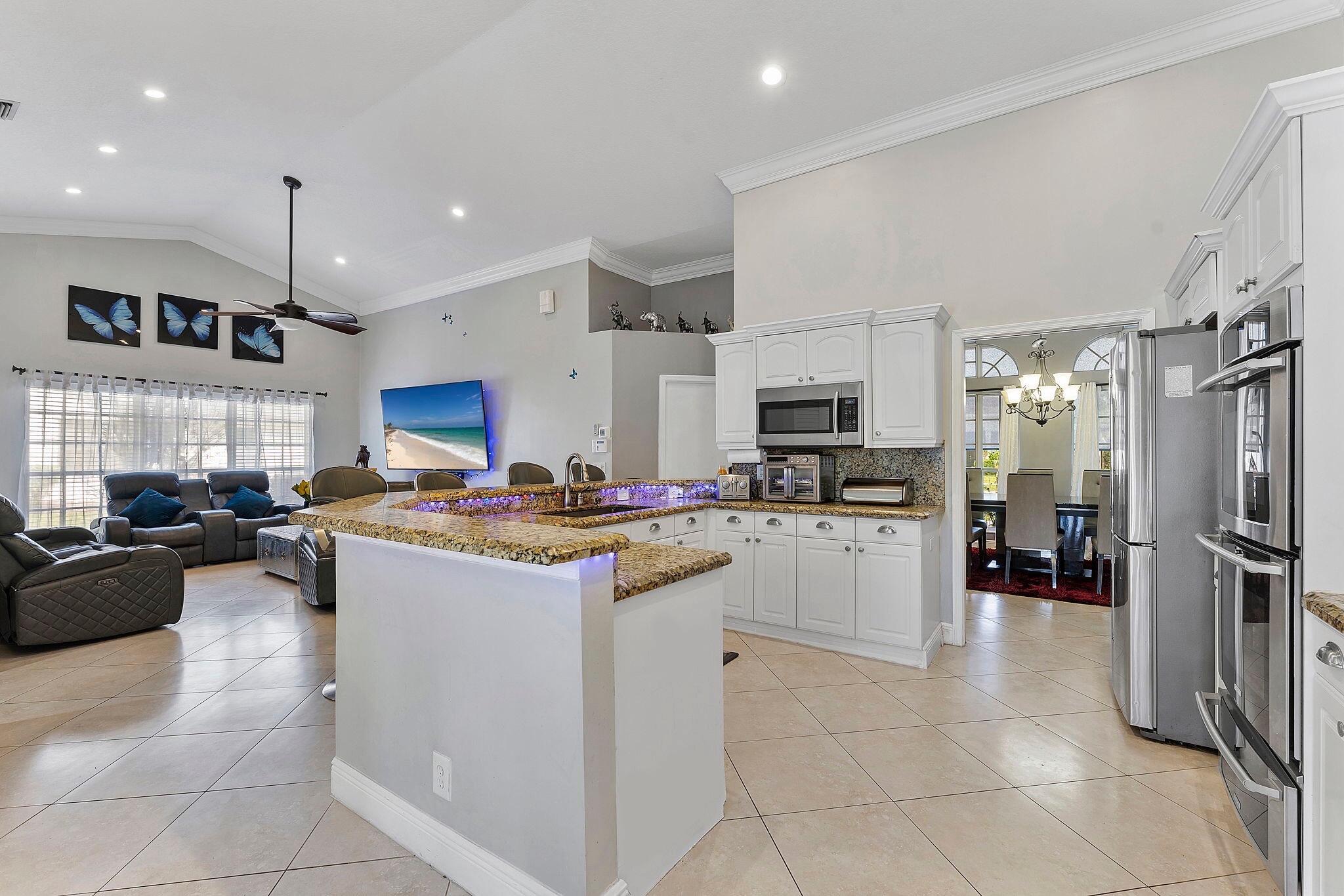 Experience Wellington living at its best in the perfect Location! 4-bedroom, 3-bath corner-lot home in Chatsworth Village. NO HOA, Offering over 2,000 sq ft, 1/4 to 1/2 Acre, soaring ceilings, and oversized bedrooms, this home blends comfort, privacy, and style. The split bedroom layout includes a primary suite, two ensuite bedrooms, plus a versatile bonus room perfect for an office or guest space.Recent improvements include a newer tankless water heater (2024), new washer (2025), new dishwasher (2025), newer AC(with warranty), Xfinity smart security system, central vacuum, modern tile, and wood flooring. The kitchen is equipped with stainless steel appliances, granite countertops, a Summer kitchen, a built-in grill, and a wine cooler. Walking distance to Equestrian Festival,and shops