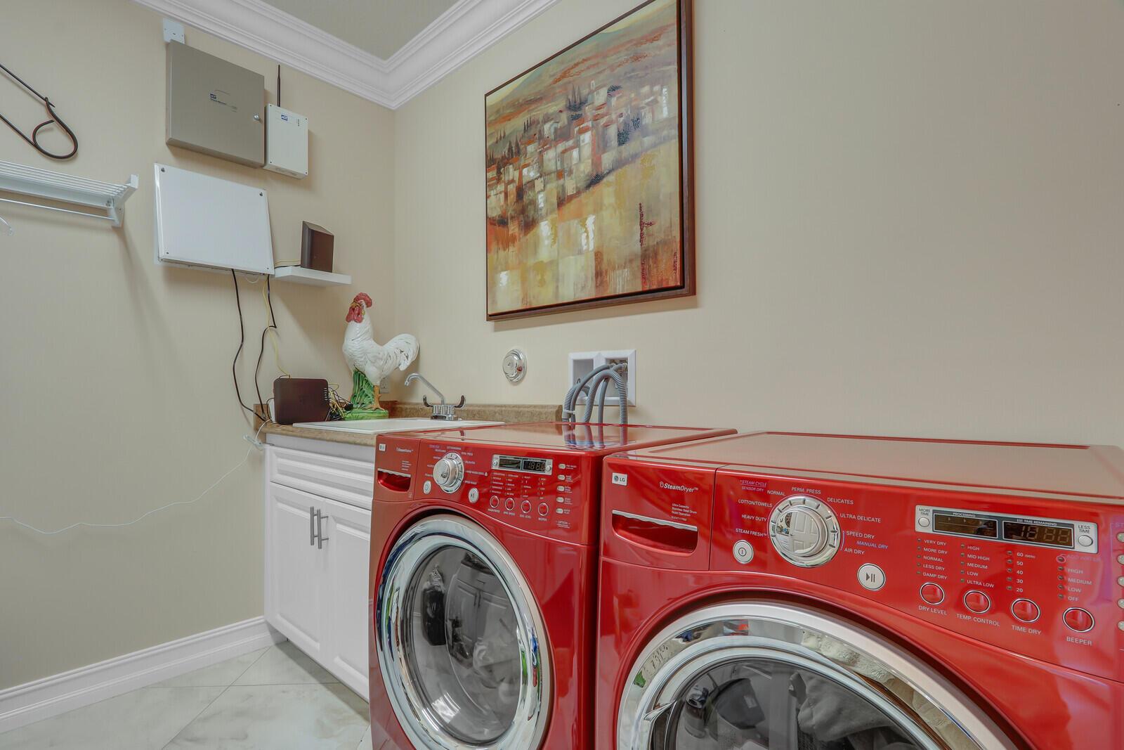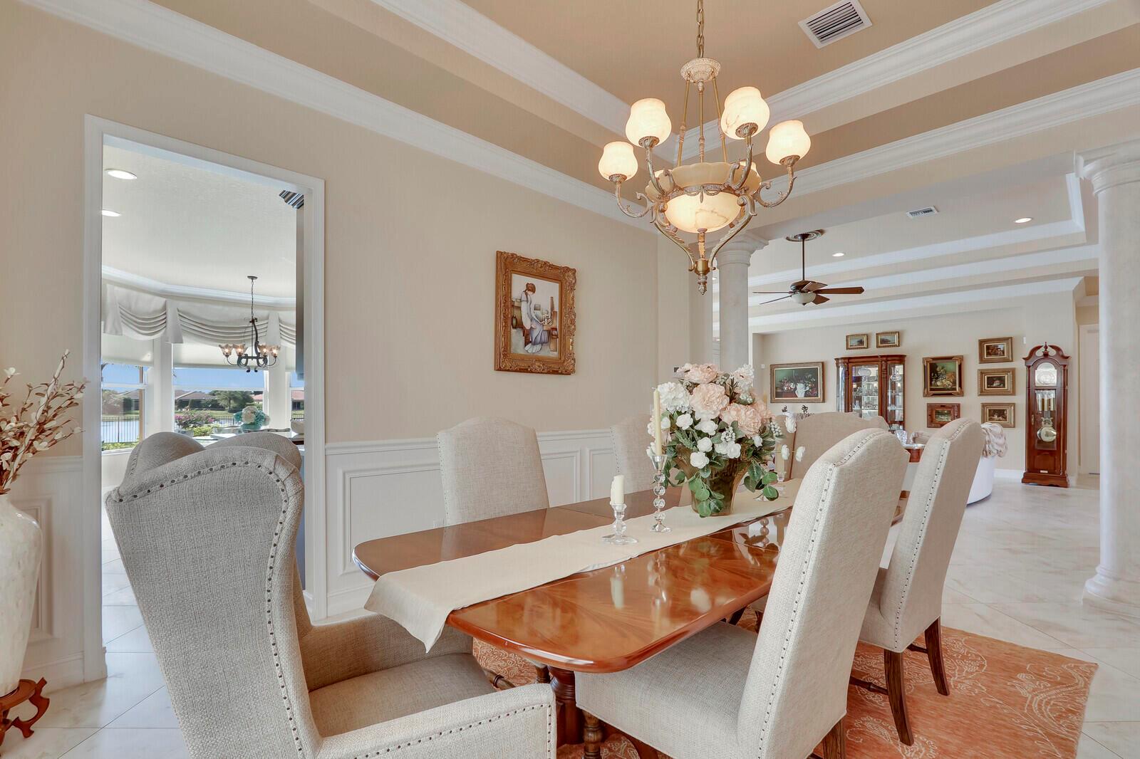 Privacy! Privacy! Privacy! Nestled in The Preserve at Bay Hill Estates, a uniquely private subdivision with a manned gatehouse, this elegant 3BR, 3.5 Baths, is situated on a fully fenced 1/2 acre water view lot. Featuring a large circular driveway with lush exterior landscaping, outside lighting and a split 3 car garage. As you enter the courtyard entrance you encounter frosted double glass doors leading into a grand foyer with 20' vaulted ceilings. Outside is a 15x30 foot heated salt water pool with spa. Kitchen cabinets are upgraded with soft close doors and featured overhead and undermount lighting. All original appliances have been replaced and upgraded. The primary bedroom has very generous his and her closets. Primary bathroom includes a car wash shower. Large 20x20 clubroom.