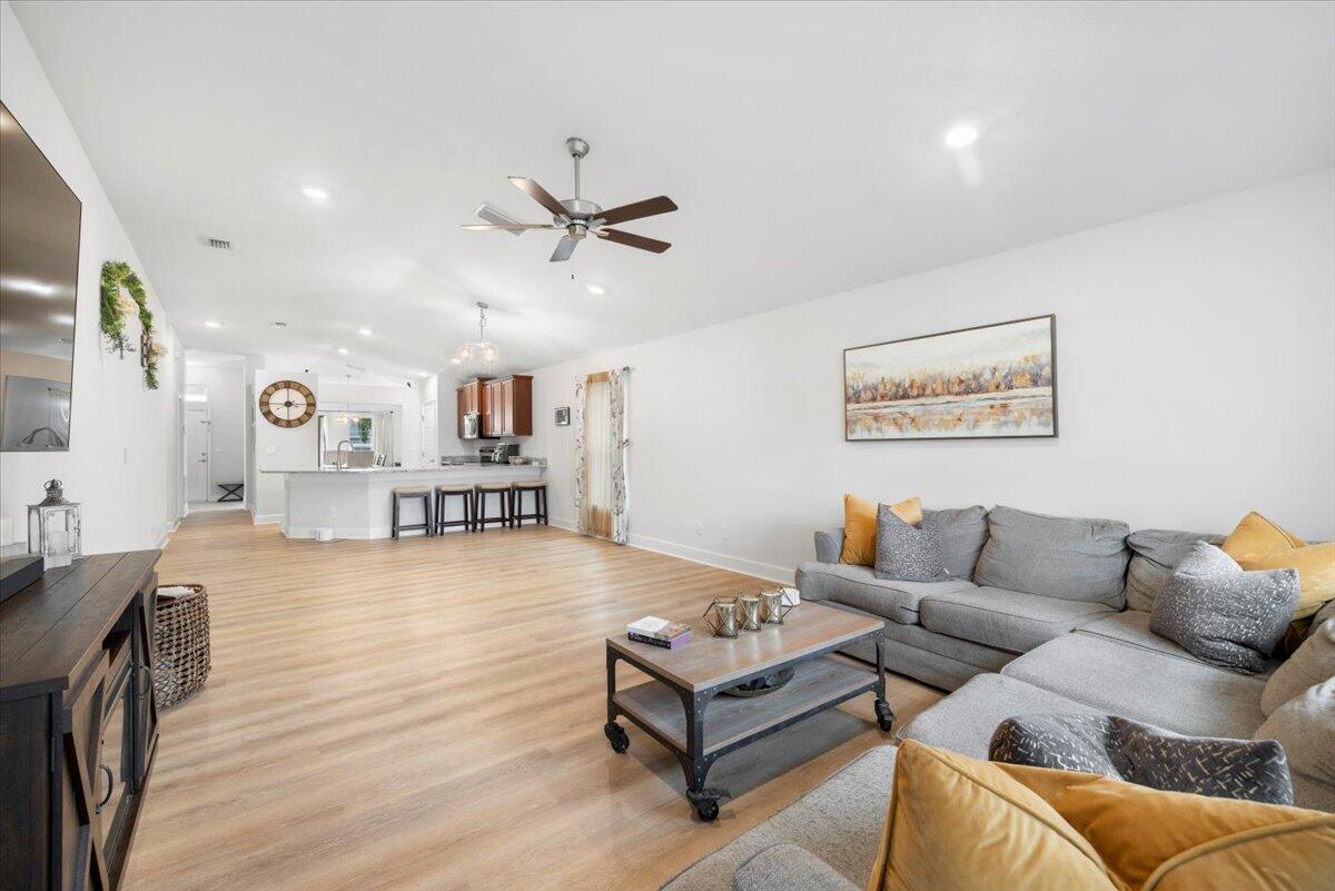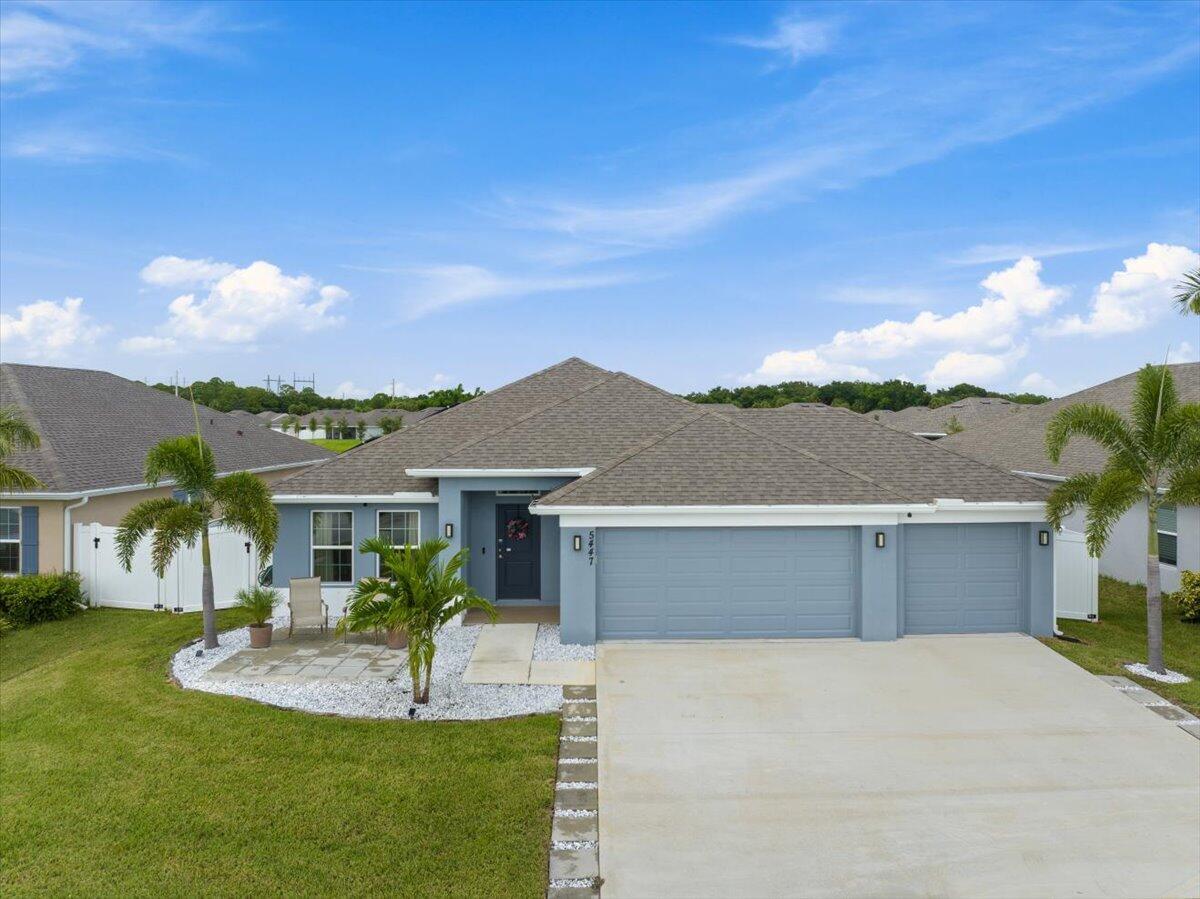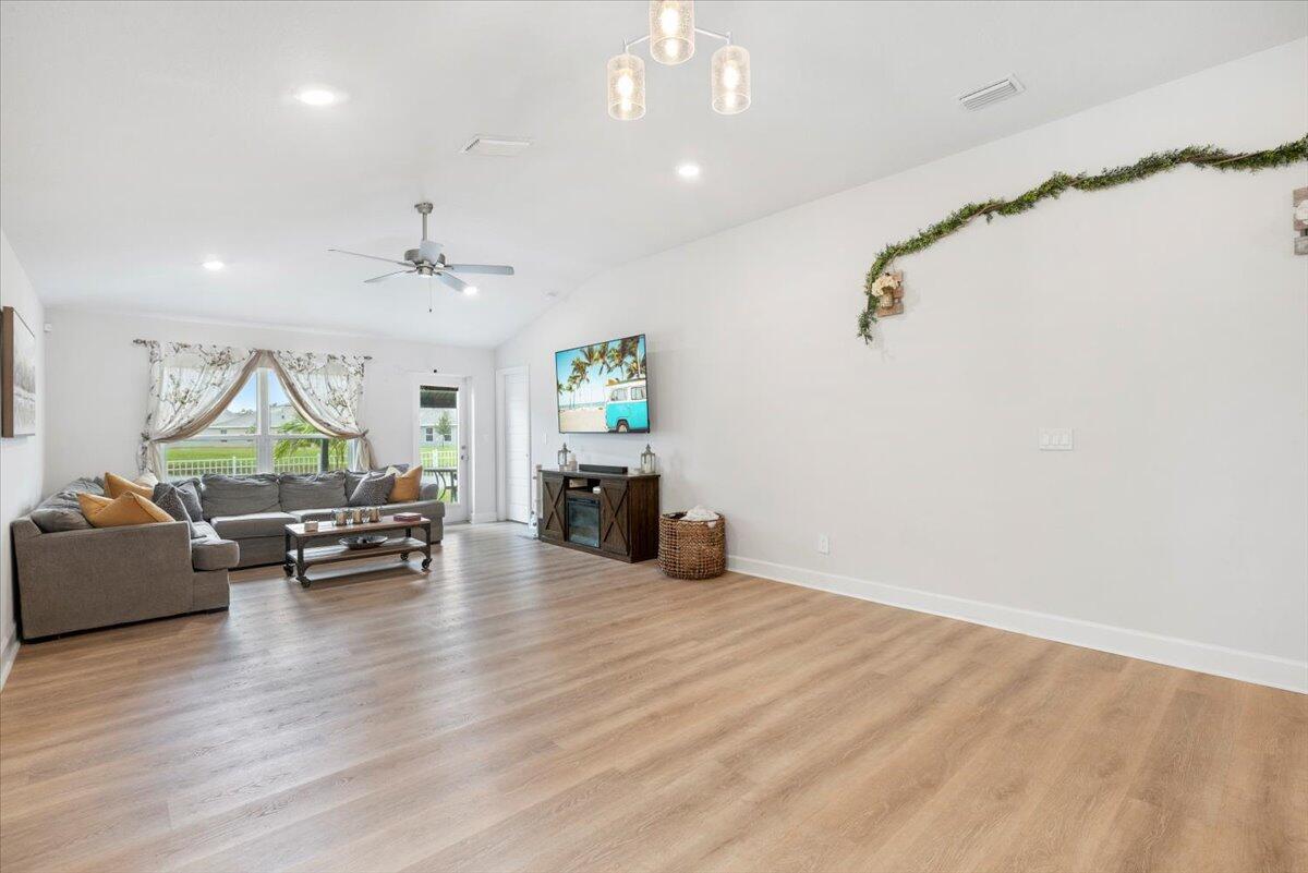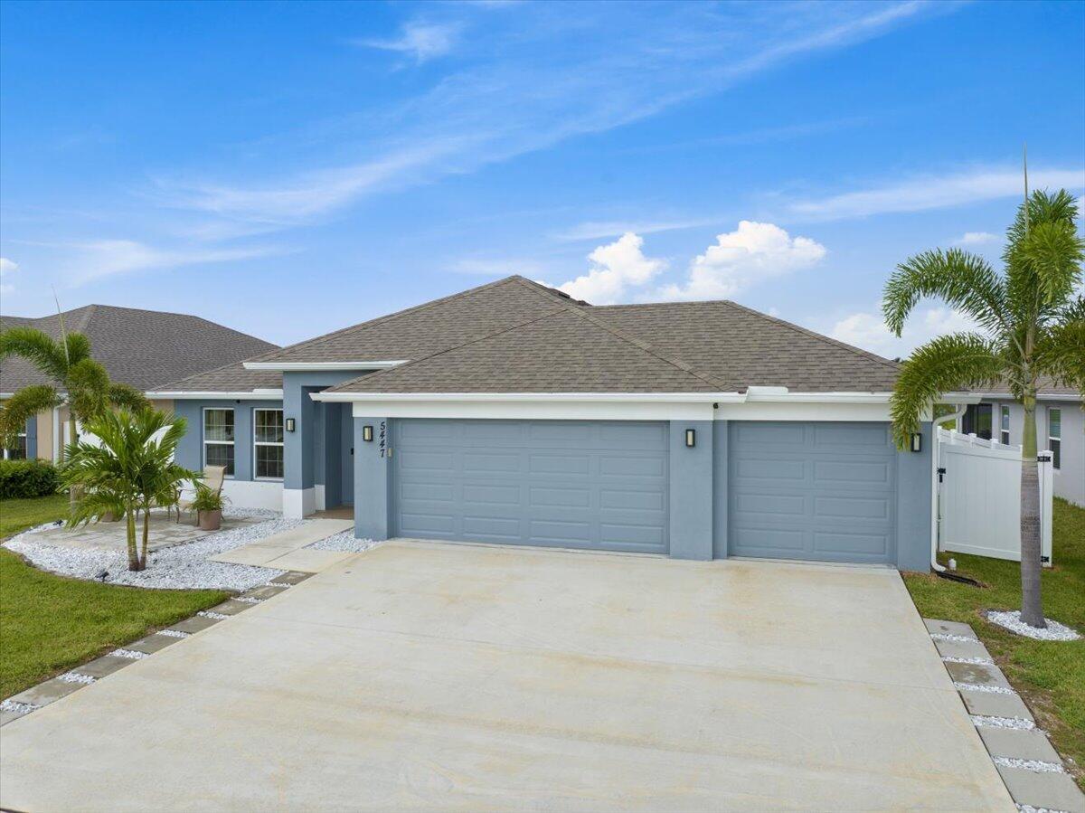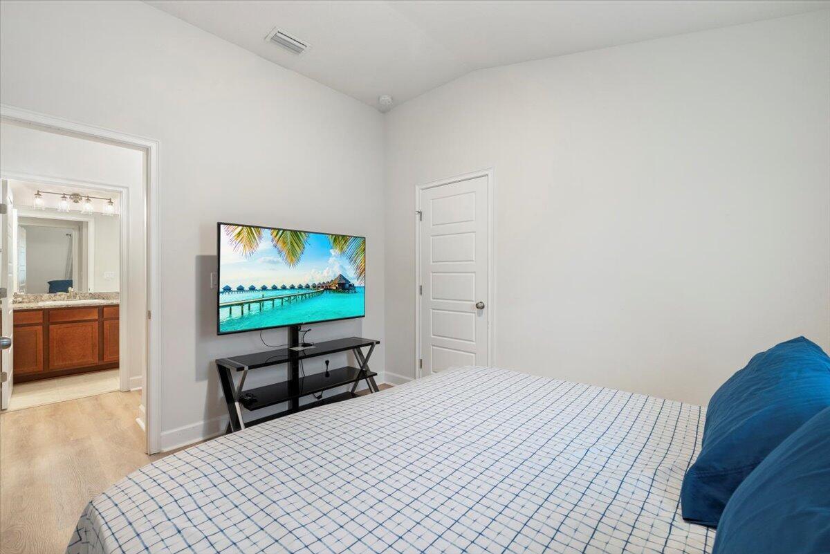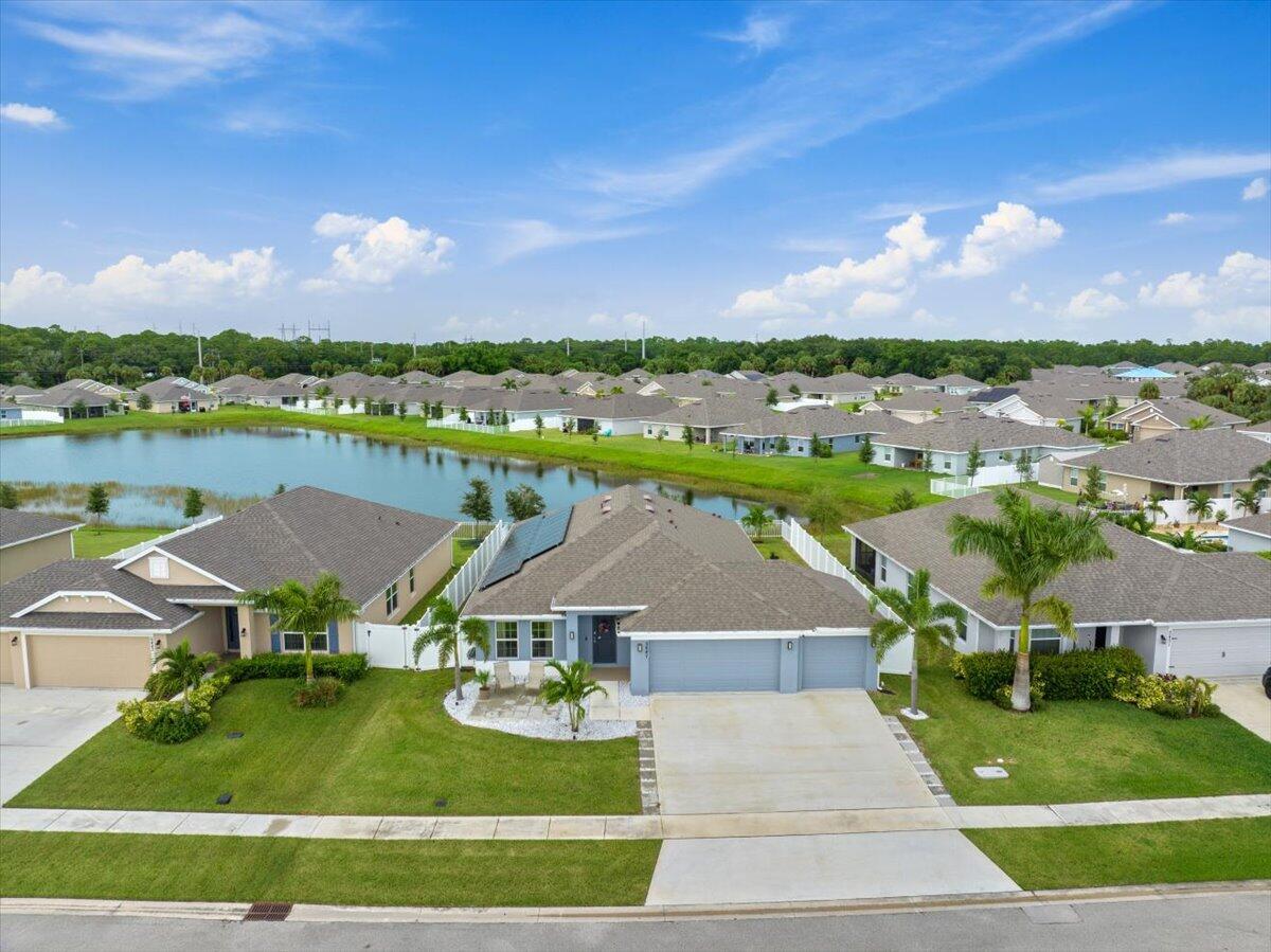 Welcome to Waterstone--a vibrant community where modern convenience meets serene waterfront living. This stunning 4-bedroom, 2-bathroom home with a massive 620sqft 3-car garage, built by Adams Homes in 2021, sits on a premium lot offering peaceful water views and thoughtful upgrades throughout. Step inside to an open floor plan adorned with LifeProof Dusk Cherry vinyl plank flooring and a gourmet kitchen featuring a peninsula-style granite countertop, ideal for casual dining or entertaining. The home's upgrades blend style and function--a hybrid heat-pump water heater (2022) for energy efficiency, solar panels by Windmar Solar financed through Sunnova, and a smart home system complete with Alexa-compatible switches, thermostat, and Blink outdoor cameras for peace of mind.