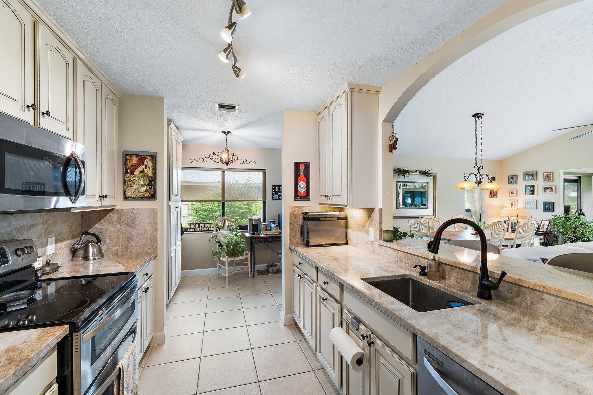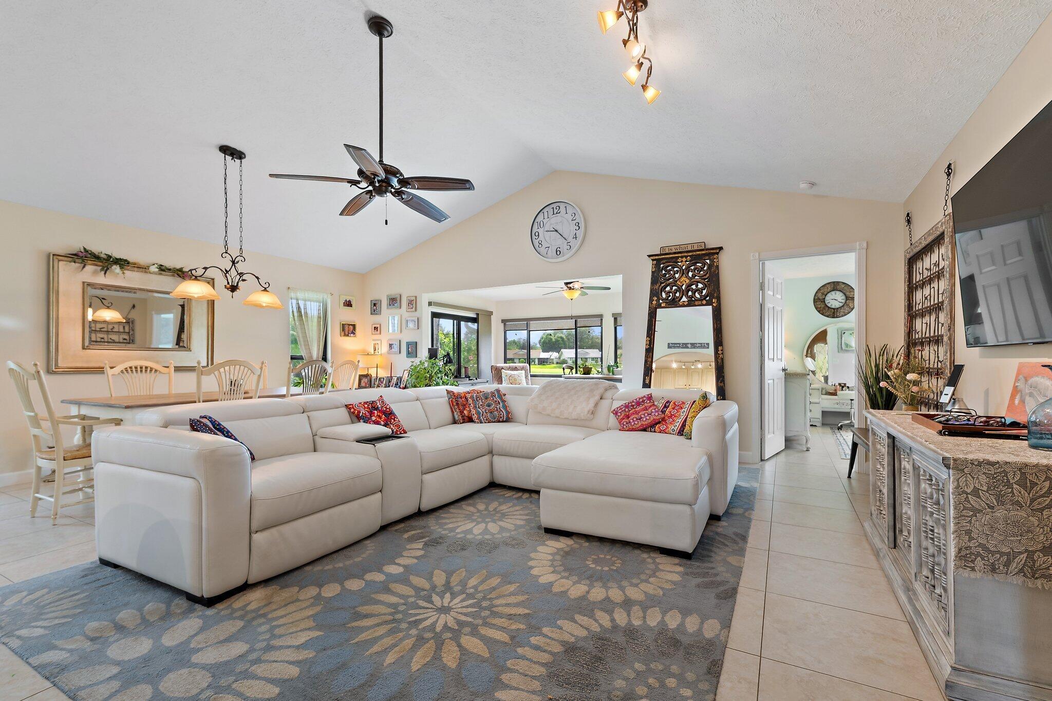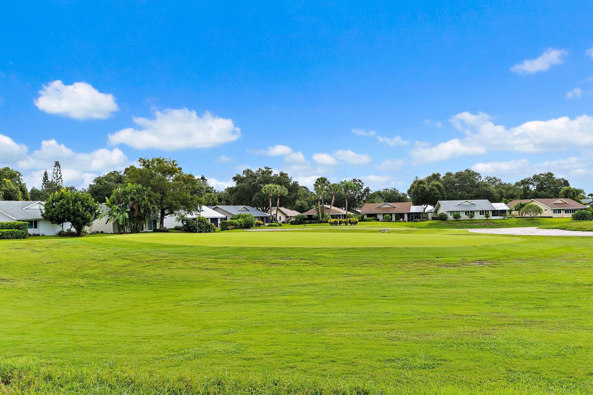 This charming home sits pretty on an oversized lot with stunning views of the executive golf course. The impact windows frame those fairway vistas perfectly while keeping things safe and sound. What makes this place special? Well, you're buying into the Eaglewood Golf and Tennis Community where the living is easy and the amenities are endless. Your monthly fees cover unlimited golf (yes, you read that right), tennis, bocce, pickleball, a heated pool with hot tub, and a newly renovated clubhouse perfect for cards or just hanging out. There's even a putting green, library, workshop, and dog park for your furry friends. The beach is just minutes away when you need that ocean fix, and great restaurants are nearby too. This home is move-in ready and sold as-is in excellent condition.