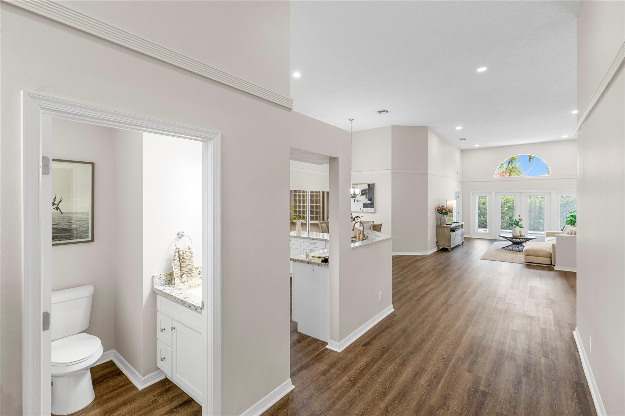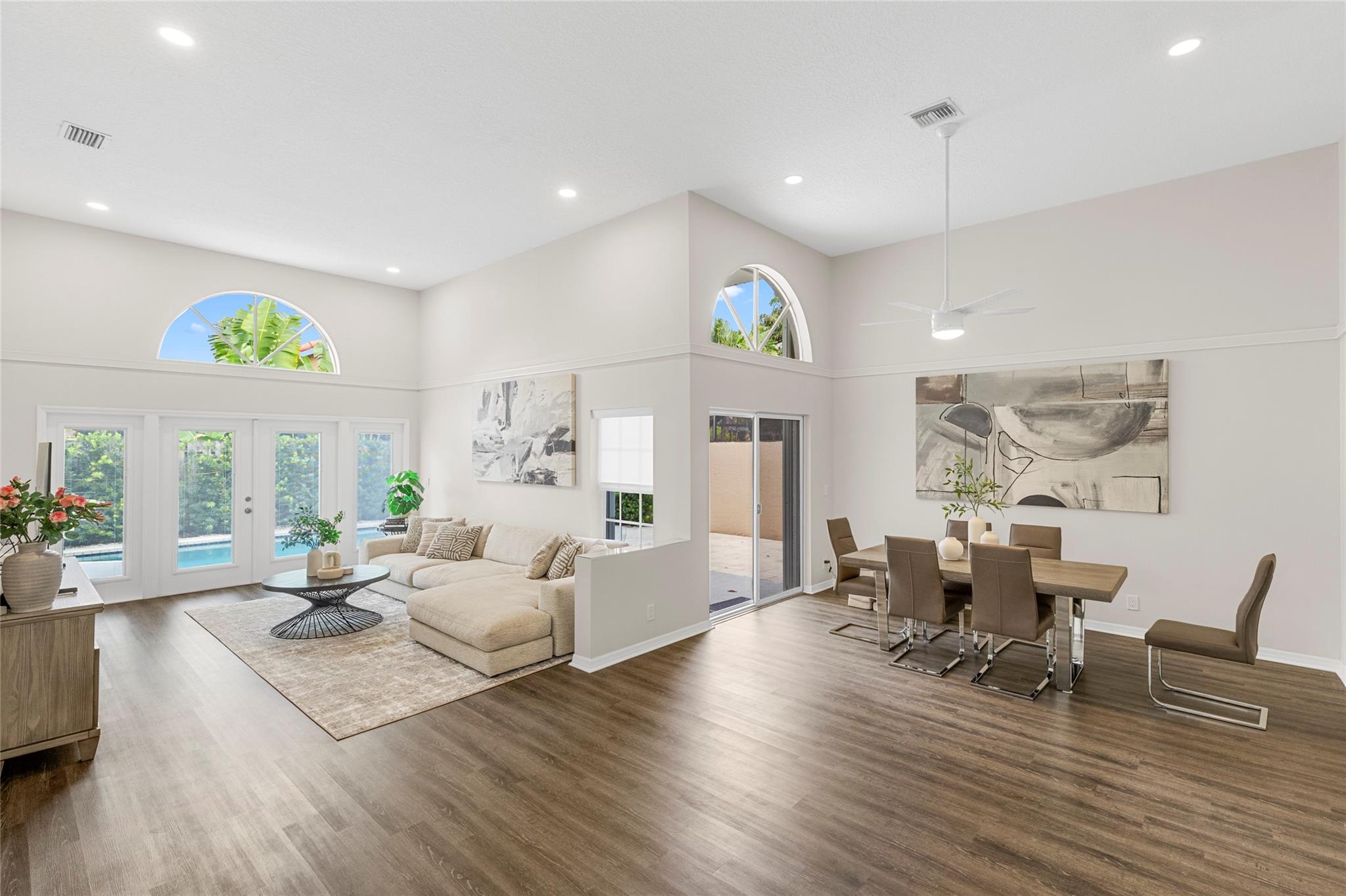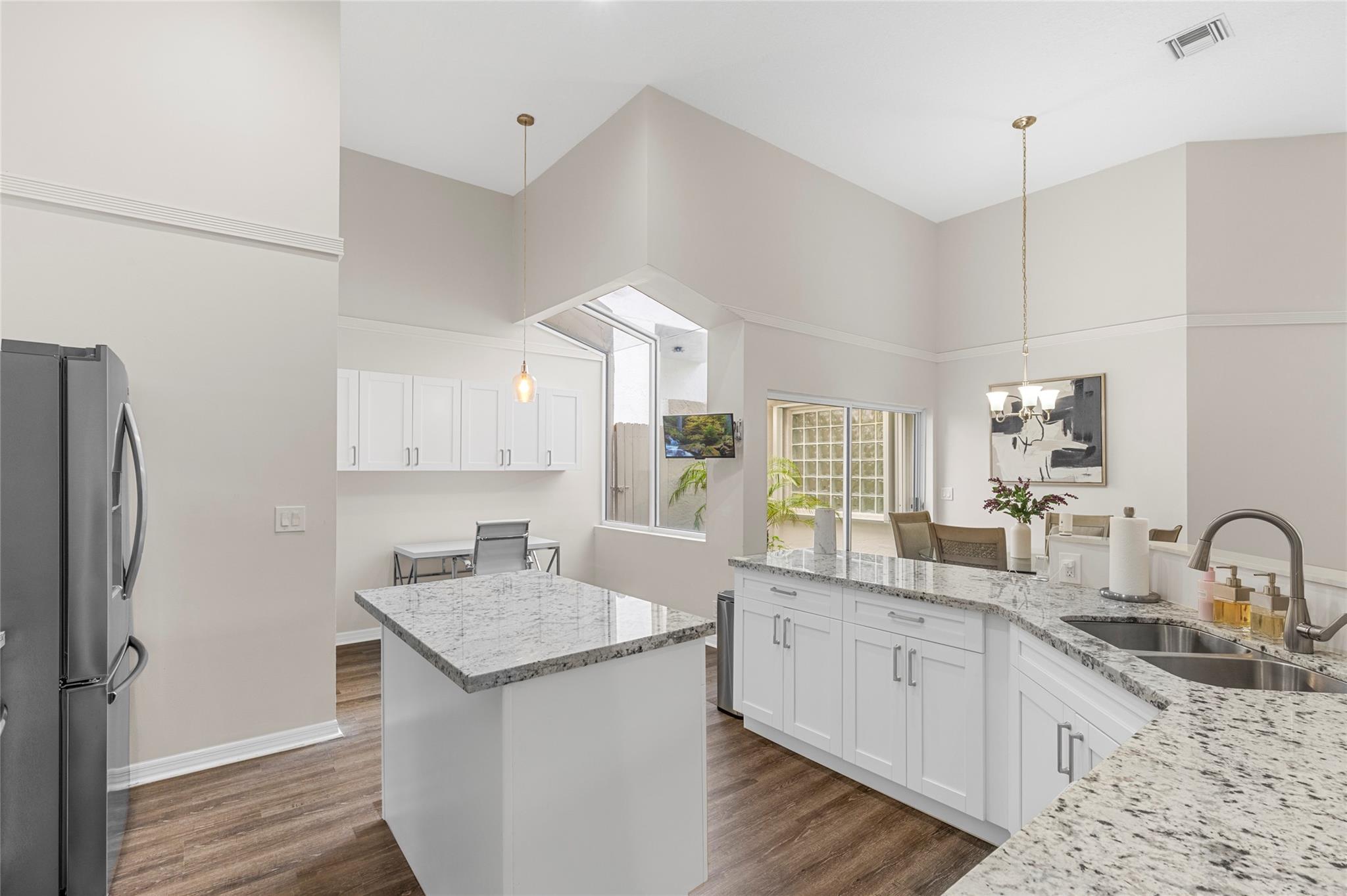 You’ll love this professionally renovated home in Ventura of Mission Bay. Enjoy preparing meals in the all new open air kitchen with granite countertops and tile backsplash stainless steel appliances and beautiful white shaker cabinetry. Discovered a bright interior with fresh paint new flooring. The primary suite offers dual walk in closets in suite bathroom with beautiful, soaking tub and separate shower. Guest bathrooms are all updated as well Guest bedrooms offer large closets and ceiling fans. Backyard offers, sparkling private pool, mature landscaping and ez to secure hurricane shutters. Low Maintenance fee includes gated community lawn care, access to Mission Bay clubhouse, which offers, large pool, private event rooms and gym membership.