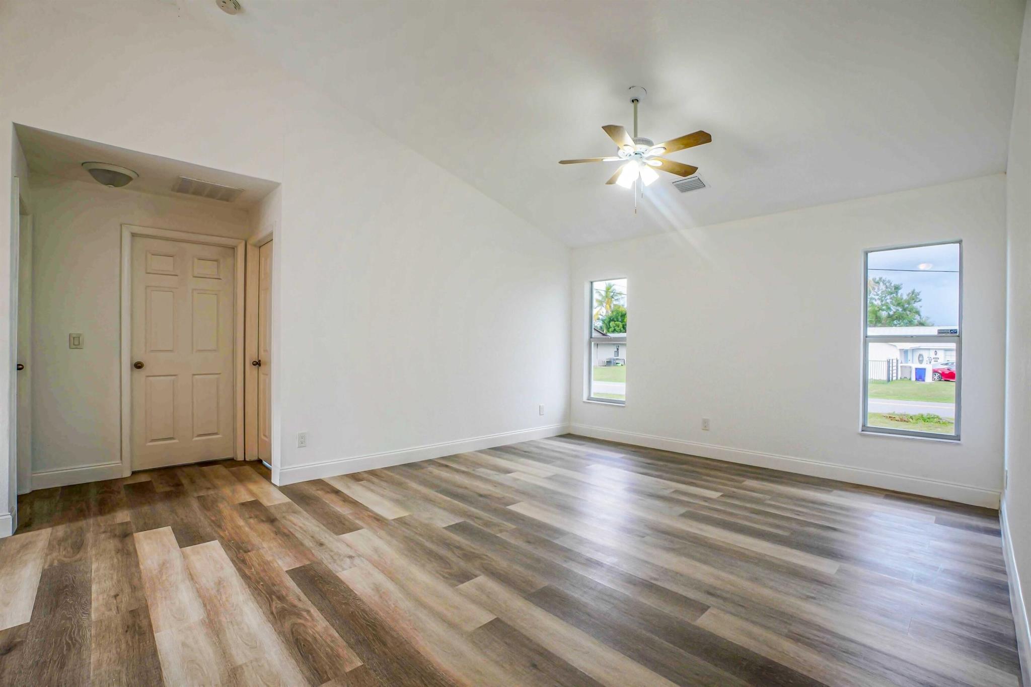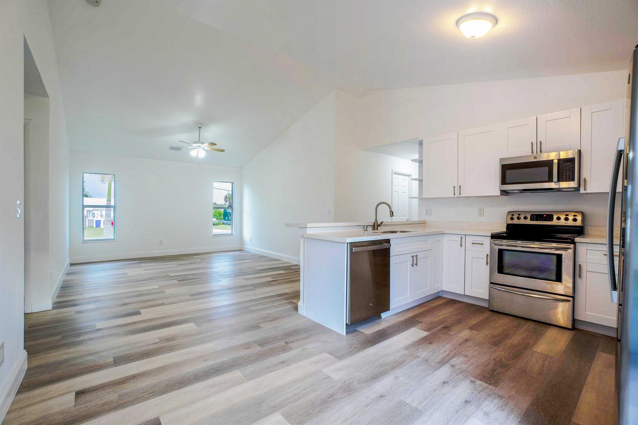 Fully Renovated 3-Bed/2-Bath - No HOA!Move-in ready home on a spacious corner lot with room for a pool. Built in 2006, featuring concrete block construction, metal roof, new hurricane windows, fresh paint, vinyl wood floors, and open layout with vaulted ceilings. Kitchen boasts new stainless appliances and breakfast bar. Split floor plan with private primary suite, walk-in closet, and updated bath. Includes 2-car garage, new AC, water heater, washer/dryer. Minutes to shopping, dining, golf, downtown, and Hutchinson Island beaches.