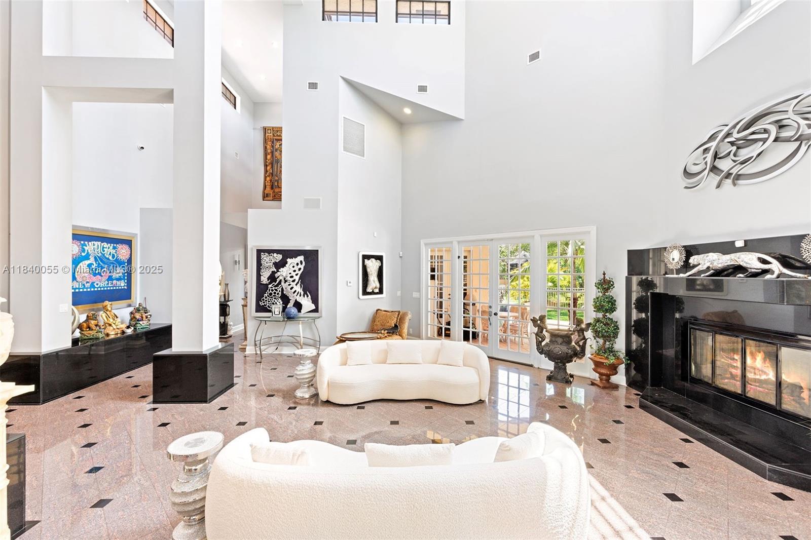 ROOF WILL BE BRAND NEW. Experience one of Eagle Trace’s finest estates! Nearly an acre with 8,000+ sq. ft., 6 bedrooms, 9 baths, and 3-car garage. Soaring 30-ft ceilings, marble floors, and natural light set the tone. Resort-style amenities include heated pool, spa, sauna, steam shower, fireplace, and wet bar. A dramatic foyer with sweeping staircase opens to spacious living areas and a chef’s kitchen with granite counters, large island, and Jenn-Air appliances. Upstairs loft is perfect for a game or media room. The grand primary suite offers pool views, custom closets, and a spa bath with Jacuzzi, dual vanities, and bidet. Circular drive and ample parking add convenience. In the exclusive gated golf community of Eagle Trace, this rare home blends luxury, comfort, and privacy.