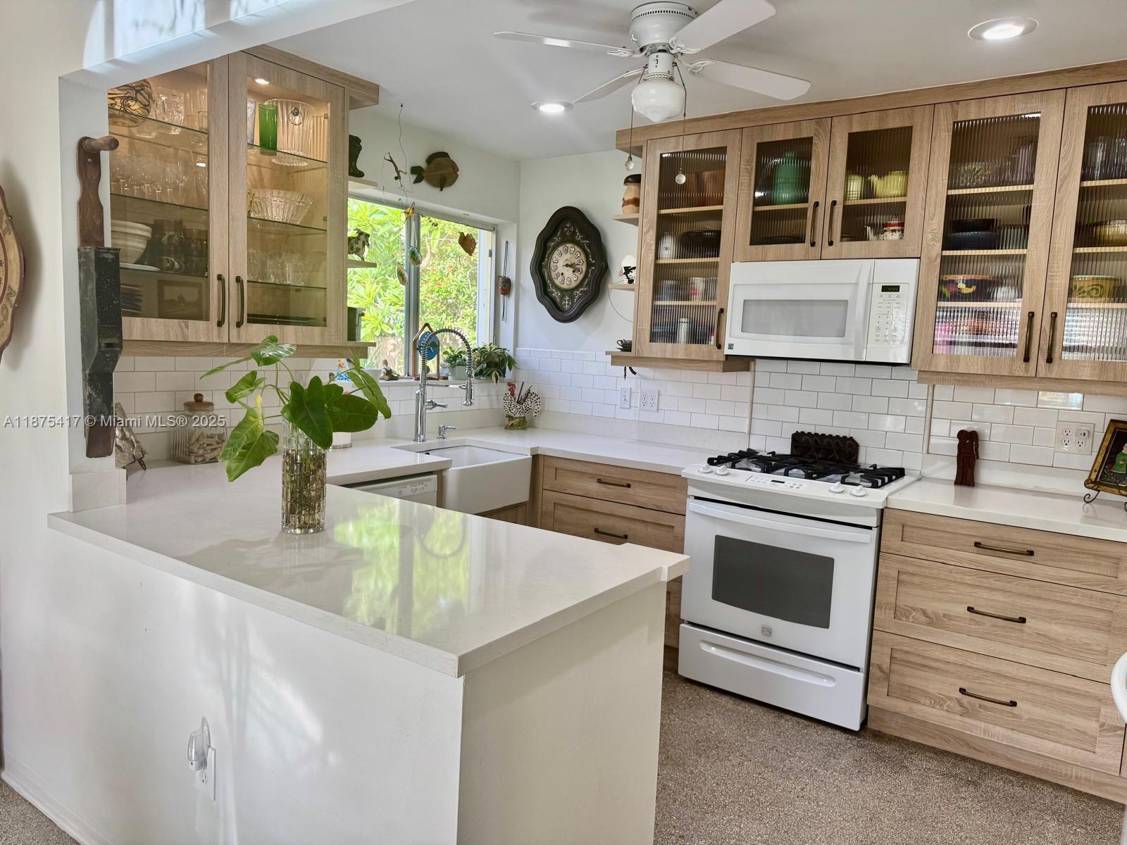 Charming, spacious 2 bed, 1 bath home in a fabulous, historic neighborhood! Inside, find spacious rooms filled with natural light, restored terrazzo flooring, & a bright kitchen featuring wood cabinets, quartz counters, a porcelain farmer’s sink, custom glass-door uppers with lighting, & a gas stove. The dining & family room flow together with beautiful French doors separating the dining & kitchen. The primary bedroom opens directly to the backyard, where a large wood deck & fully fenced yard provide the perfect outdoor retreat with outdoor shower. Recent updates include: new tile roof, brand-new water heater, updated bathroom with subway tile & marble-topped vanity, & a newer A/C. Addtn'l highlights: newer wash/dryer, a storage shed, walk-in pantry, hurricane shutters, & sprinkler system.