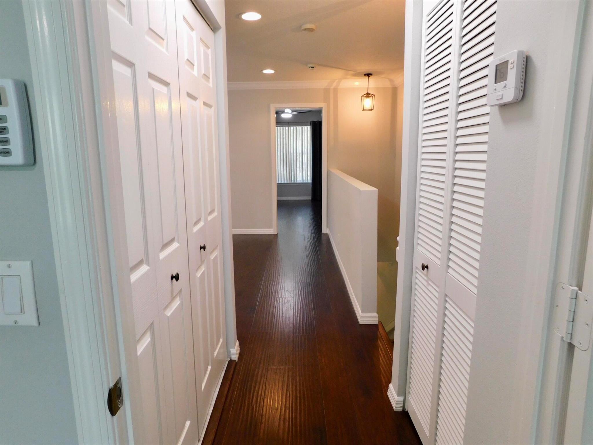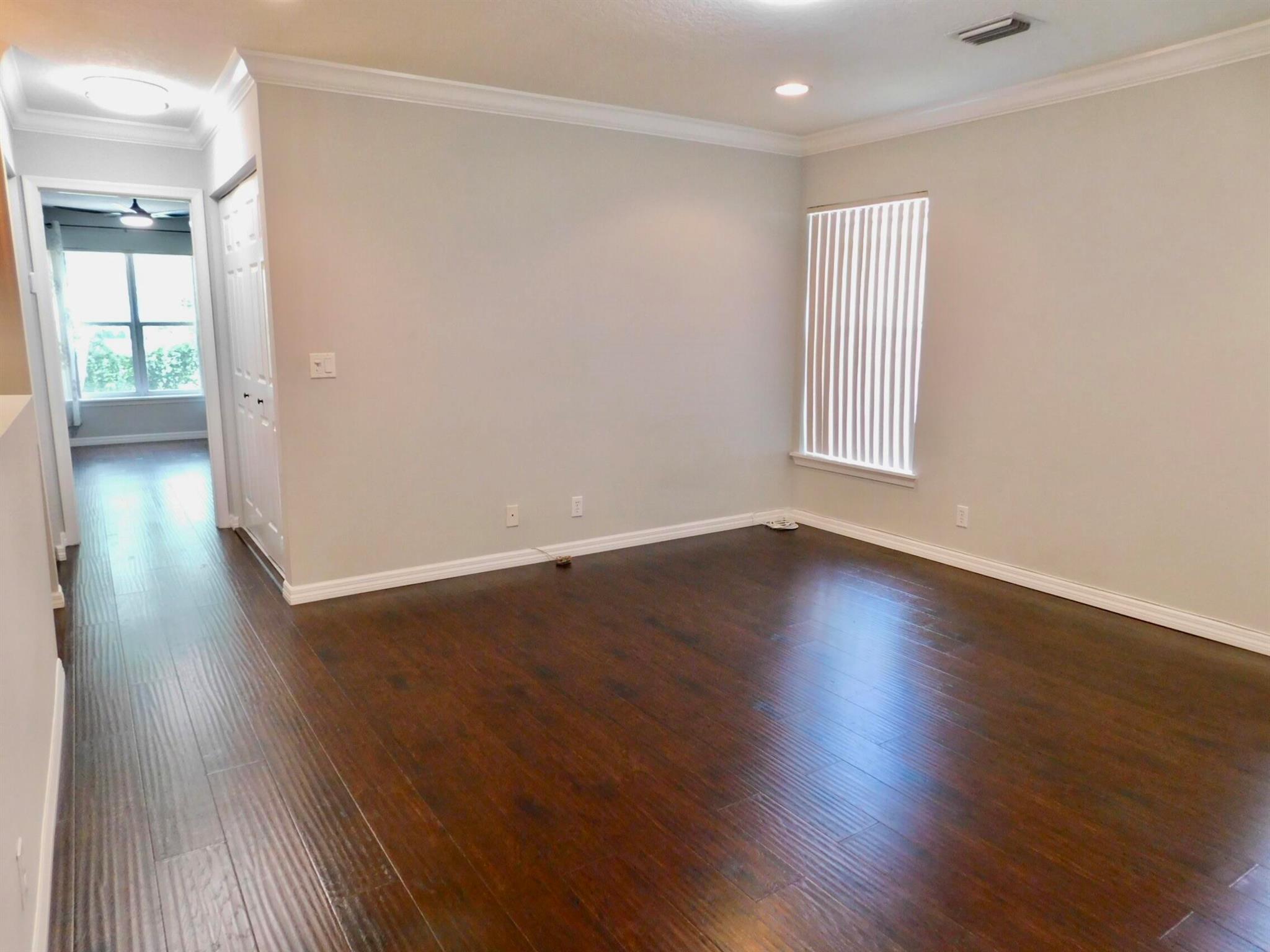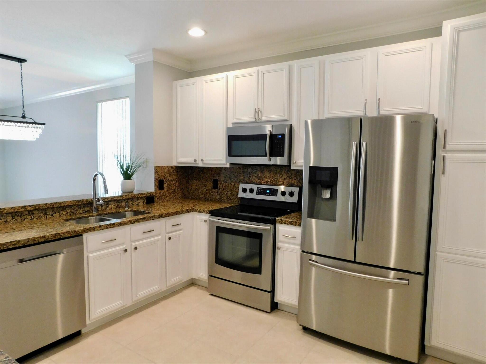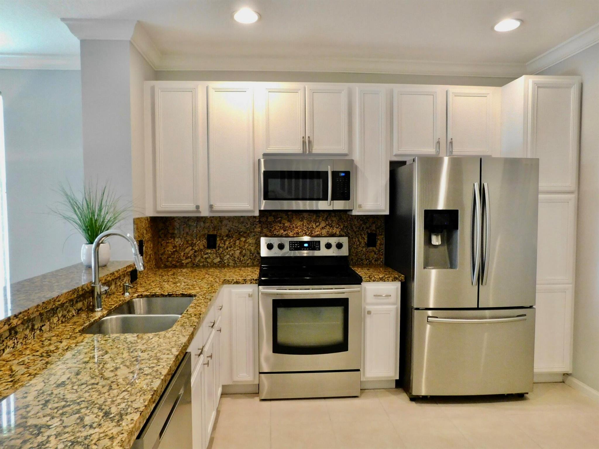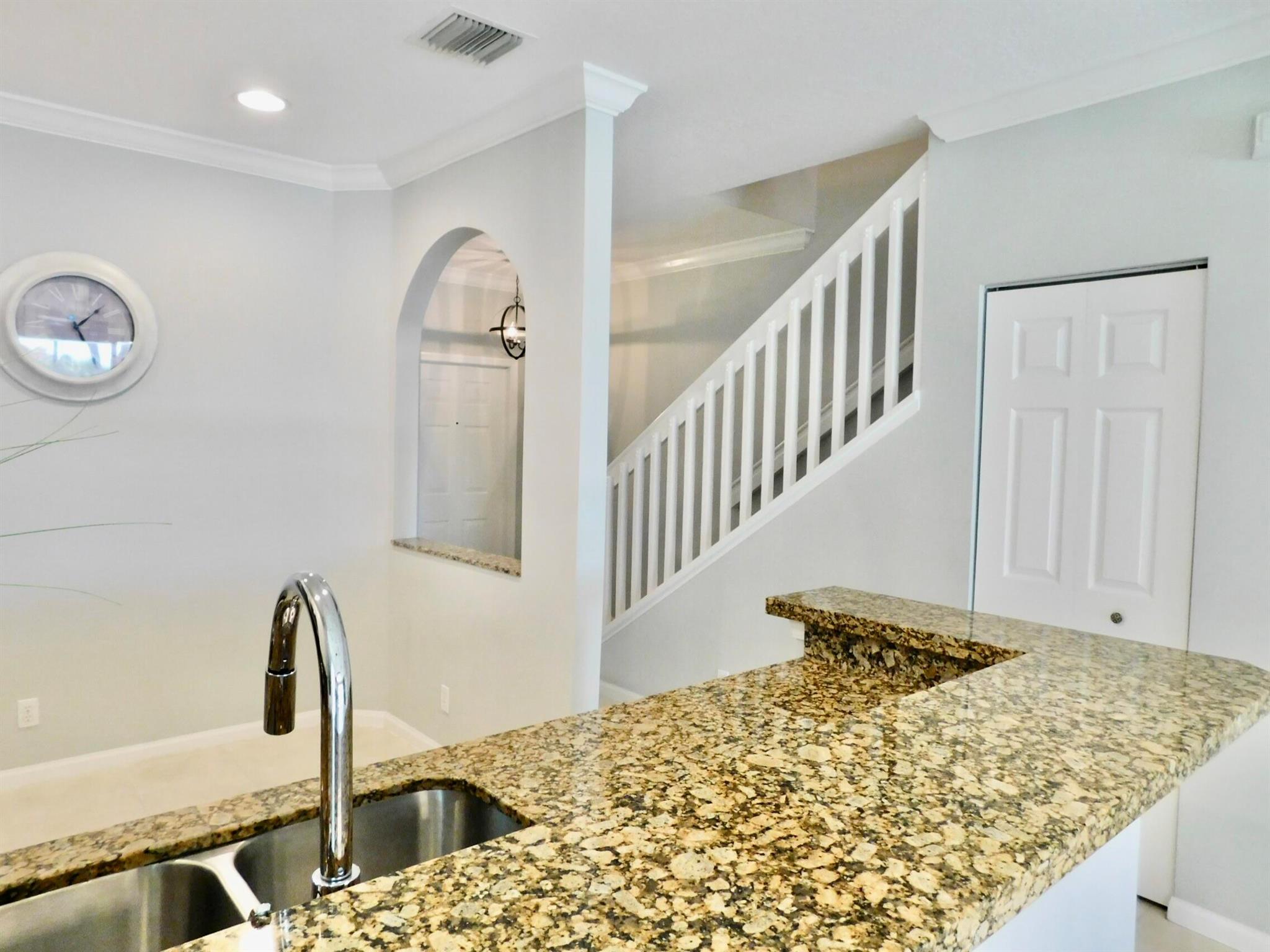 Best location in Verona Lakes! 9653 Porta Leona Ln. is a 2 bed+loft/3rd bedroom, 2.5 bath,1 car garage, sought-after end unit townhome with no rear neighbors.This desirable Siena corner model offers more natural light and more privacy, a larger lot, a cul-de-sac location, and a 2024 roof and driveway! Immaculately maintained with an open-concept floor plan with stainless steel appliances, including a large French-door refrigerator, granite counters and backsplash, white 42'' kitchen cabinetry, crown molding throughout, decorative arches, trendy light fixtures, and many more stylish designer touches. No carpet anywhere-elegant dark wood laminate flooring upstairs and tile downstairs, as well as accordion hurricane shutters on every window for safety and convenience. Upstairs you will find