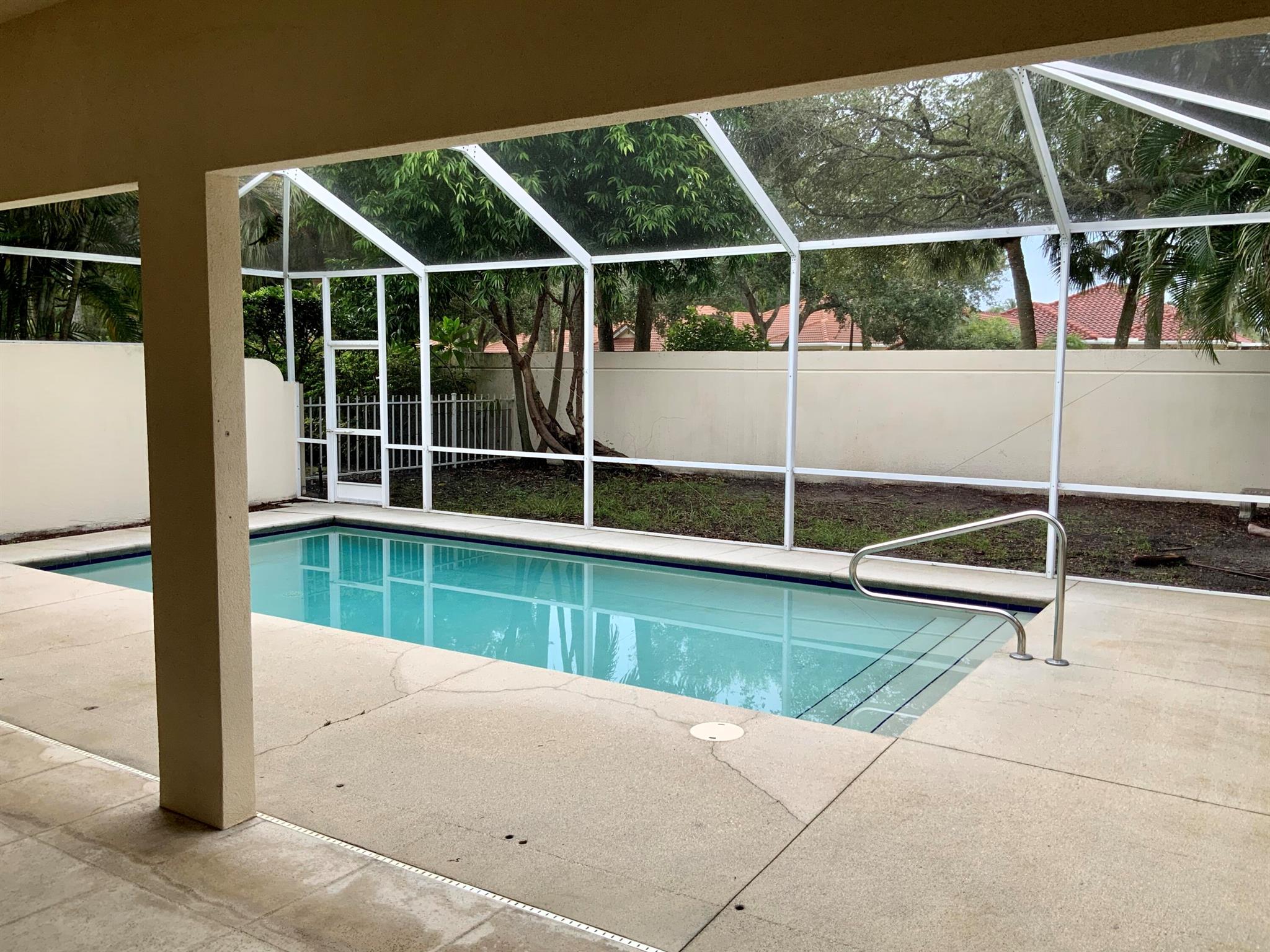 Oaks East is a guard gated community just south of the Gardens Mall. This property is a 1 story 3 Bedroom 2 bath 2 car garage . Granite kitchen counters; upgraded flooring; vaulted ceilings, wall of telescoping glass doors open to covered lanai and screened in resurfaced pool. Private quiet interior location.