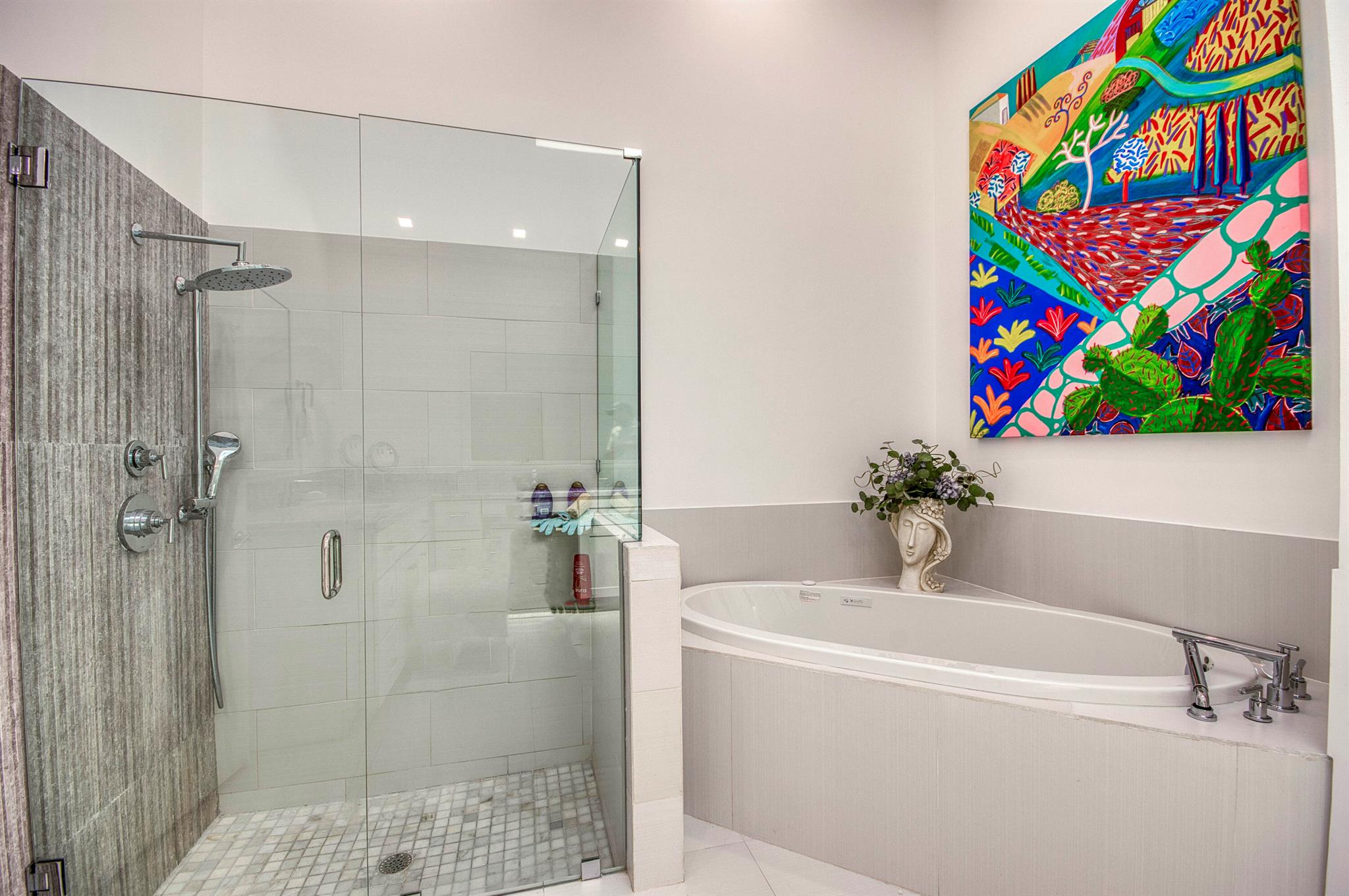 Experience elevated living in this stunning, bright, and beautifully fully renovated custom patio home, thoughtfully designed where impeccable craftsmanship meets modern elegance. Freshly painted and flooded with natural light, the open, spacious floor plan seamlessly blends indoor comfort with open views of the private pool and golf course. At the heart of the home is a stunning bespoke kitchen featuring custom cabinetry, premium appliances, stone countertops and center island, designer backsplash, and a waterfall island, perfectly capturing sophisticated style. Additional interior enhancements include smooth-finish ceilings, LED recessed lighting throughout, updated door hardware, Mirage hardwood flooring, Minka Aire ceiling fans, new closet doors in all bedrooms, an imported Spazio