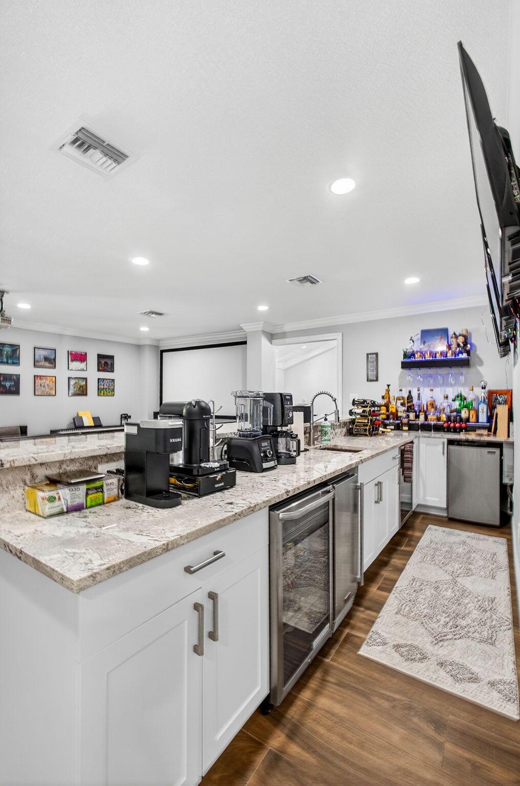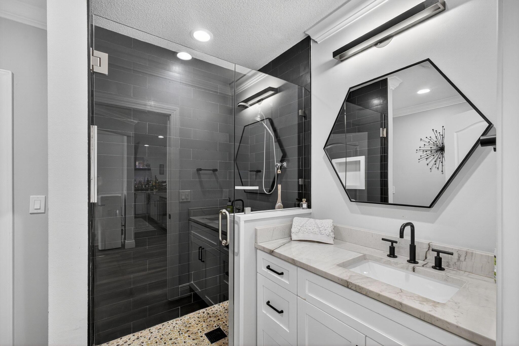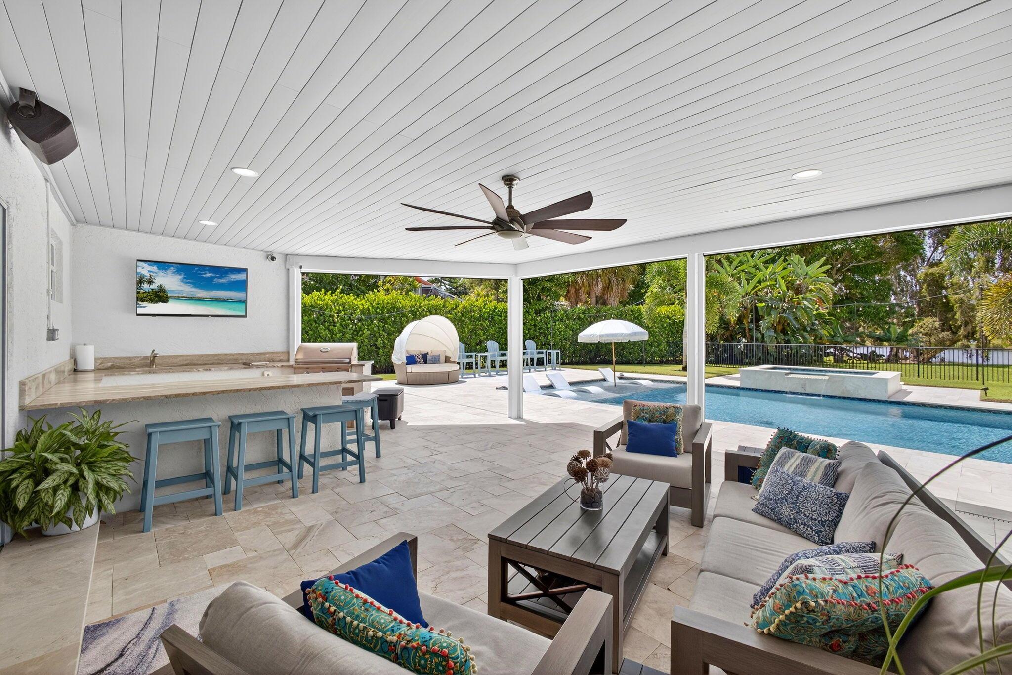 Rare Lakefront Estate on 1.3+ Acres - Fully Remodeled, No HOA!Seize this extraordinary opportunity to own a stunning 5-bedroom + office, lakefront home on a sprawling 1.3+ acre lot, free from HOA restrictions. This meticulously remodeled CBS-constructed residence blends luxury and functionality with top-of-the-line features. Enjoy peace of mind with impact glass windows, a new metal roof, and a secure front entry gate. The gourmet kitchen is a culinary masterpiece, boasting high-end appliances, custom cabinetry and oversized Island.The home's open-concept design showcases vaulted ceilings, creating an airy and grand atmosphere. Relax in the state-of-the-art movie theater w/ full Sports Bar or unwind by the brand-new 17x34 pool and Hot tub, complete with a fully equipped summer kitchen