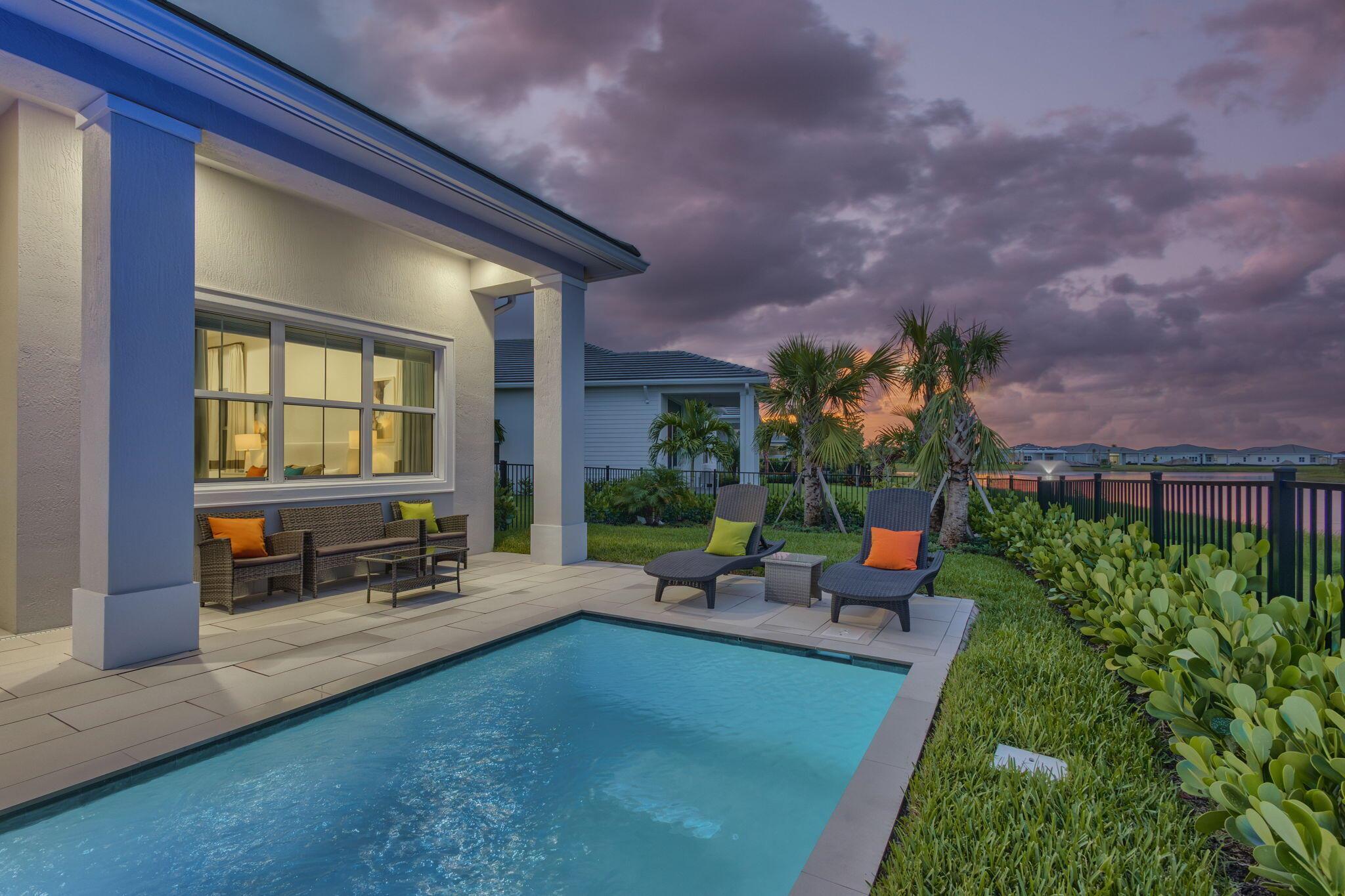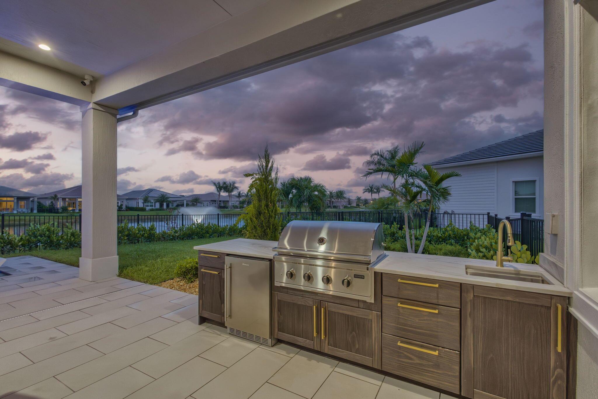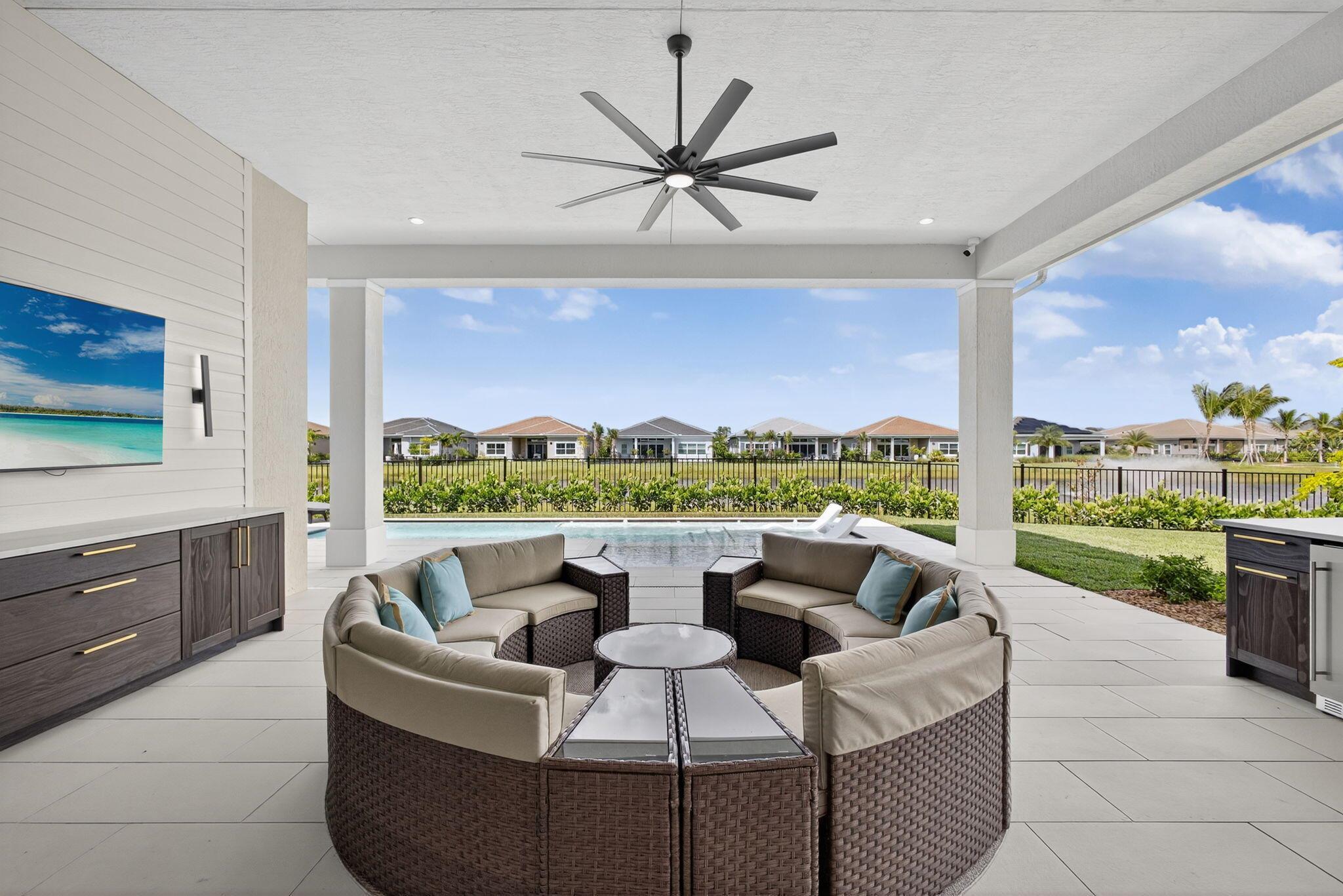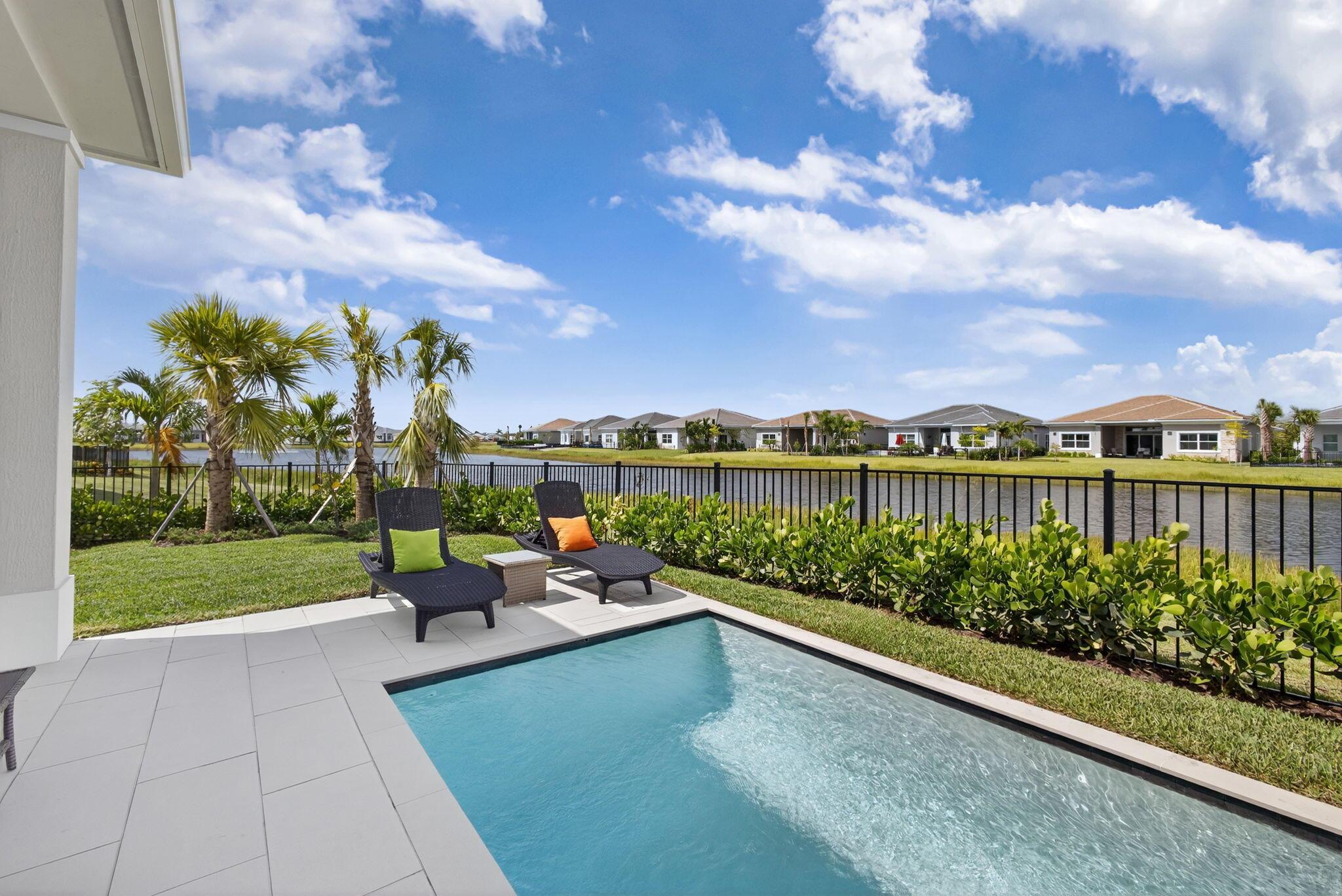 Experience luxury living at its finest in Regency, Palm Beach Gardens premier 55+ community. This Maya model has been outrageously upgraded to mimic the Designer model and is available fully furnished, ready for immediate occupancy. Enjoy spectacular water views from nearly every angle, an open floor plan, and a gourmet kitchen with premium finishes. The expansive covered outdoor living space features a summer kitchen and a large outdoor television, perfect for year-round Florida entertaining. The luxurious primary suite includes a spa-like ensuite and two walk-in closets, with flexible space for guests. Upgrades throughout include smart home features, energy-efficient improvements, premium flooring, and designer lighting. Located at 10109 Driftwood Way, this turn-key residence sits in a
