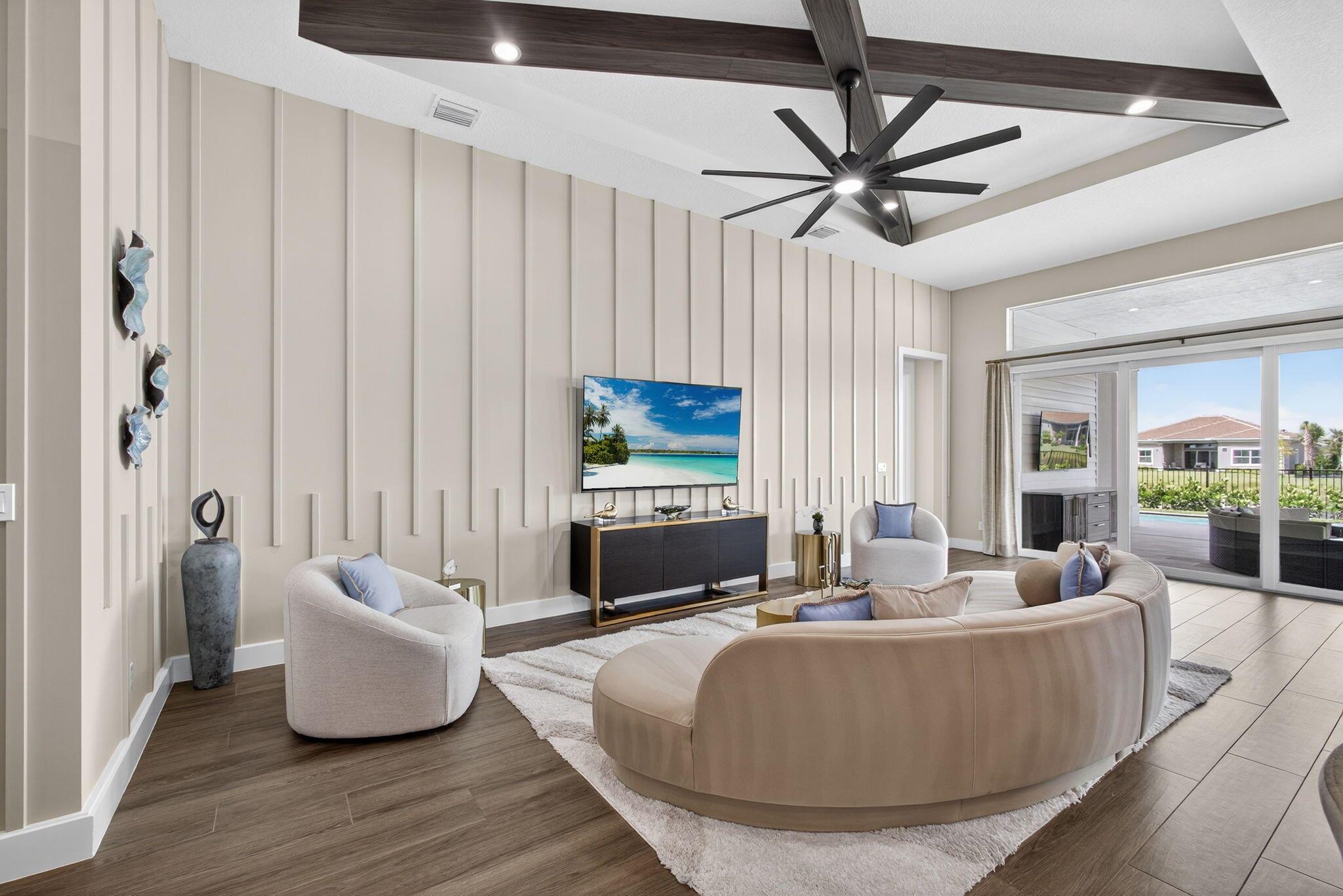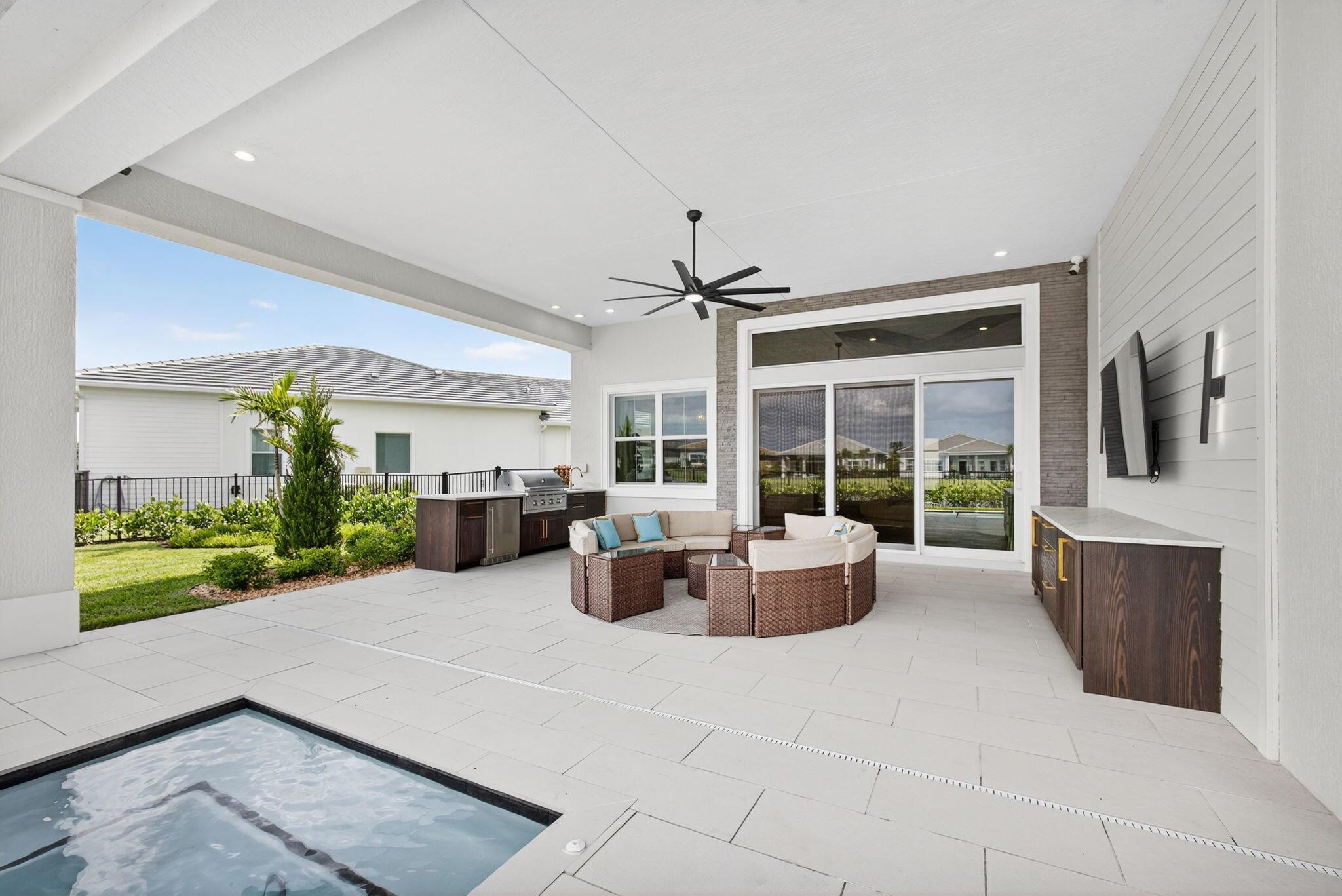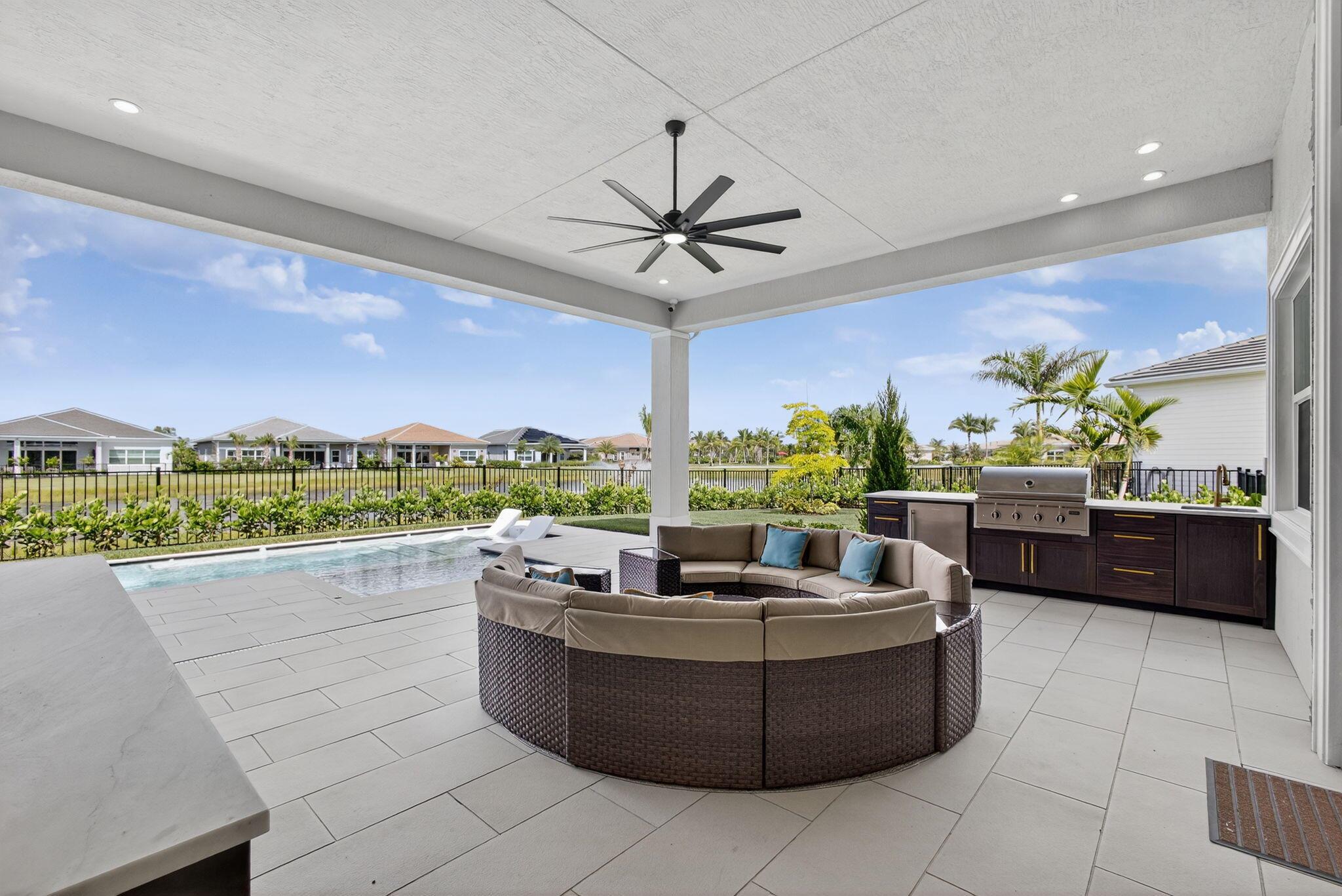 Experience luxury living at its finest in Regency, Palm Beach Gardens premier 55+ community. This Maya model has been outrageously upgraded to mimic the Designer model and is available fully furnished, ready for immediate occupancy. Enjoy spectacular water views from nearly every angle, an open floor plan, and a gourmet kitchen with premium finishes. The expansive covered outdoor living space features a summer kitchen and a large outdoor television, perfect for year-round Florida entertaining. The luxurious primary suite includes a spa-like ensuite and two walk-in closets, with flexible space for guests. Upgrades throughout include smart home features, energy-efficient improvements, premium flooring, and designer lighting. Located at 10109 Driftwood Way, this turn-key residence sits in a
