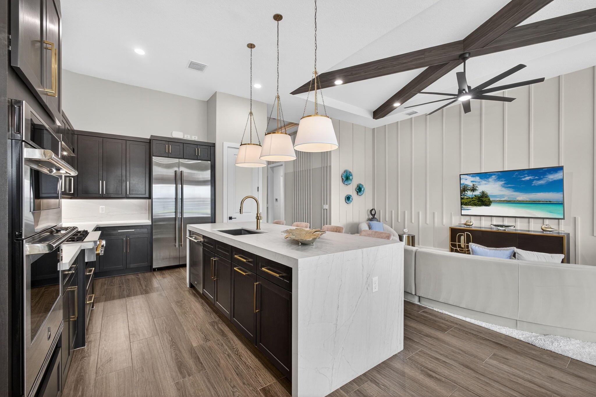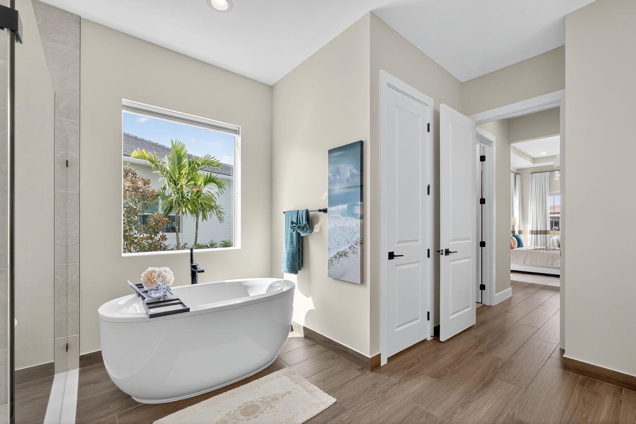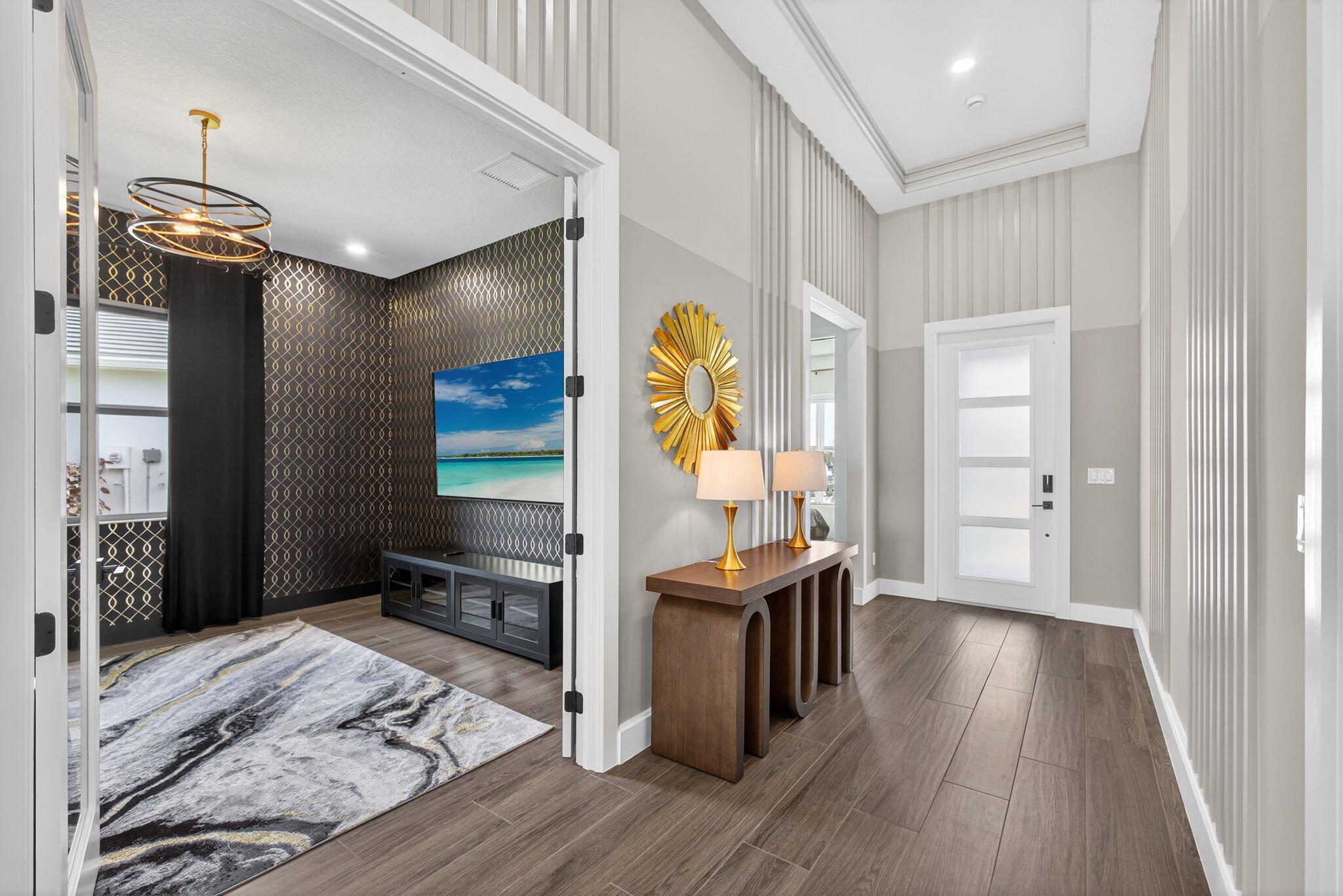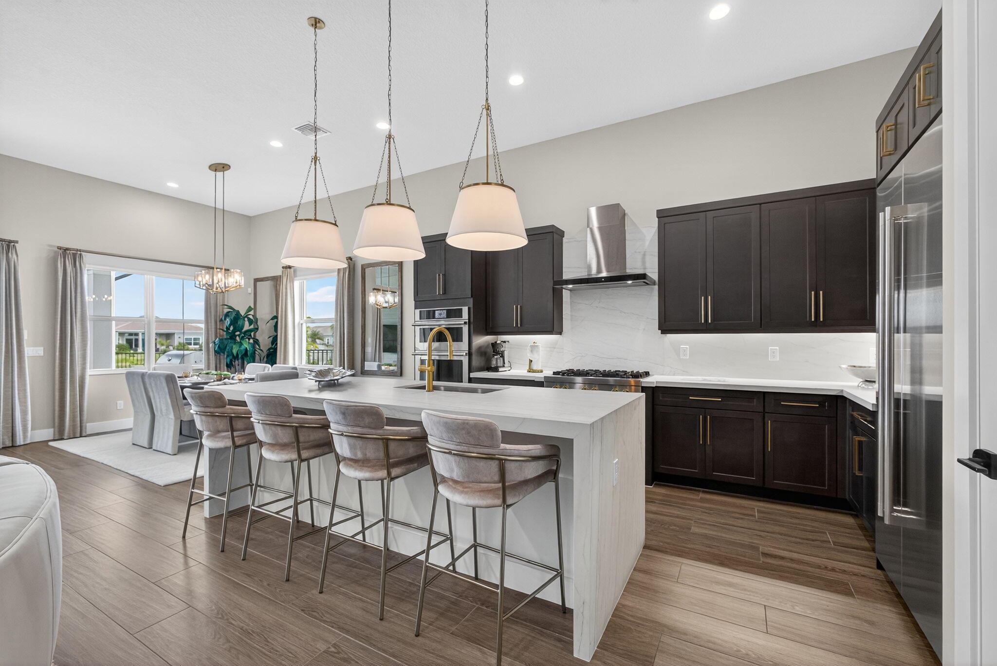 Experience luxury living at its finest in Regency, Palm Beach Gardens premier 55+ community. This Maya model has been outrageously upgraded to mimic the Designer model and is available fully furnished, ready for immediate occupancy. Enjoy spectacular water views from nearly every angle, an open floor plan, and a gourmet kitchen with premium finishes. The expansive covered outdoor living space features a summer kitchen and a large outdoor television, perfect for year-round Florida entertaining. The luxurious primary suite includes a spa-like ensuite and two walk-in closets, with flexible space for guests. Upgrades throughout include smart home features, energy-efficient improvements, premium flooring, and designer lighting. Located at 10109 Driftwood Way, this turn-key residence sits in a