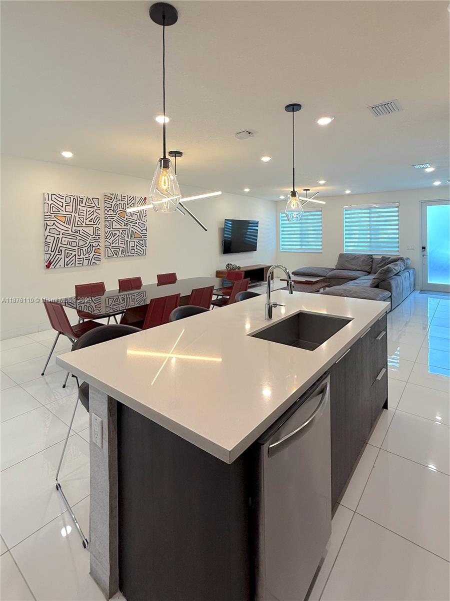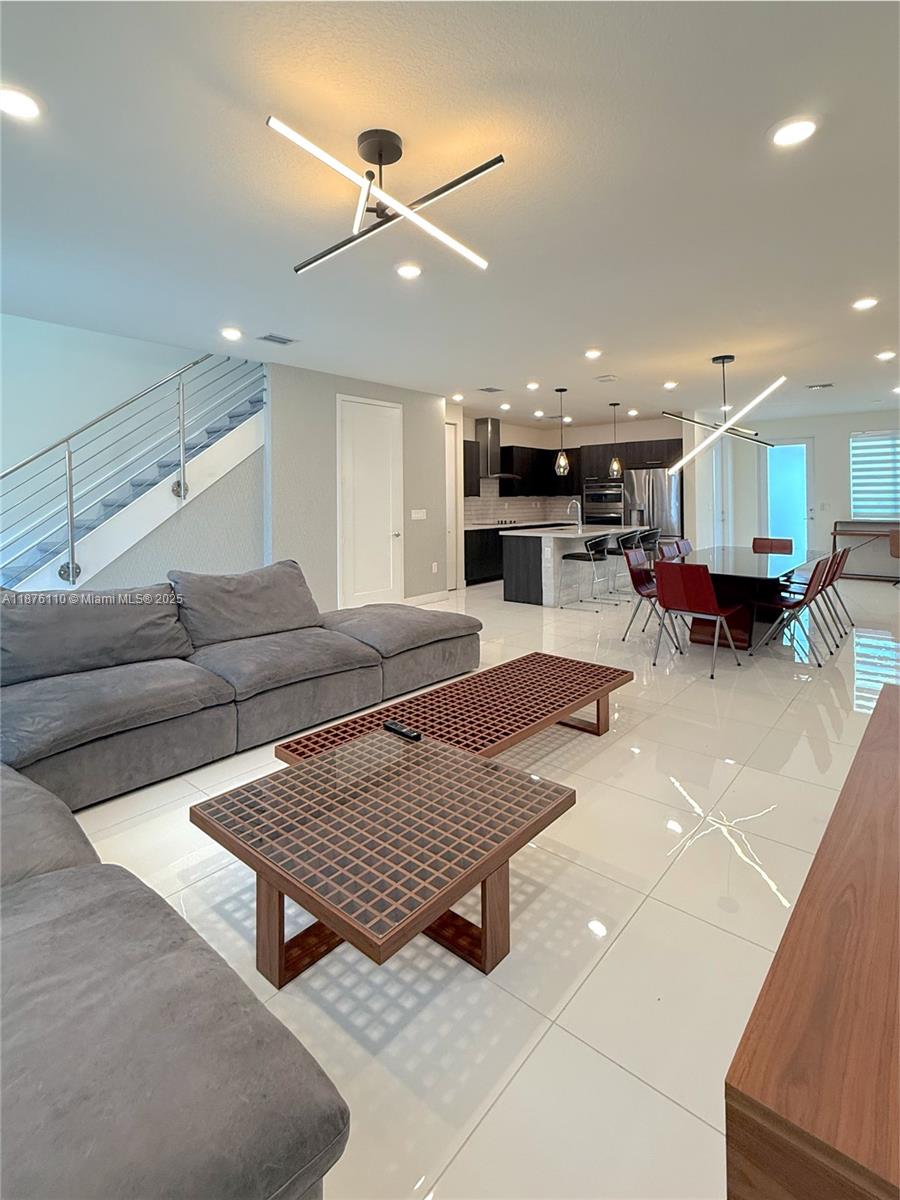 Luxury townhouse ready to move into the prestigious Landmark community. This modern unit features impact windows, 3 bedrooms, 2.5 bathrooms, 2 parking spaces in the back plus a garage for 1 car. An open design for living and dining room with a fully equipped kitchen and quartz countertop, stainless steel appliances, and a 3-door refrigerator. Private backyard. Master bedroom with walk-in closet and master bathroom with his and hers sinks, glass door shower, and separate toilet area; 2 perfectly sized bedrooms sharing a full bathroom, a laundry room with large washer and dryer. Beautiful clubhouse with tennis courts, pool, gym equipped with sauna, pool, and splash zone for kids. Top-tier public and private schools and public parks nearby.