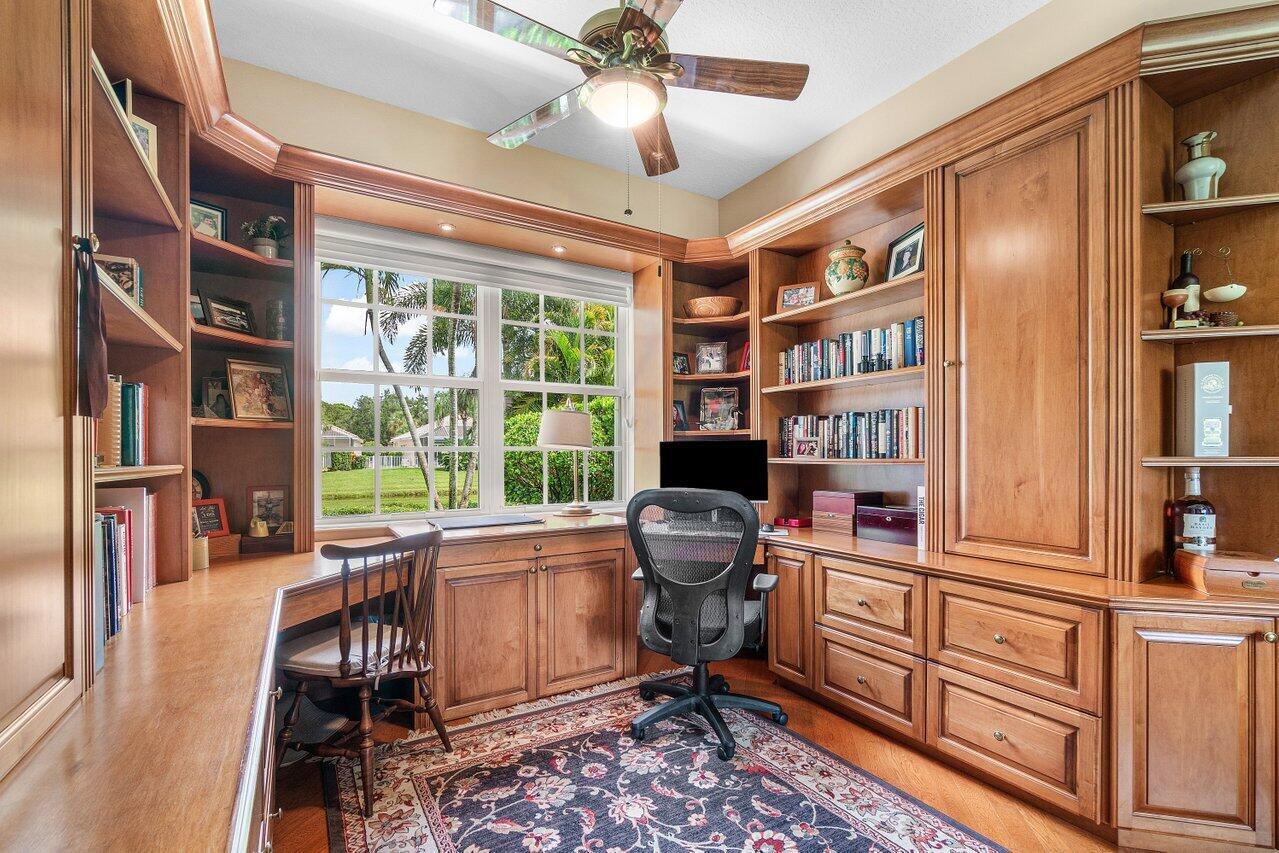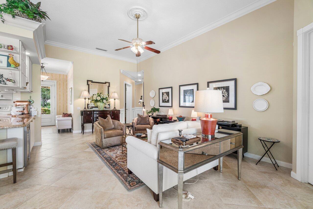 Enjoy peaceful lake views from this immaculately maintained Carlyle model, on a quiet cul-de-sac in the coveted Isles at Palm Beach Gardens. Boasting a brand new roof (Aug 2025), updated baths with marble vanities and nickel finishes and an inviting front porch, this light-filled 4BR/3BA home features formal and informal living areas, soaring ceilings, diagonal porcelain tile, and a screened-in lanai perfect for outdoor relaxation. The 4th bedroom is set up as a home office with custom built-ins. The spacious kitchen with granite counters and abundant cabinetry flows seamlessly into the family room. Large primary suite offers dual baths and generous closets. Pristine 2 car garage and laundry. Enjoy resort-style amenities including pool, tennis, pickleball, clubhouse, and fitness center.